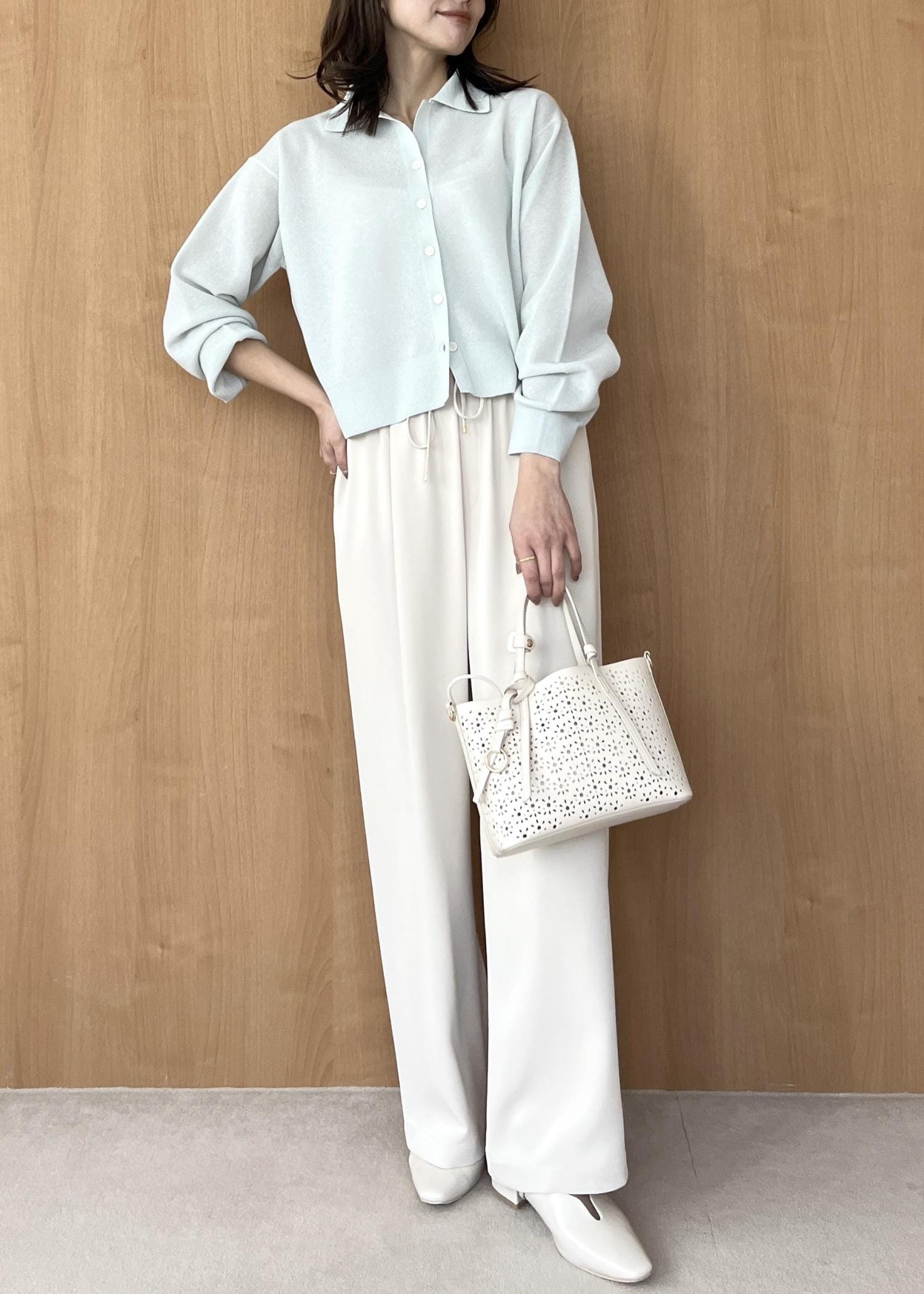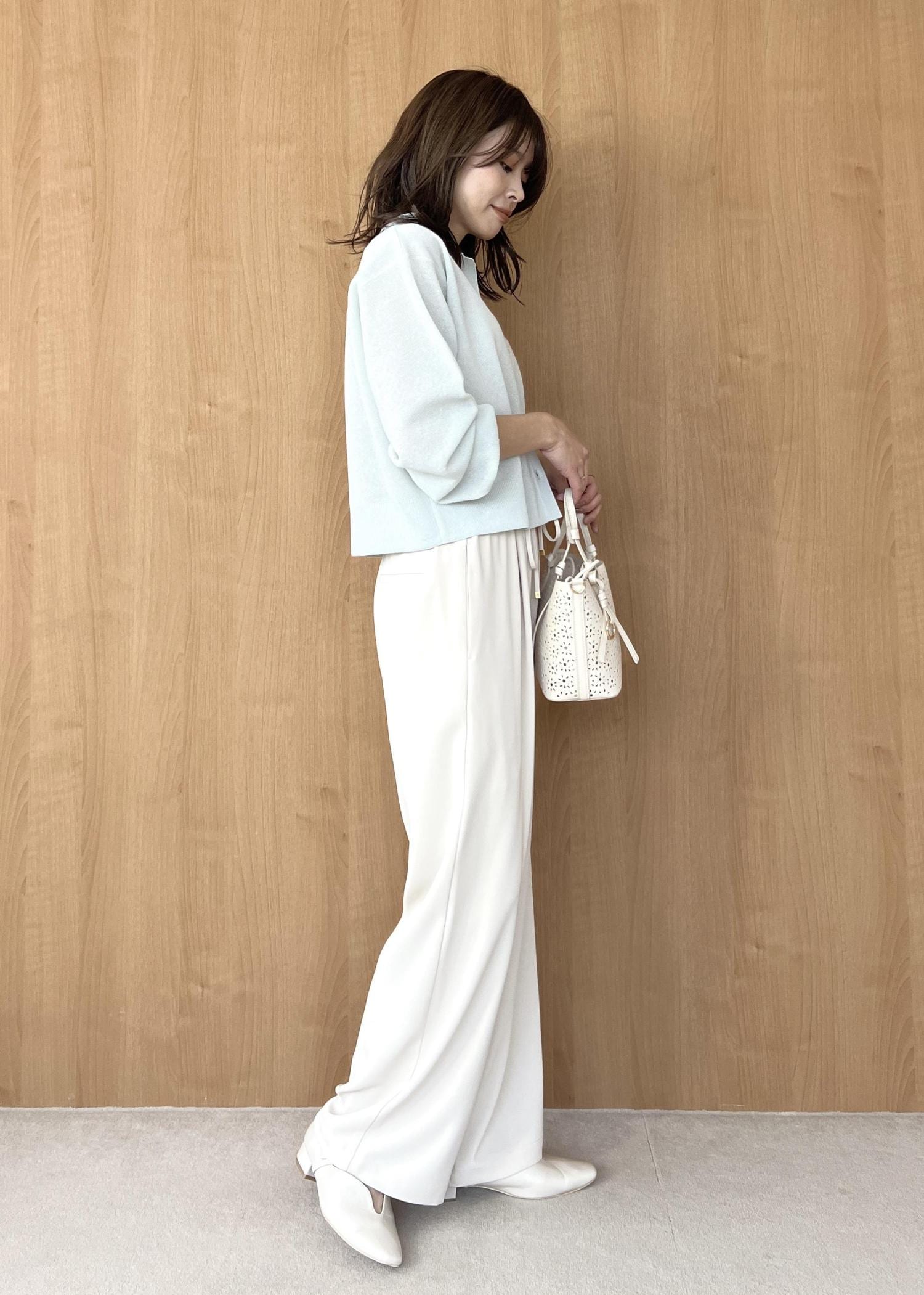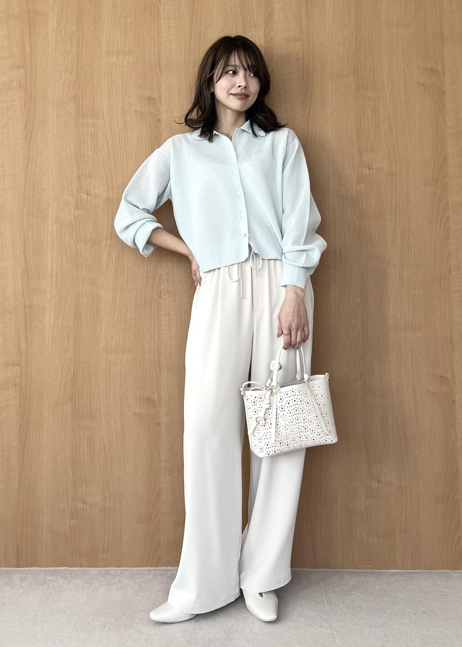 小物も春らしい明るいカラーでまとめて、スッキリ感のあるスタイリングにしました。