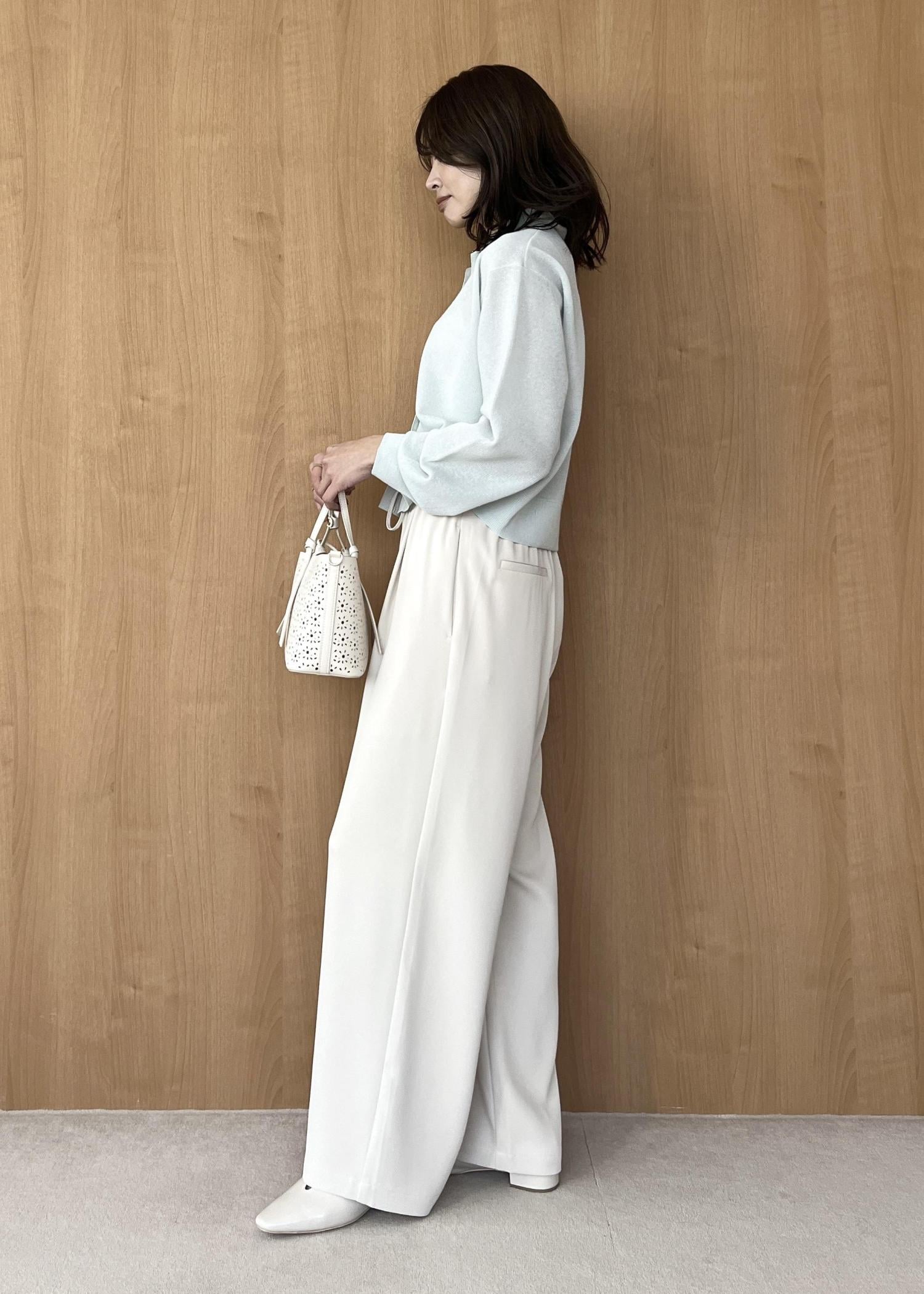 しなやかでサラッとした生地のワイドパンツで、シンプルな綺麗めカジュアルコーデに。