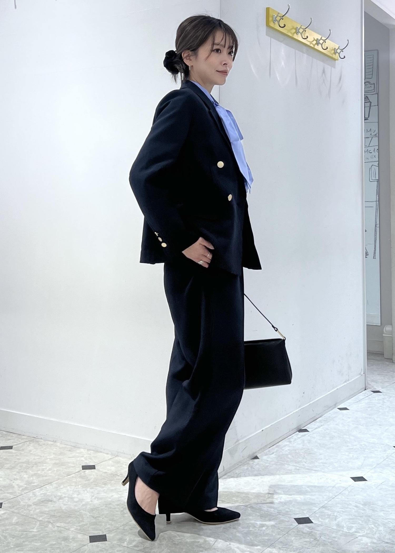ジャケットとワイドパンツのセットアップは、セレモニースタイルにおすすめ。
