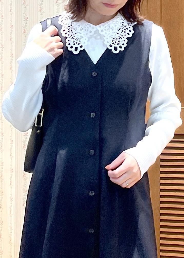 襟元のレースがポイント! -