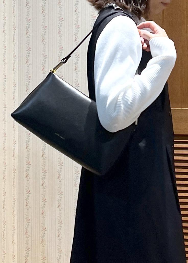 お財布、携帯、小さめポーチと最低限の荷物は入るサイズ感です。