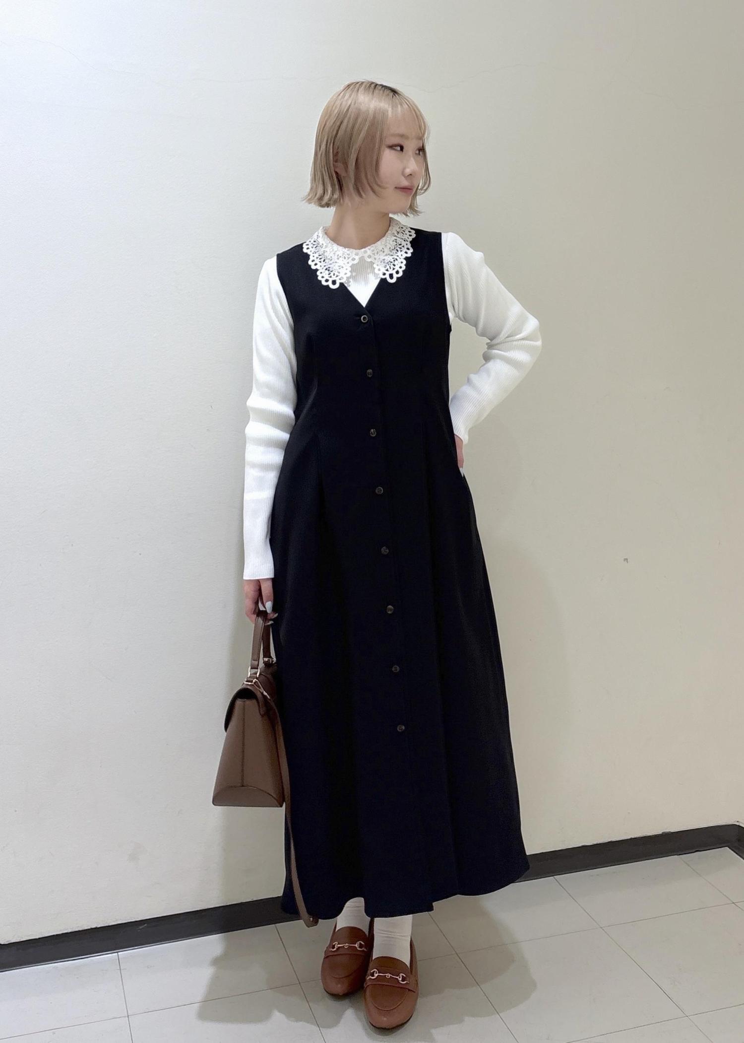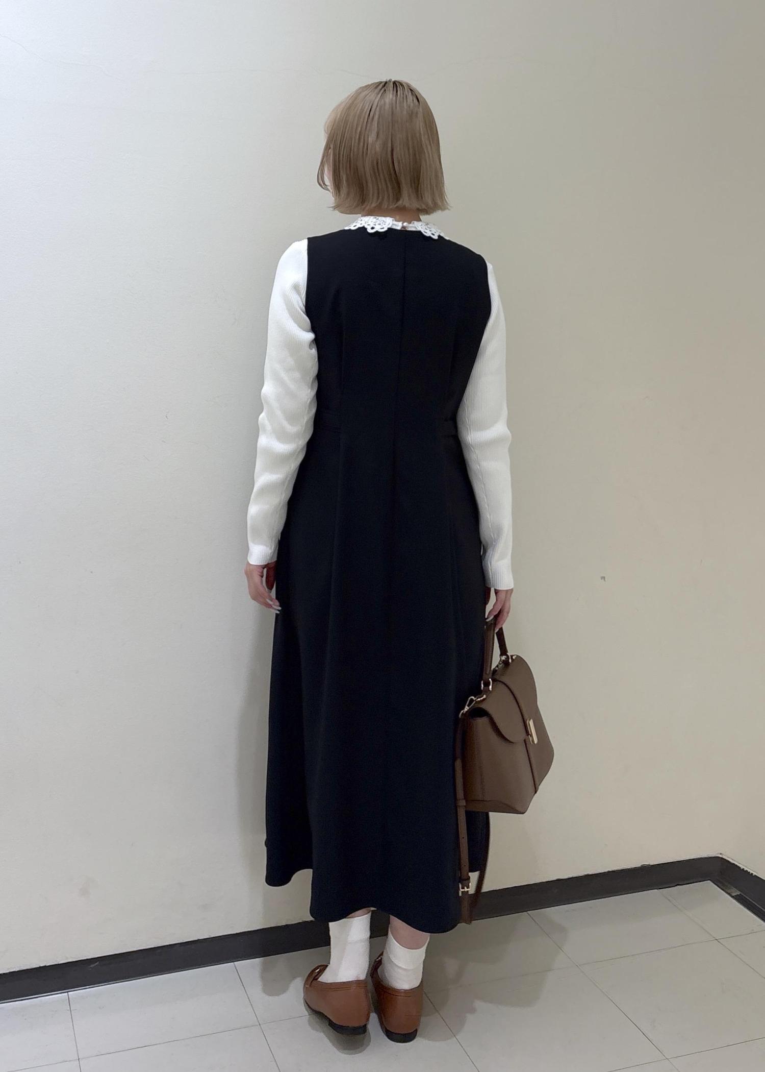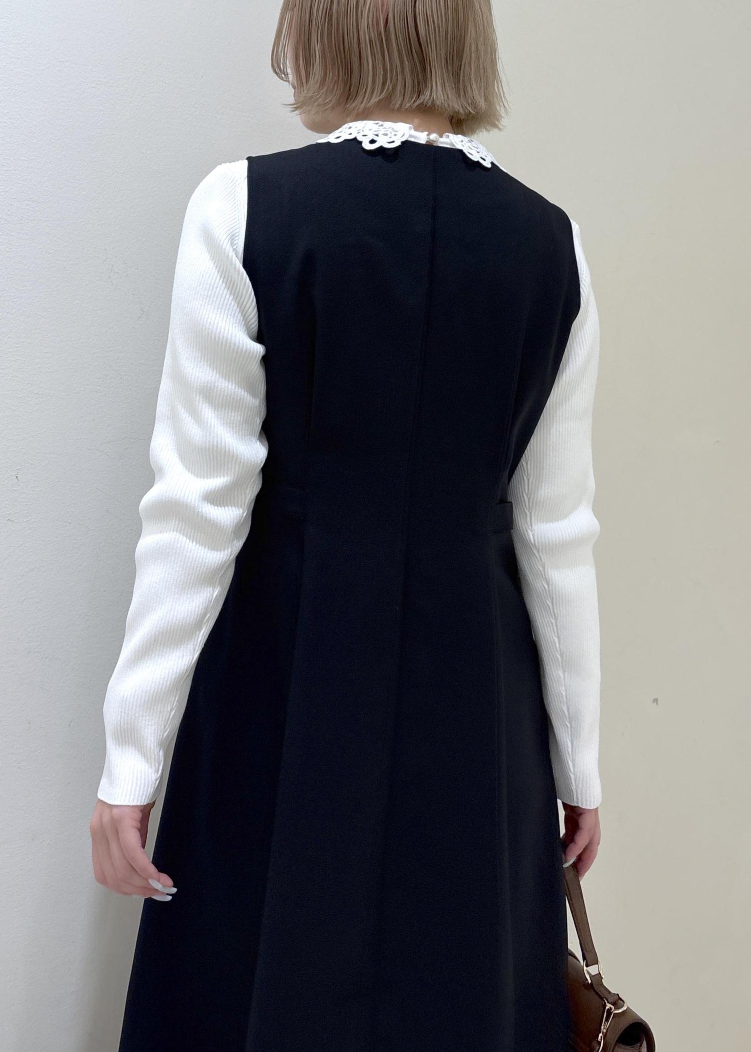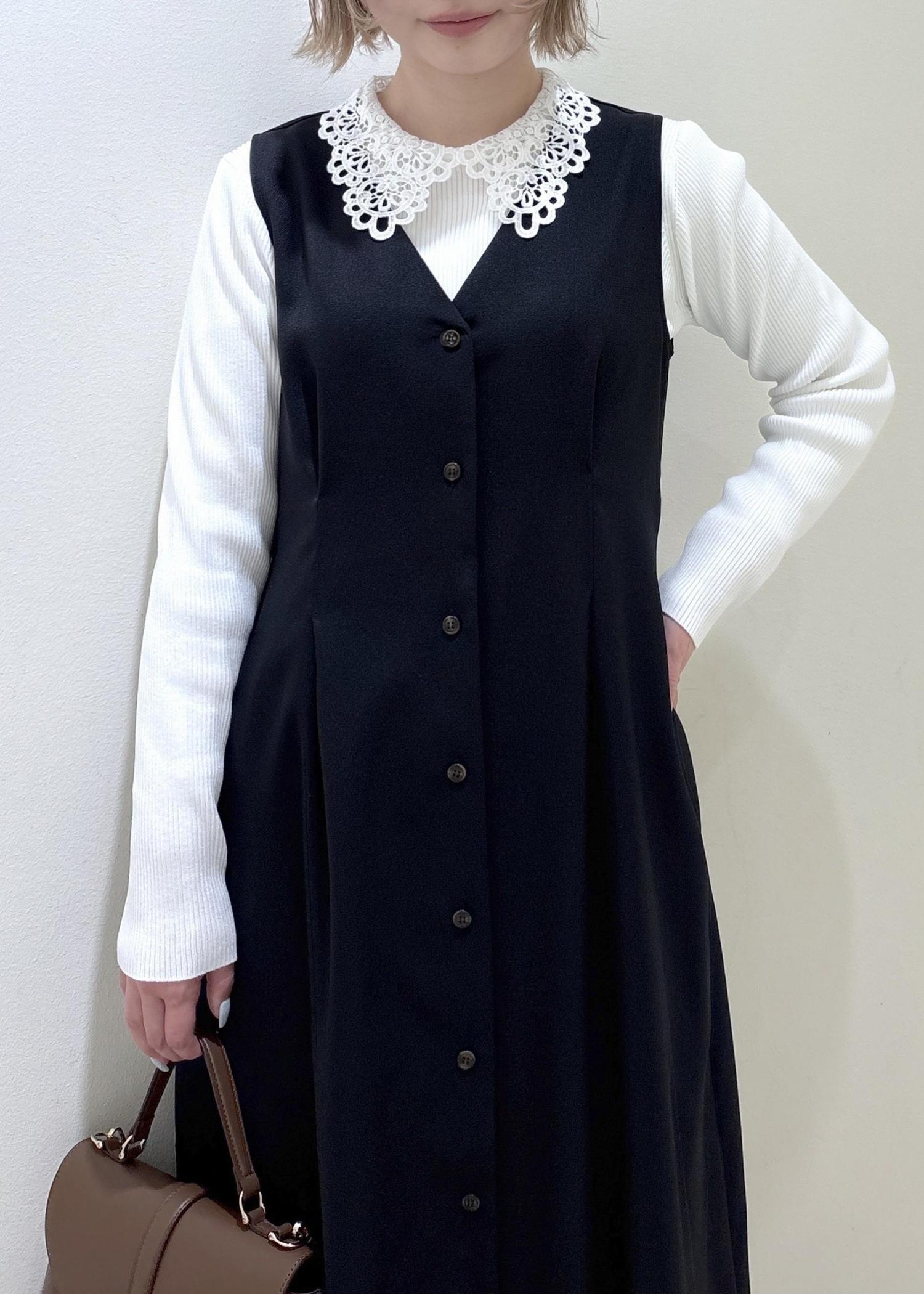 レース衿がアクセントになり、ジャンパースカートやニットのインナー使いも楽しめます。 -