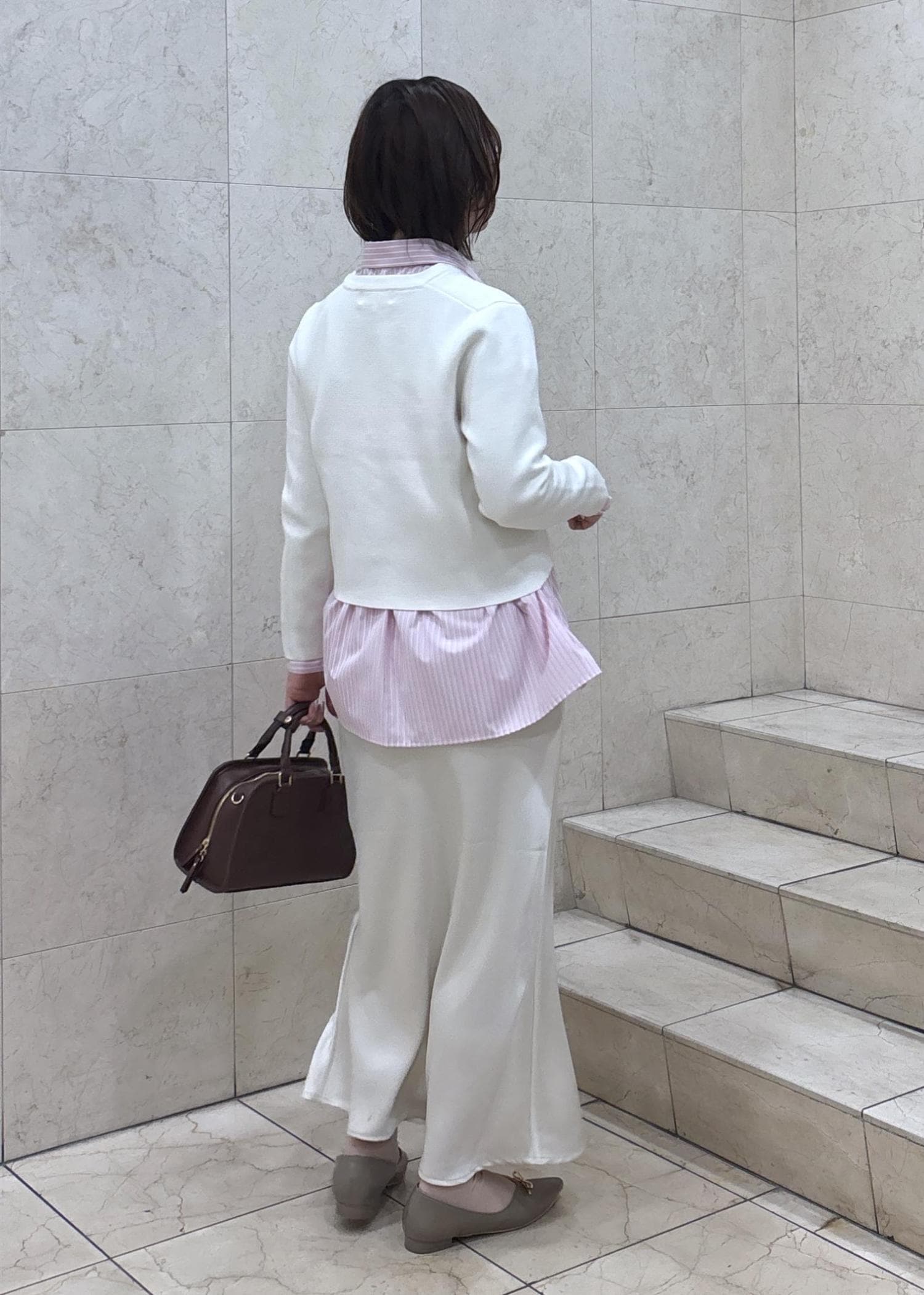 骨格ウェーブは下重心になりがちなので、コンパクトな丈感のカーディガンおすすめです。