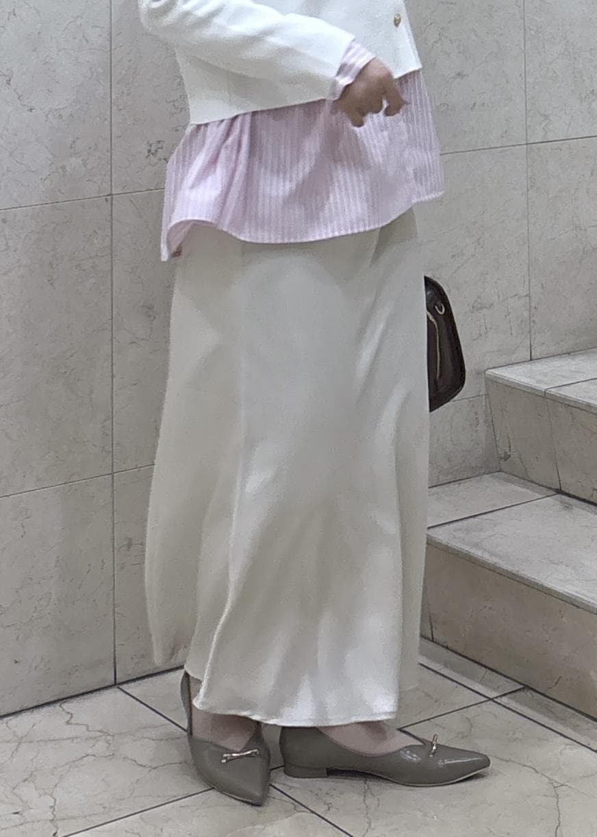 ROPÉ PICNIC細見えバイアスサテンスカート/イージーケアオフホワイト / F¥6,490レビュー光沢、オチ感があり女性らしいスカート。