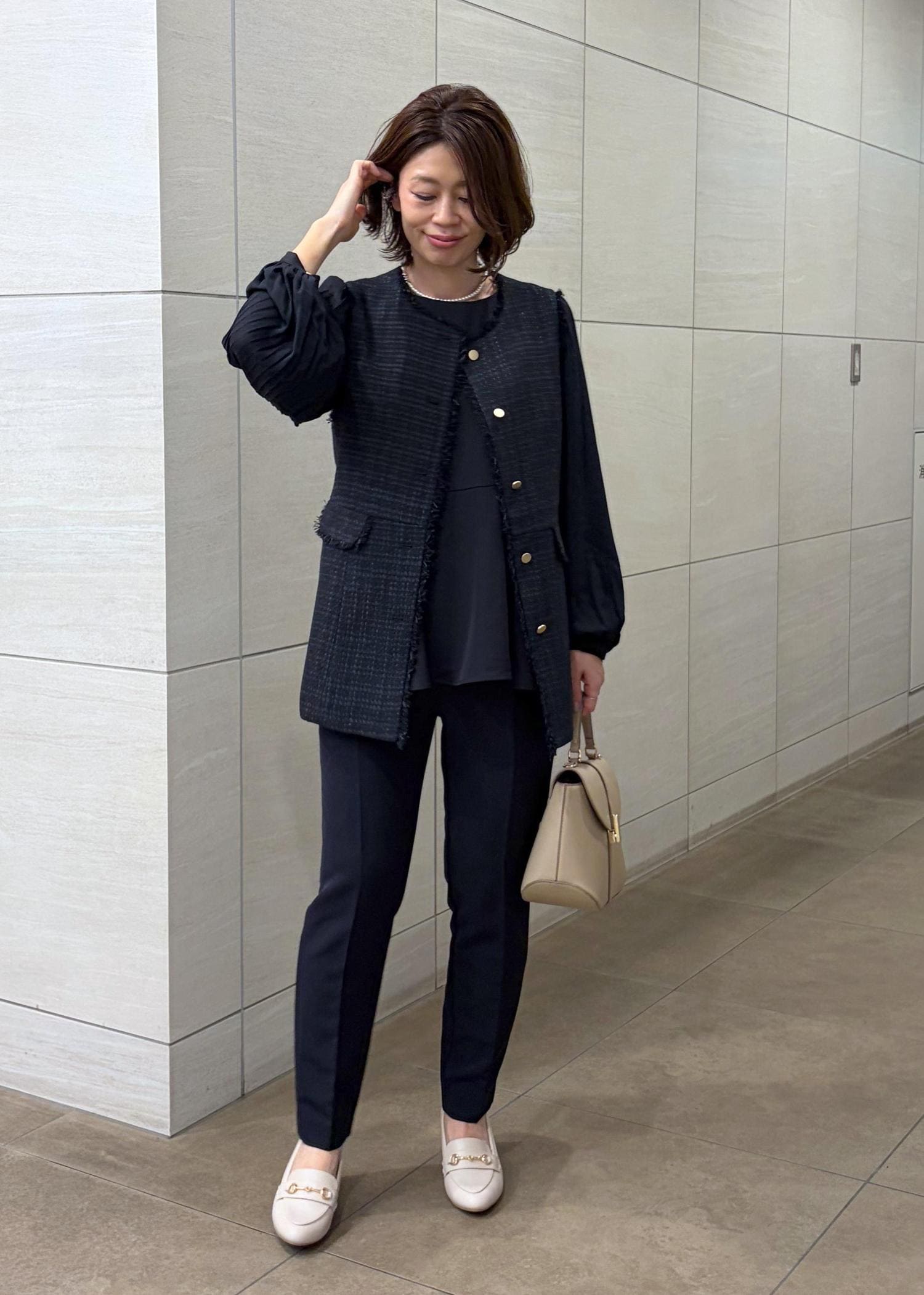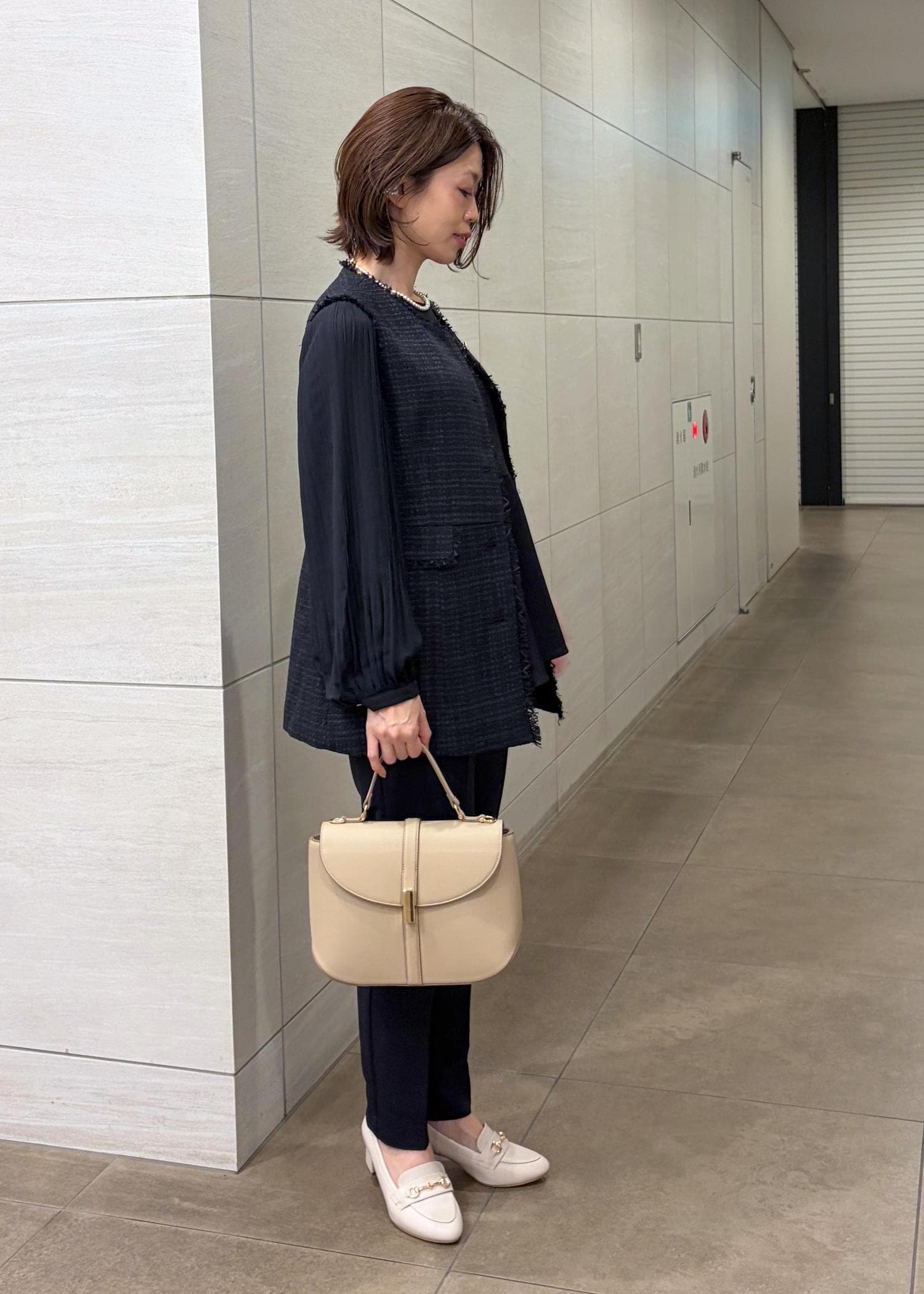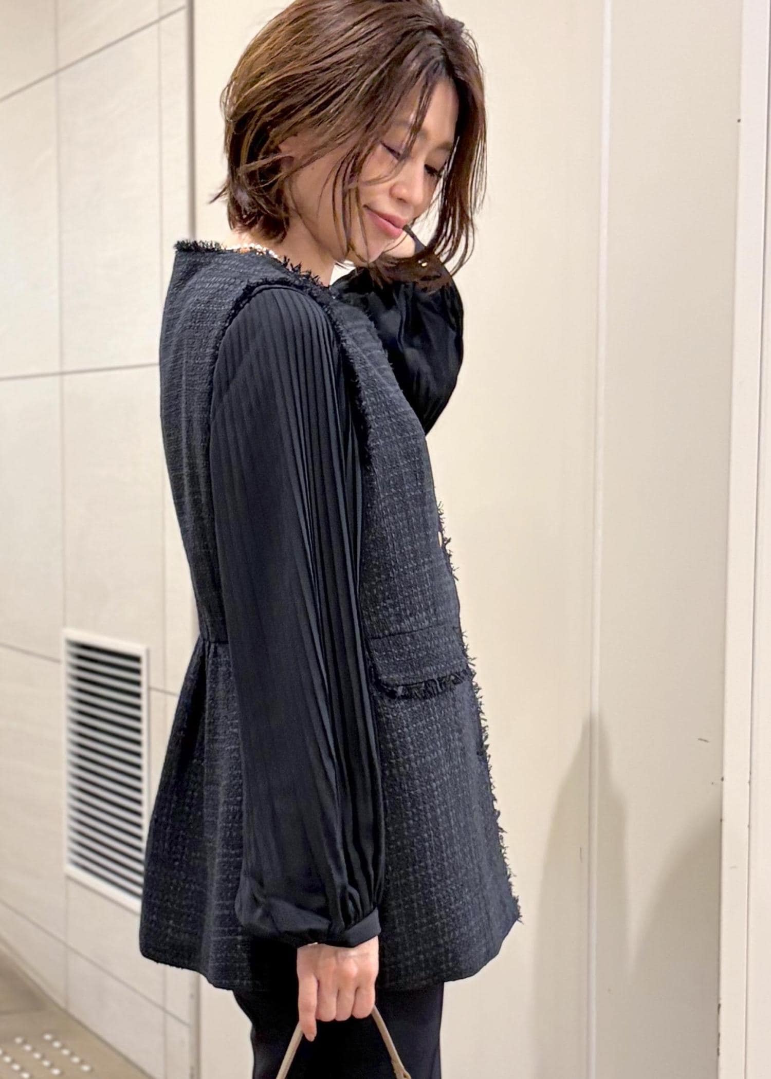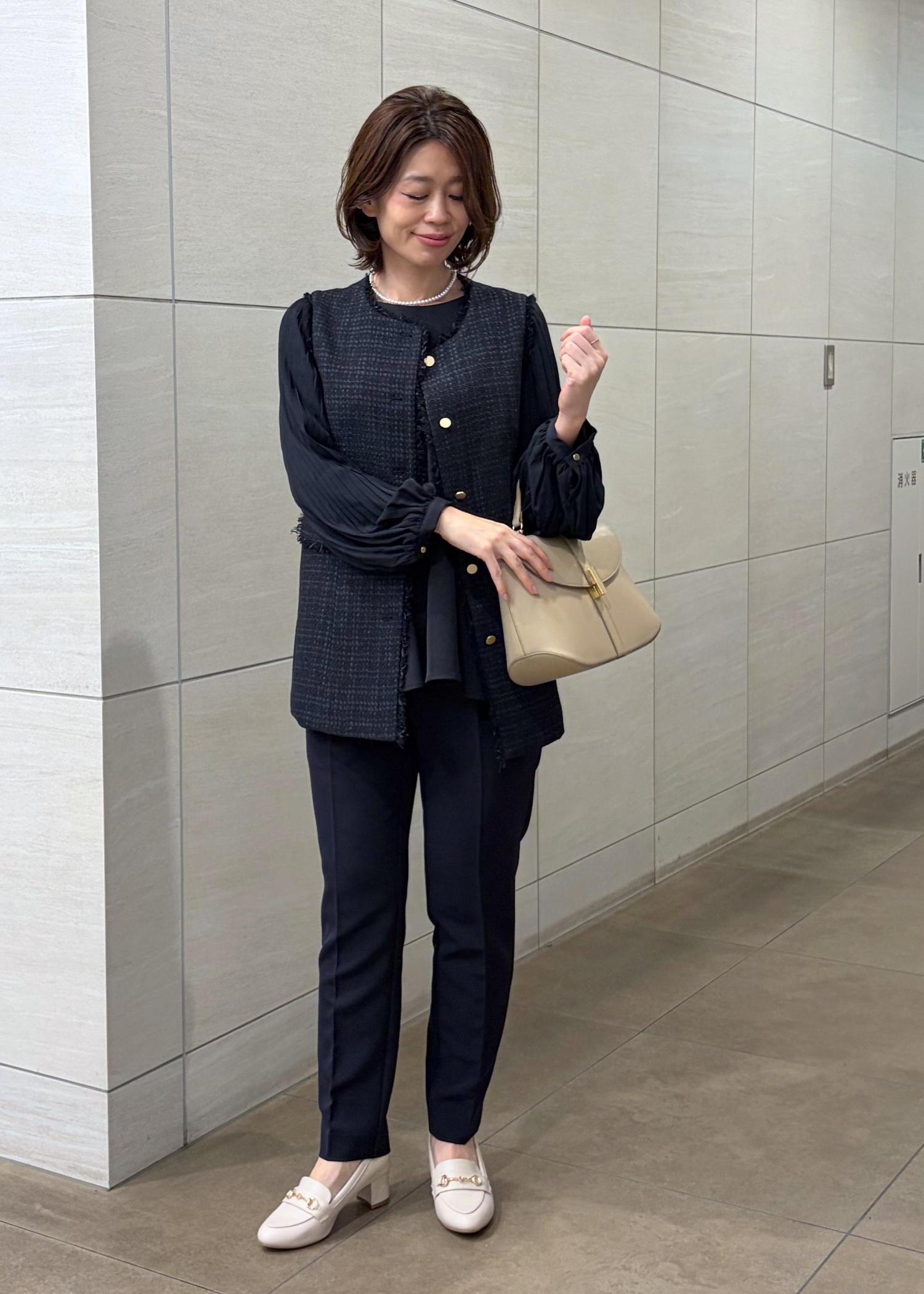 ROPÉ PICNIC【WEB限定カラー】ツイード金ボタンジレベスト/セレモニー対応・リンクコーデネイビー / F¥8,998レビュー後ろがフレアになっていて、