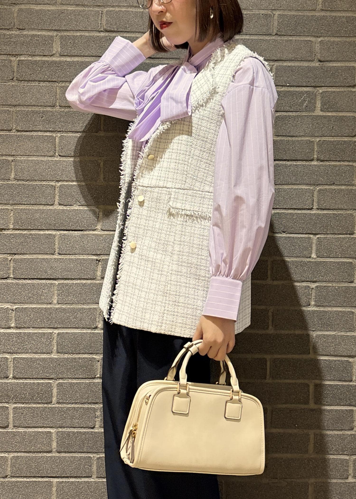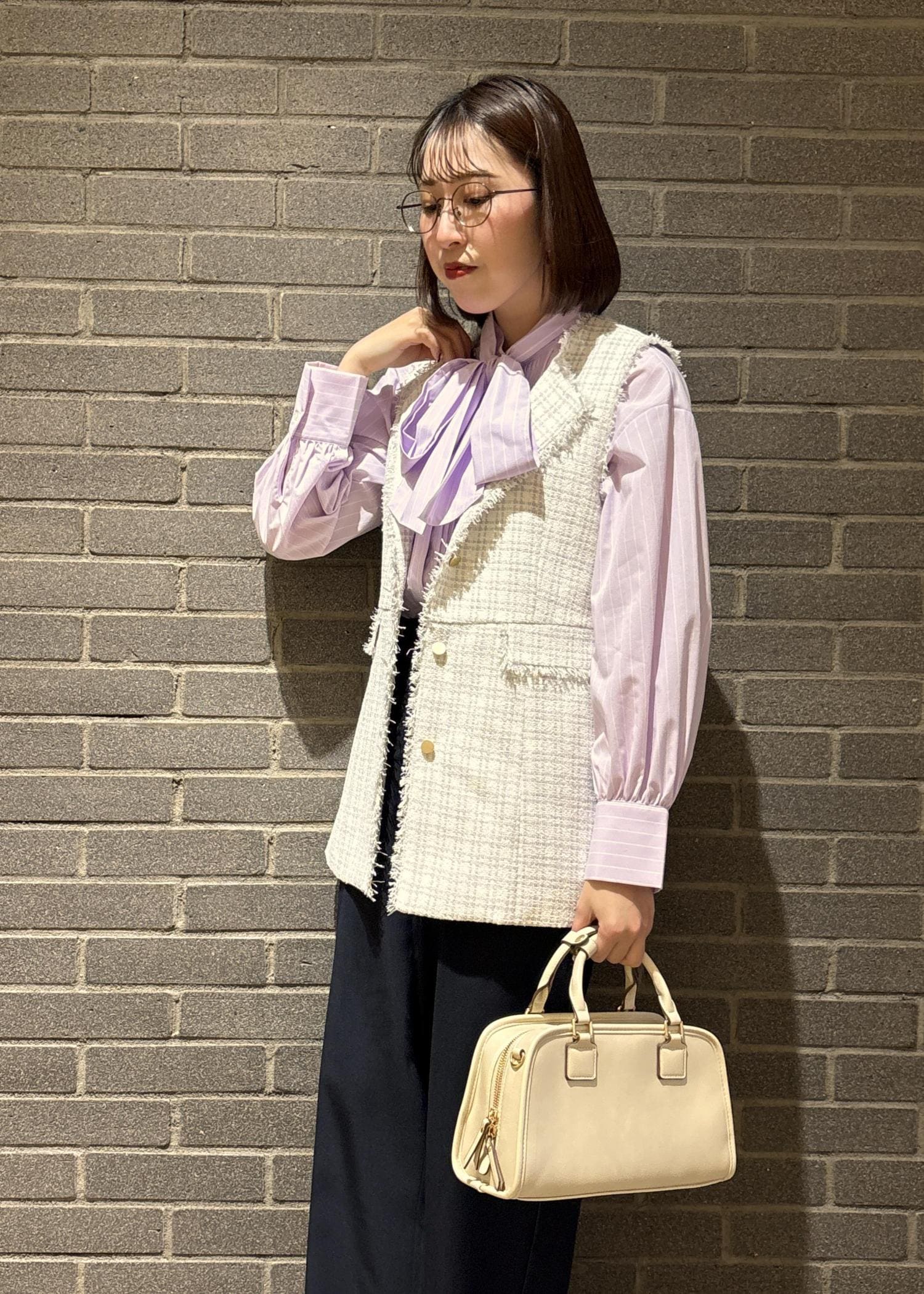 ボウタイ付きで、取り外しも可能なのでシーンに合わせてコーデを楽しめます。
