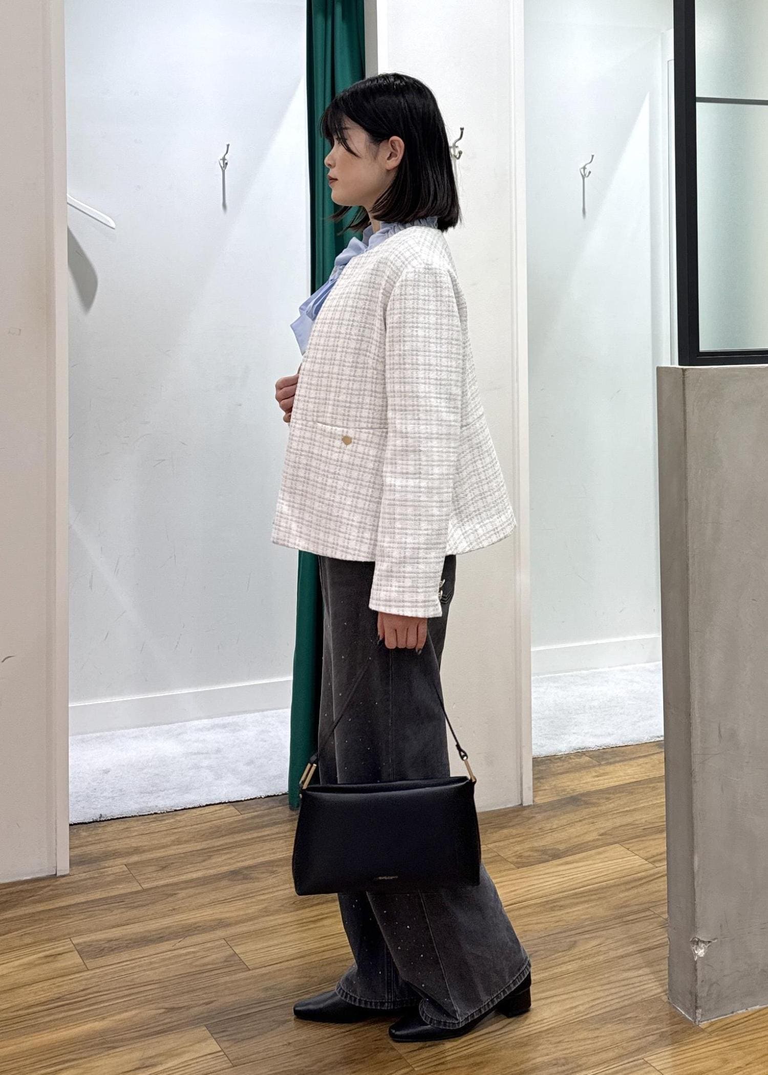 ツイードジャケットを使ったカジュアルコーデを組みました。