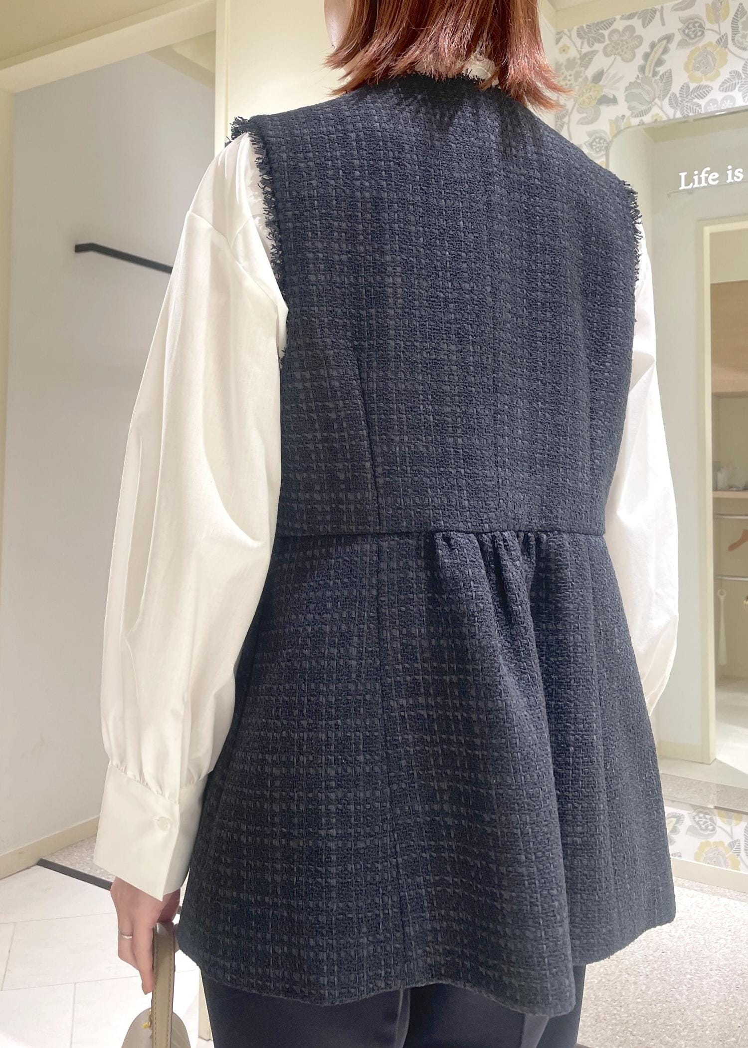 ROPÉ PICNIC【WEB限定カラー】ツイード金ボタンジレベスト/セレモニー対応・リンクコーデネイビー / F¥8,998レビューシンプルなブラウスに合わせるだけで一気にこなれ感が出る上品なツイードジレ。