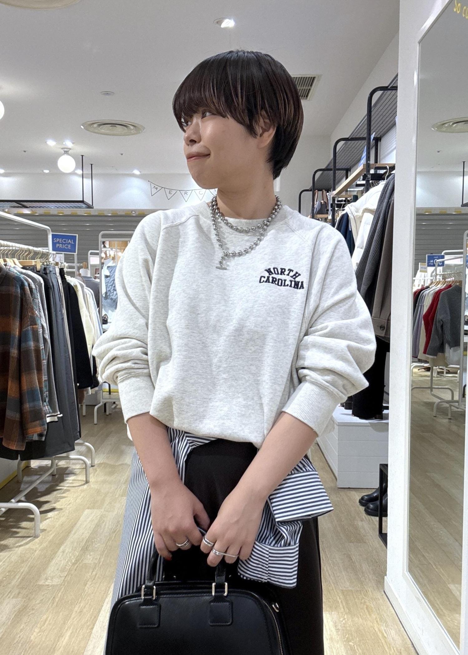 ショルダーが付いているので、コーディネートに合わせて雰囲気変えてお持ちいただけます。 -