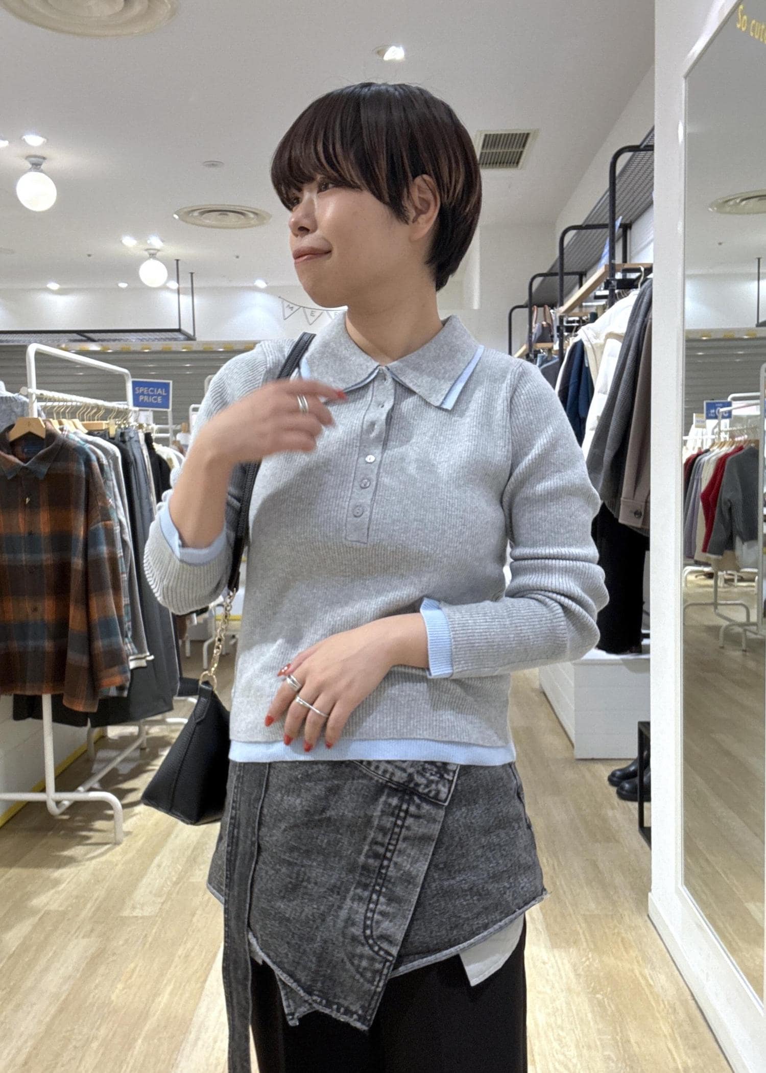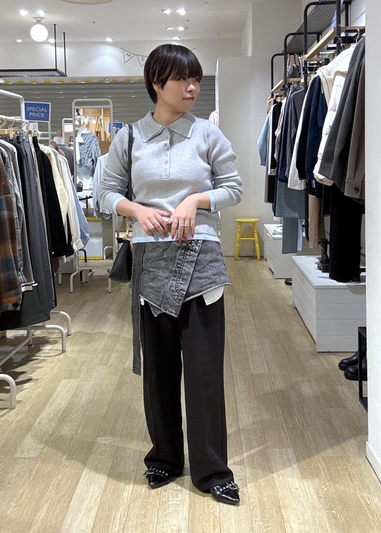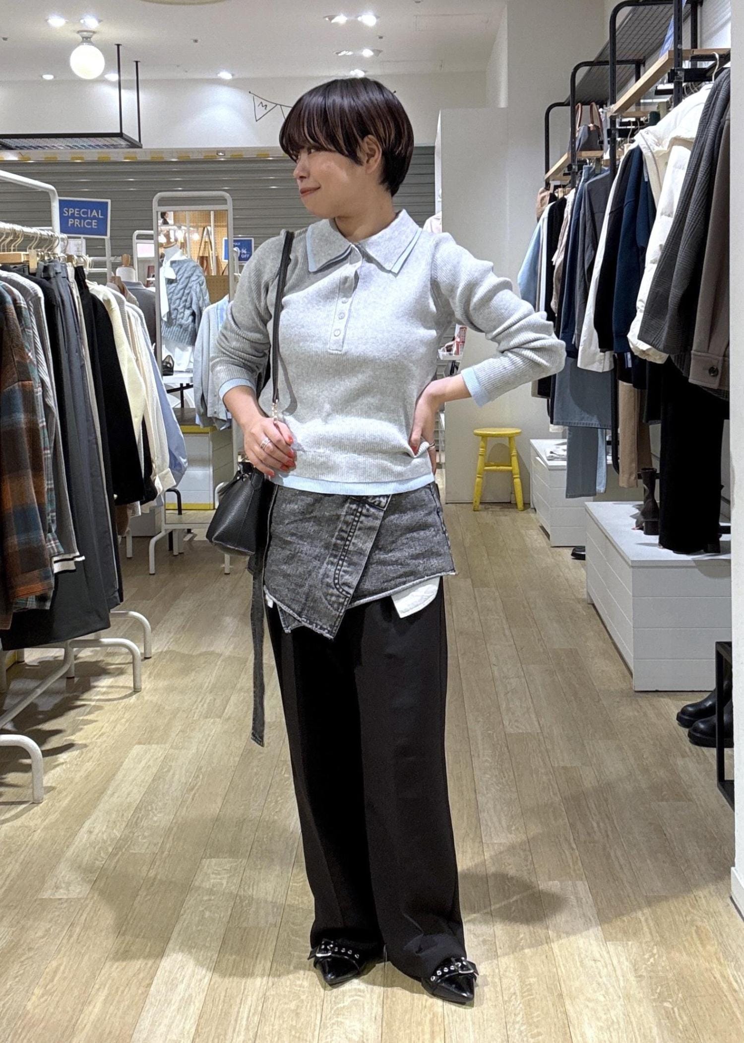 今回はレイヤード風のポロニットを使ってカジュアルなコーディネートにしました。