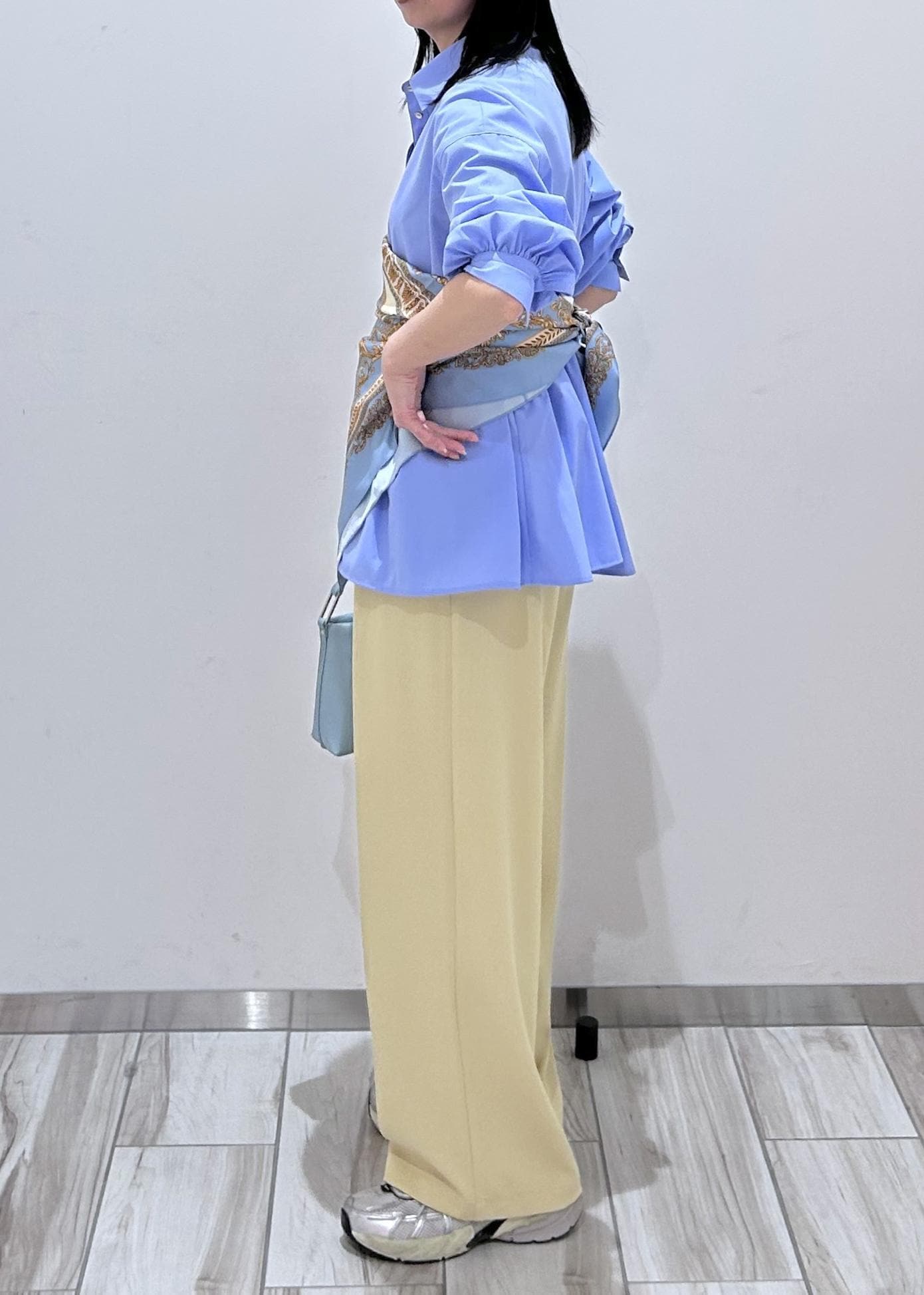 イージーパンツだけど落ち感があり綺麗めカジュアルどちらも万能に合わせられます◎ -