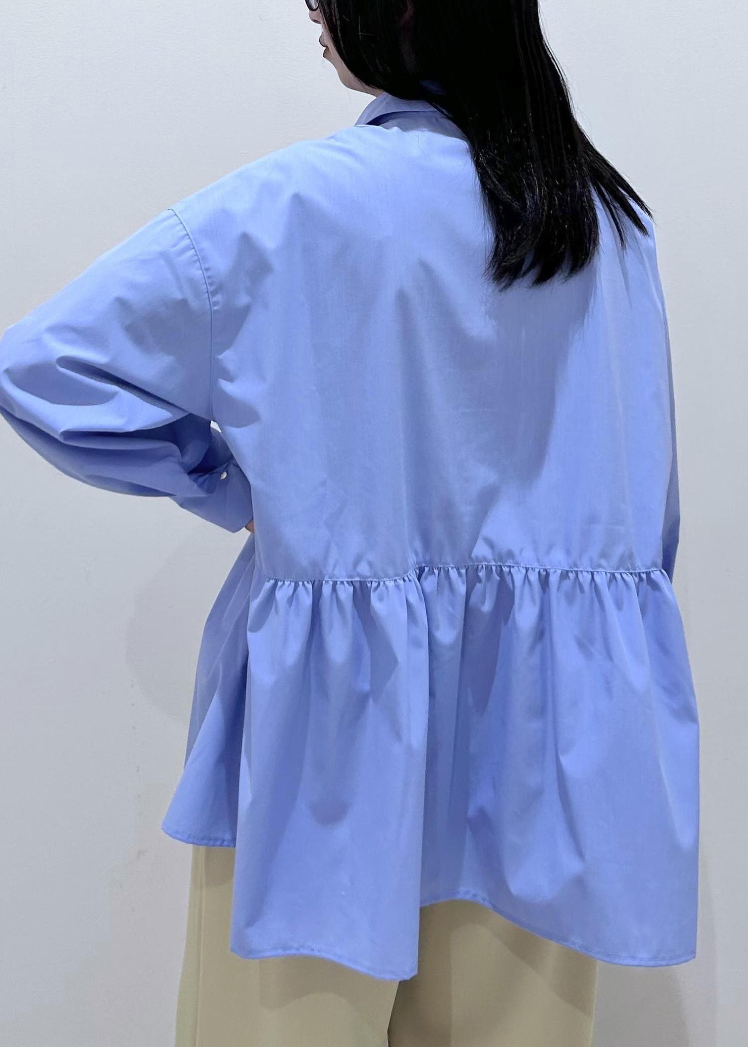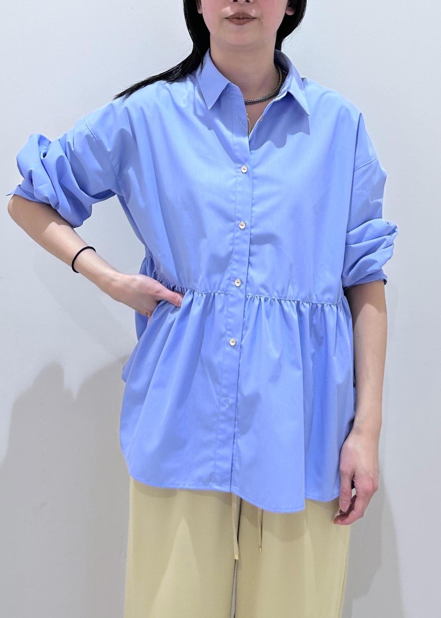 ROPÉ PICNICペプラムシャツブラウス/UVカット・防シワブルー / F¥4,994レビューふわっとしたハリ感あるシャツは主役級に決まるアイテム♡