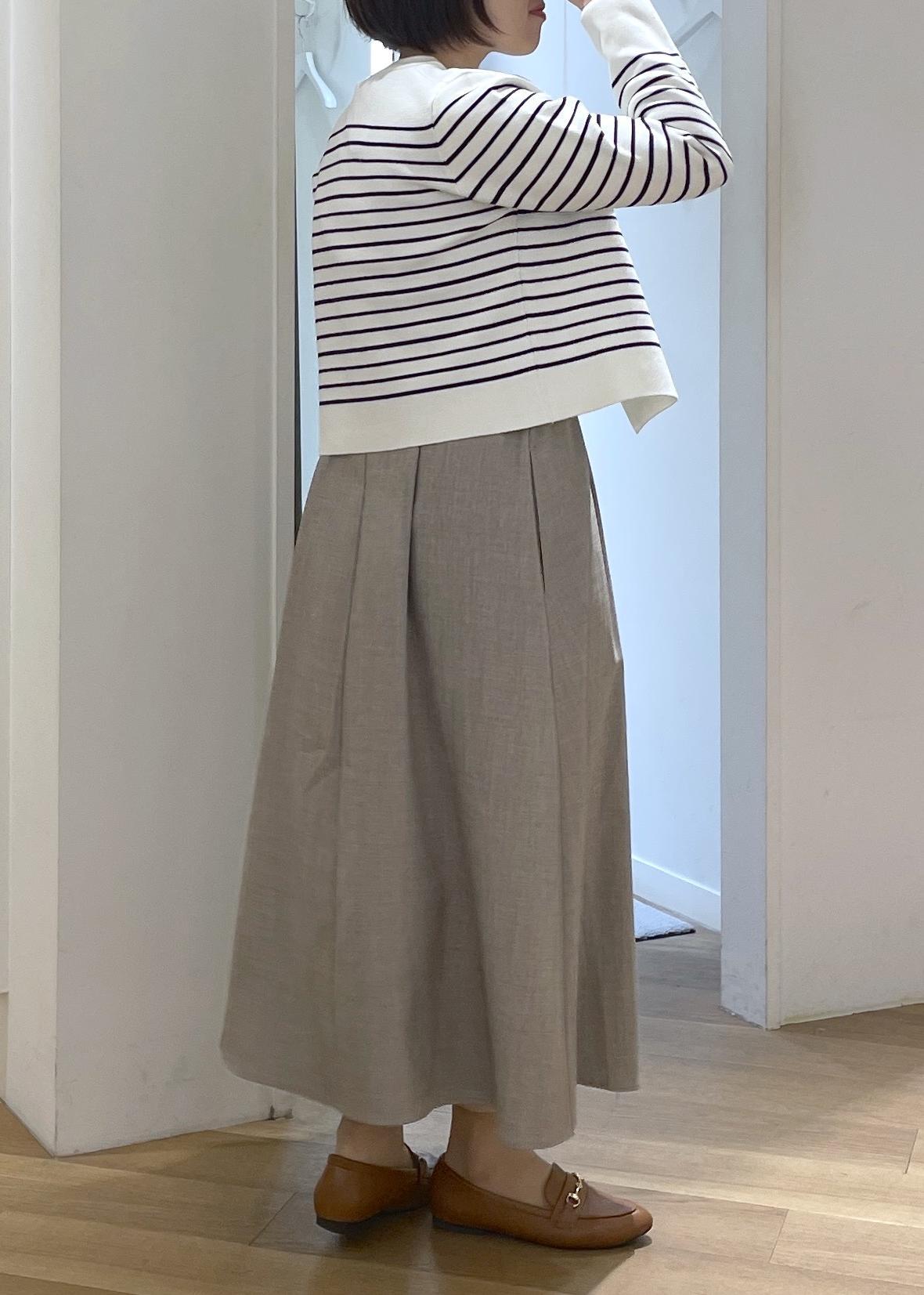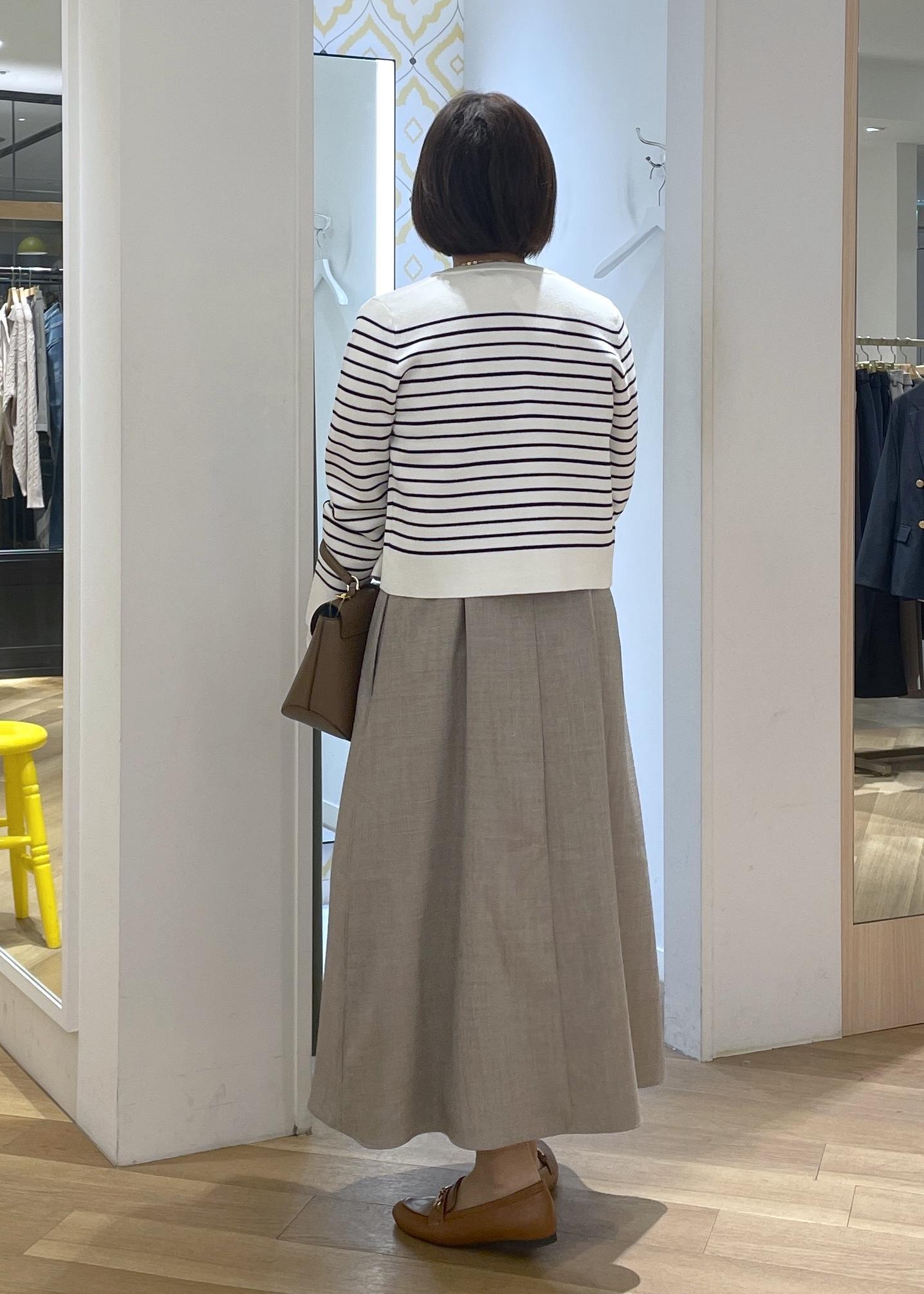 ボーダーカーディガンのジャンスカコーデ
