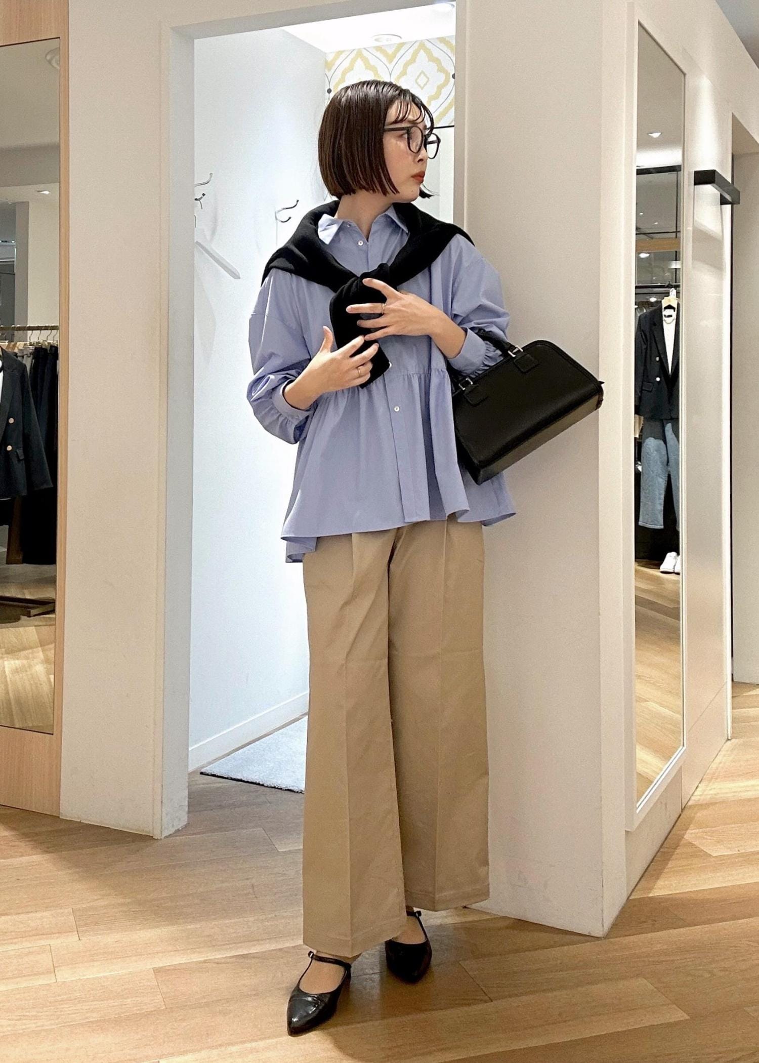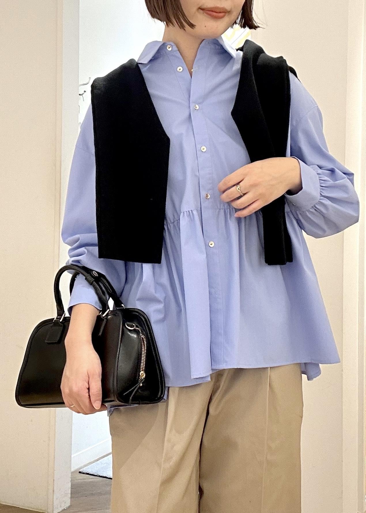 ROPÉ PICNICペプラムシャツブラウス/UVカット・防シワブルー / F¥4,994レビュー身幅たっぷりのシャツはおしりや腰周りをオシャレにスッキリ見せてくれます♪