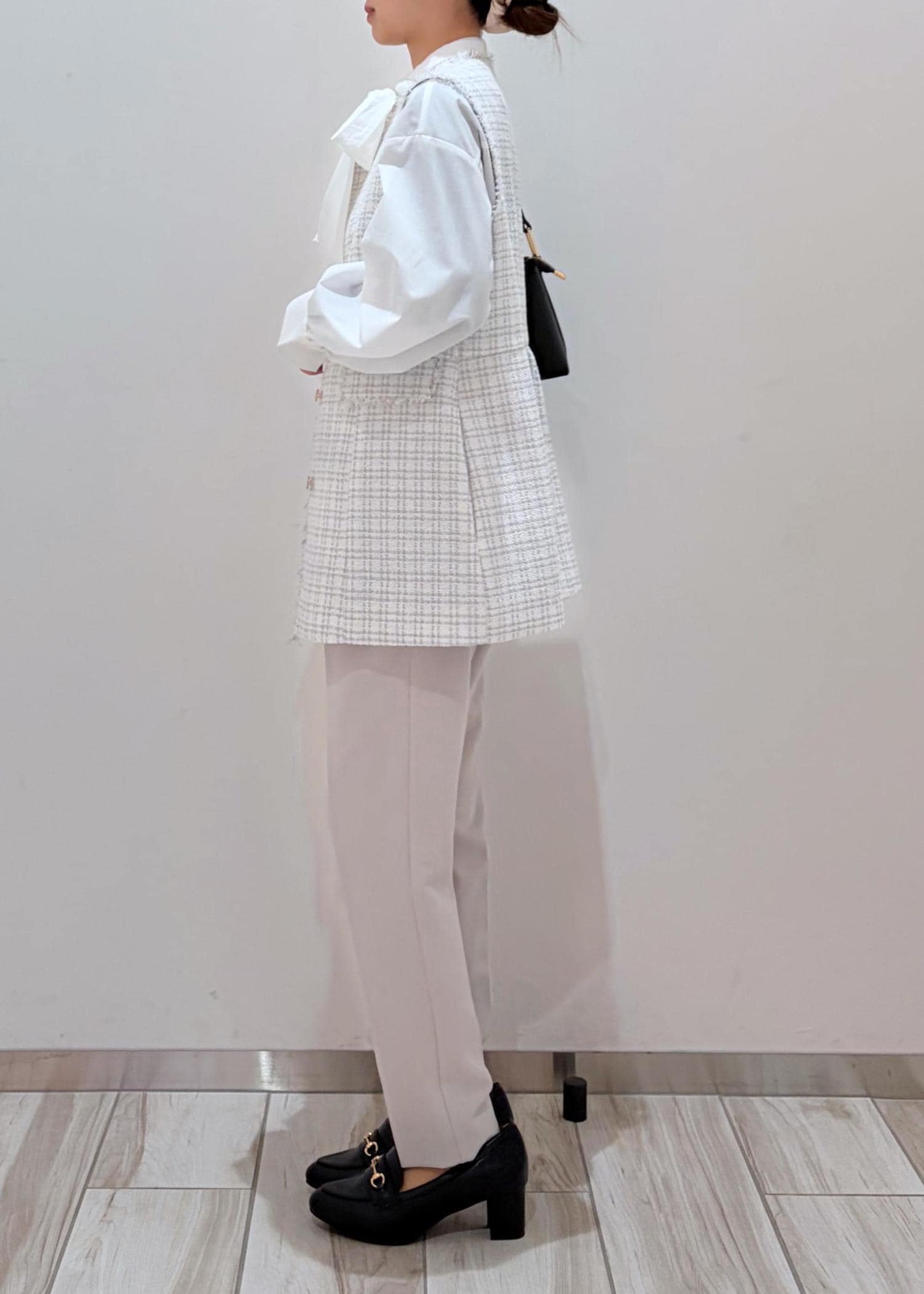明るめツイードジレ×360°ウルトラストレッチでお祝いの場面に♪セットアップ対応