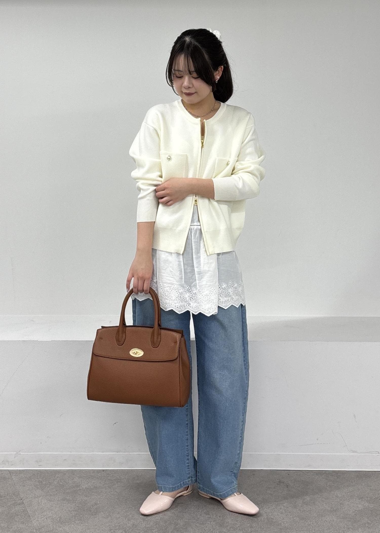 ROPÉ PICNICミラノリブダブルジップニットカーディガンオフホワイト / F¥6,490レビュー161cm/Fサイズで腰回りが隠れる着丈。身幅はたっぷりとゆとりがありブルゾン感覚で羽織れるシルエットです。ダブルジップなのでボトムスを選ばず、コーデのバランスが取りやすいです。