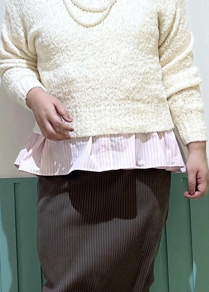 ピンクシャツやラメニットで、