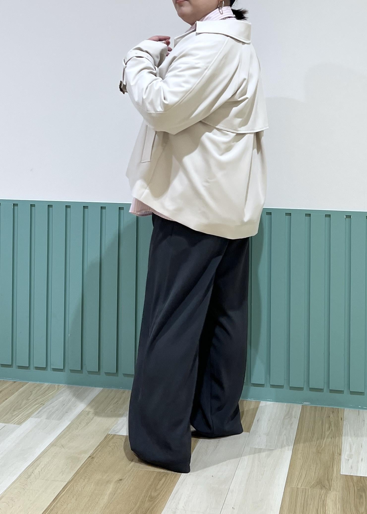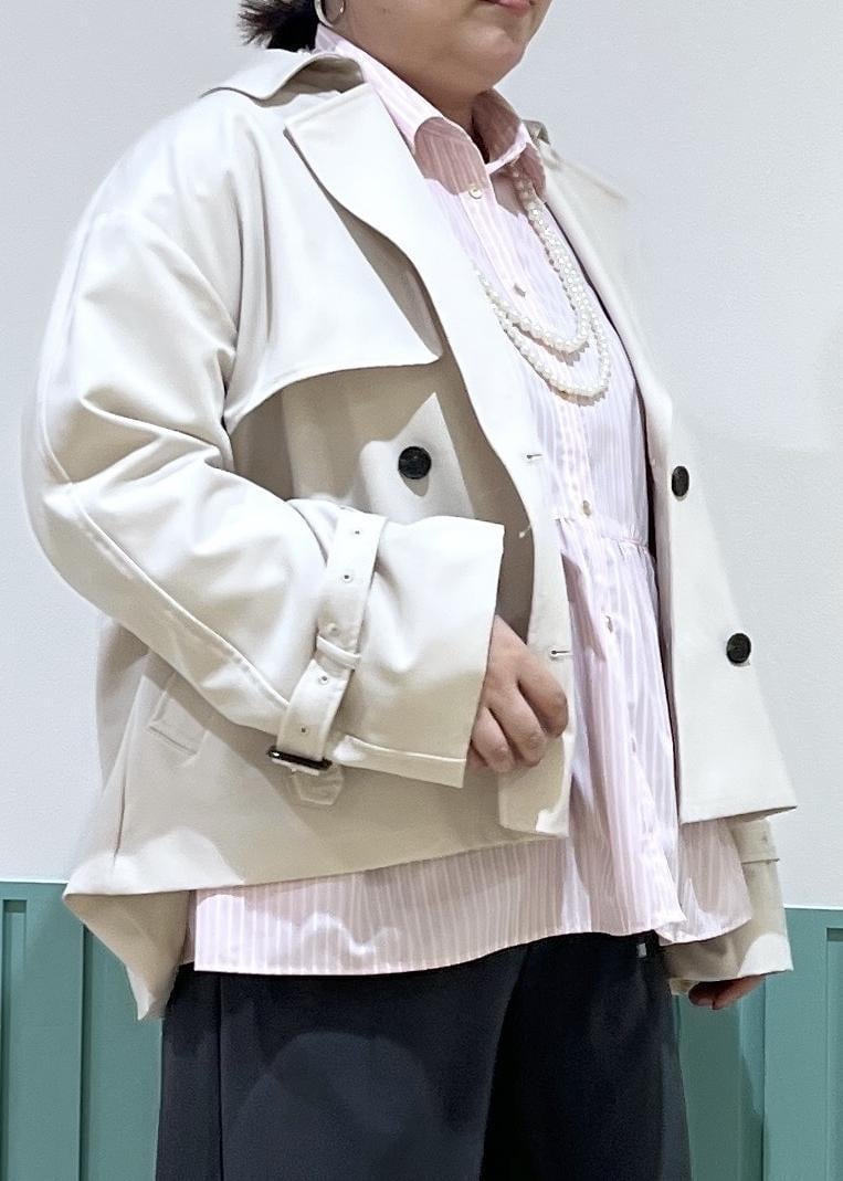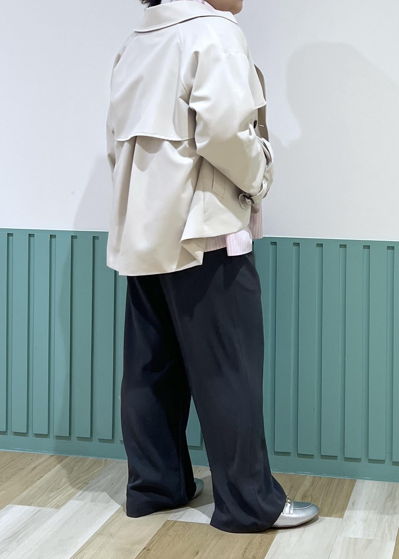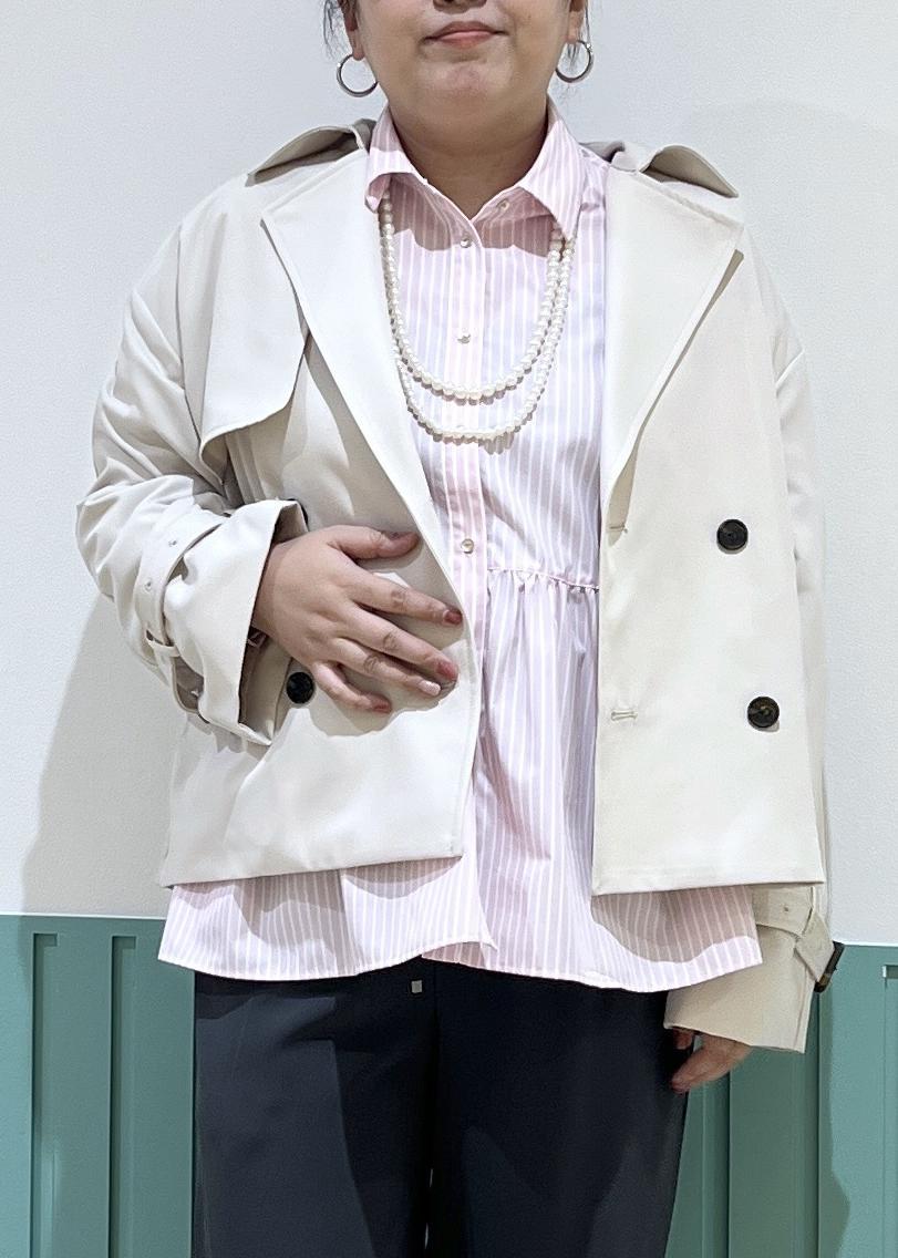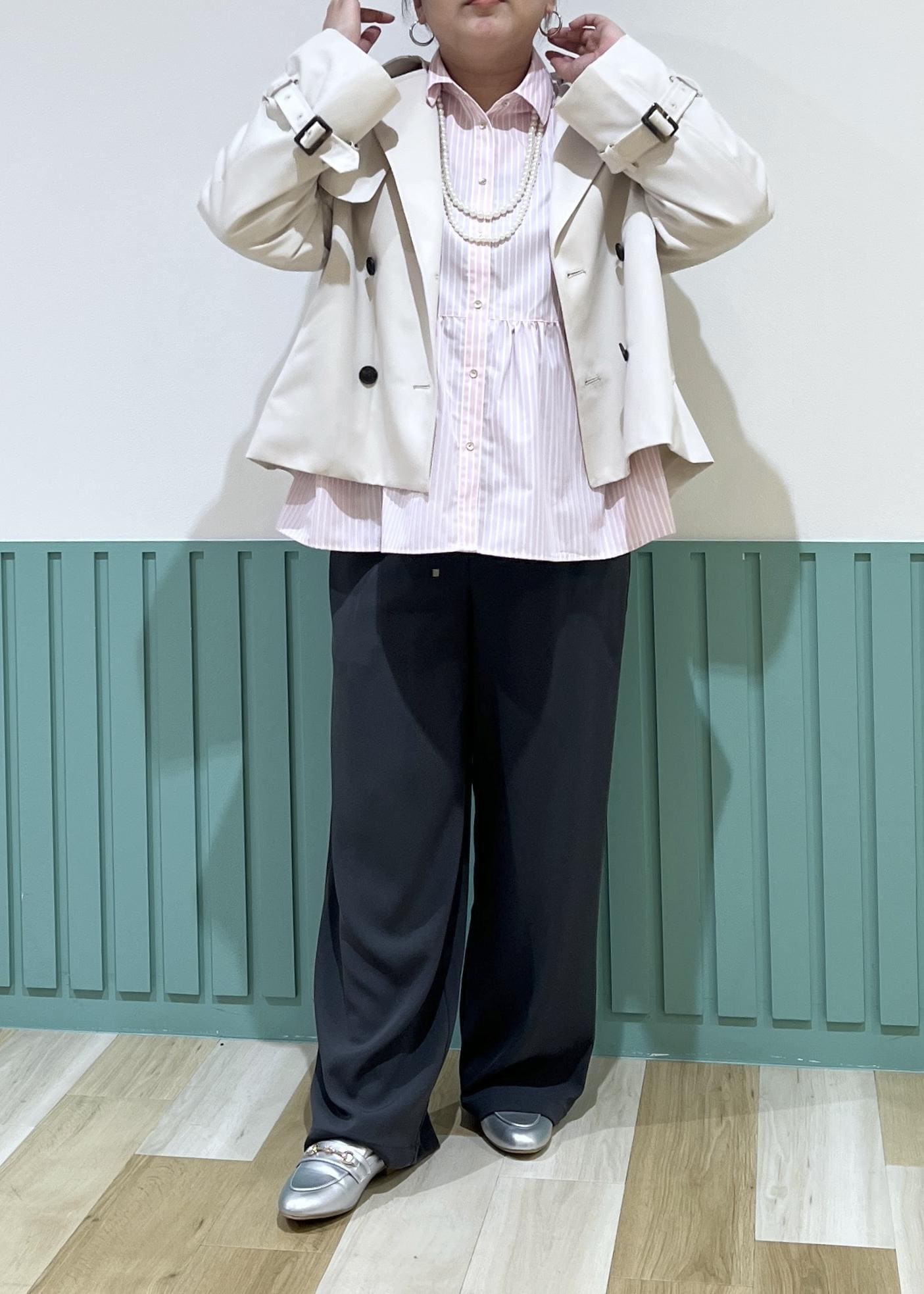 ショートトレンチは軽くてカジュアルアイテムにプラスすると、程よいきちんと感があるので私生活でもヘビロテしてます♪今回はピンクブラウスと合わせ思いっきり春のイメージで♡