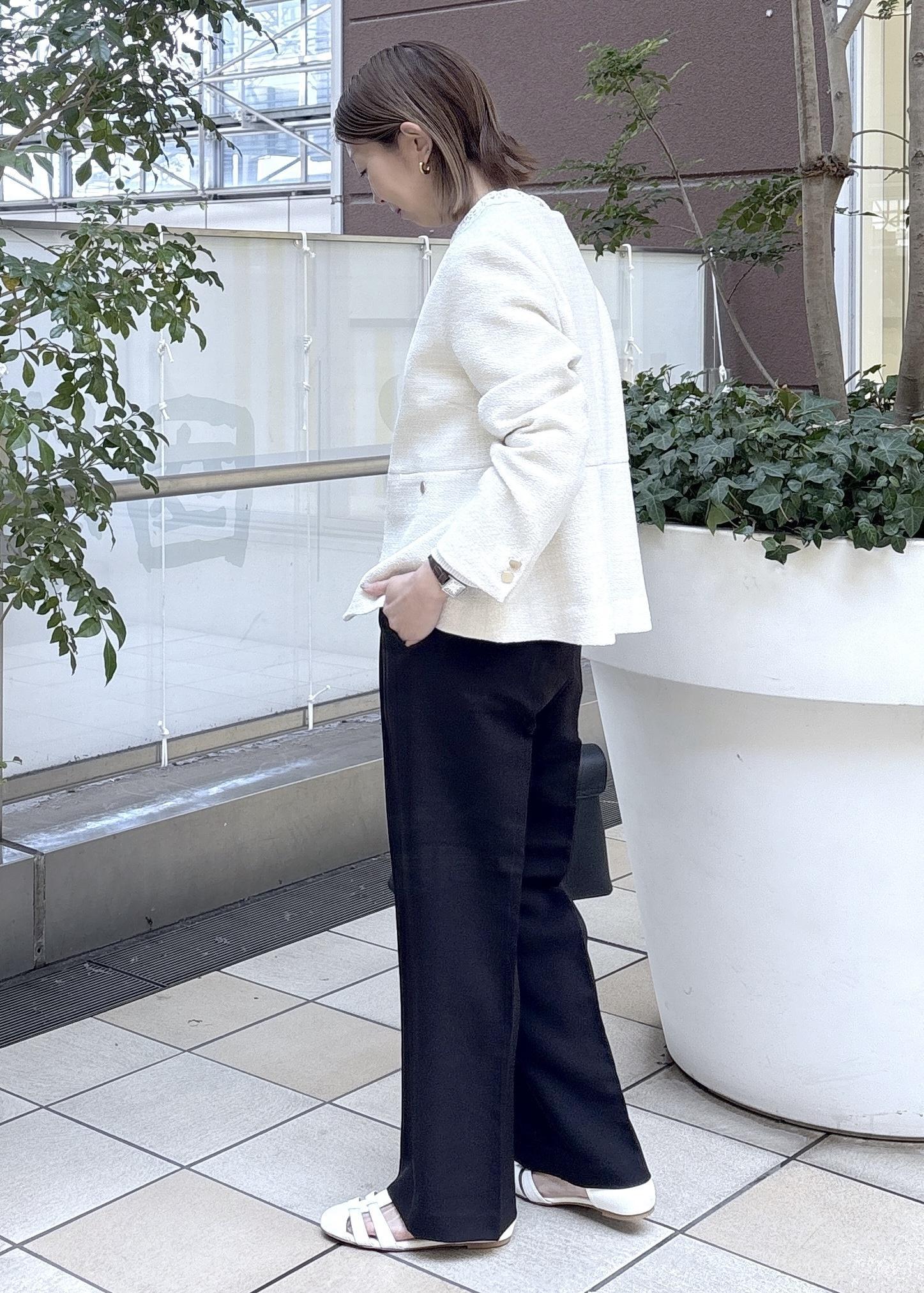 特別な日や日常使いのどちらにも対応できるツイードジャケットで、フォーマルからカジュアルまで幅広く対応