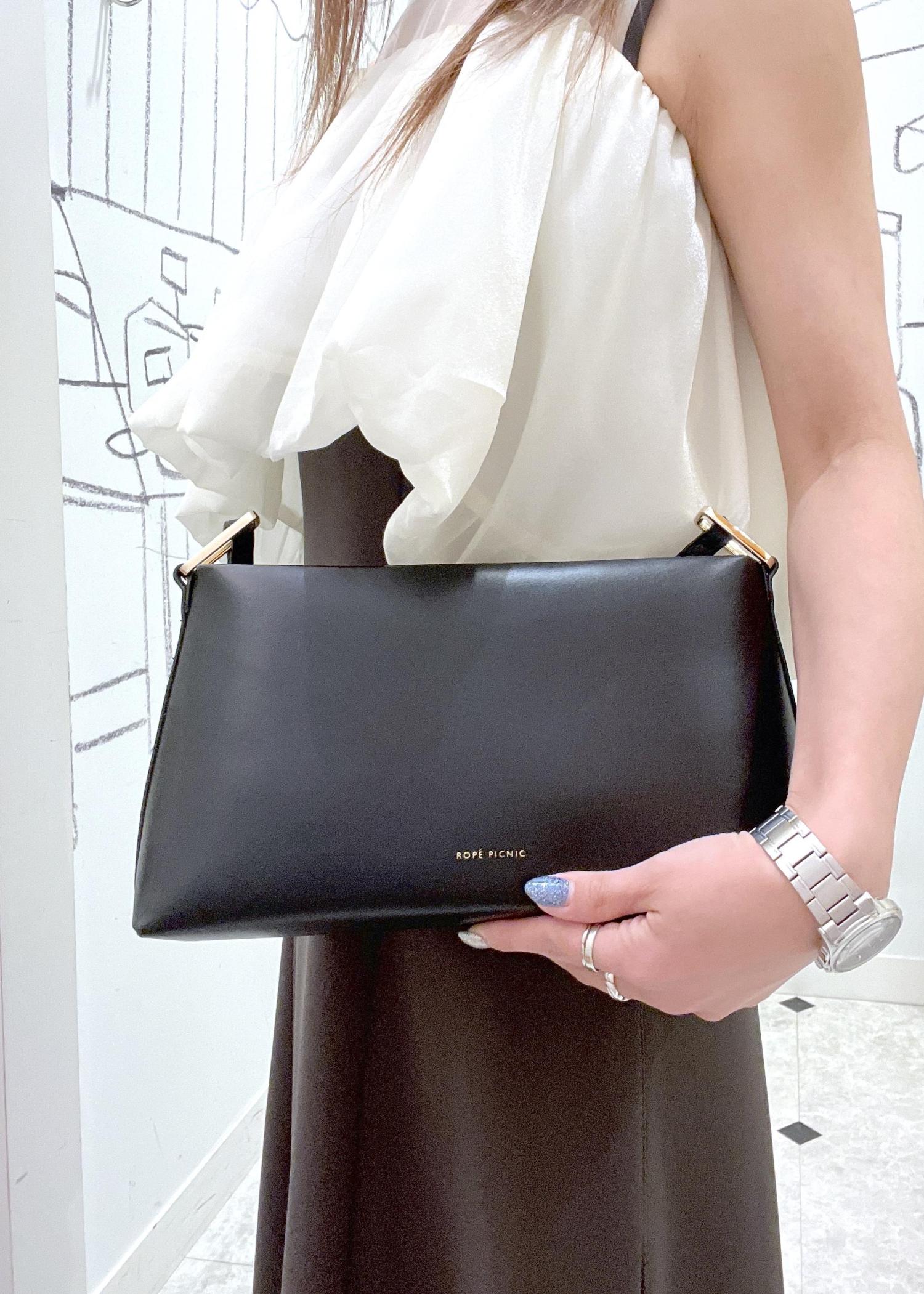 ROPÉ PICNIC PASSAGEフラットワンショルダーバッグブラック / F¥5,489レビュー軽くて柔らかい合皮素材のシンプルなバッグです。小さめなので、セレモニーにも使えます。横長なので長財布も入ります。ショルダーは、ワンショルで肩がけもできる長さです。