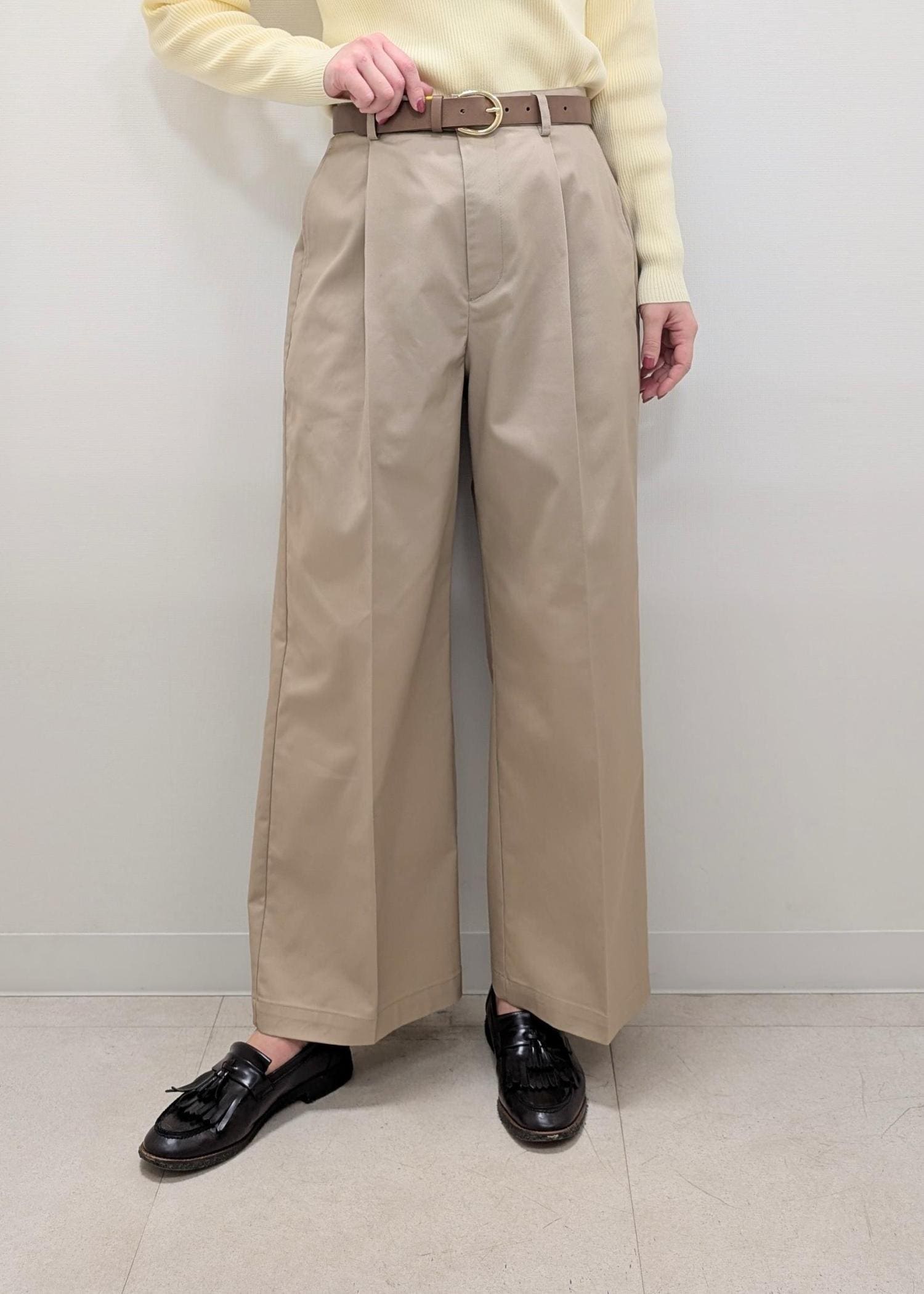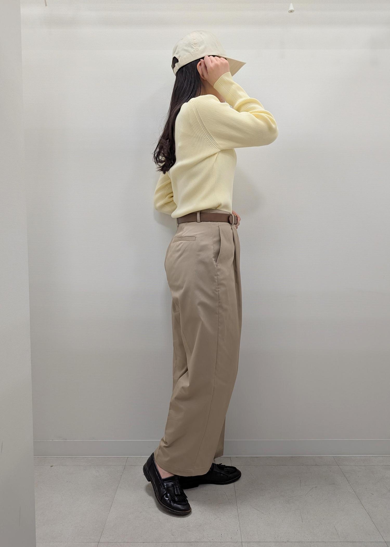 ニット×ワイドパンツのシンプルなコーディネート。