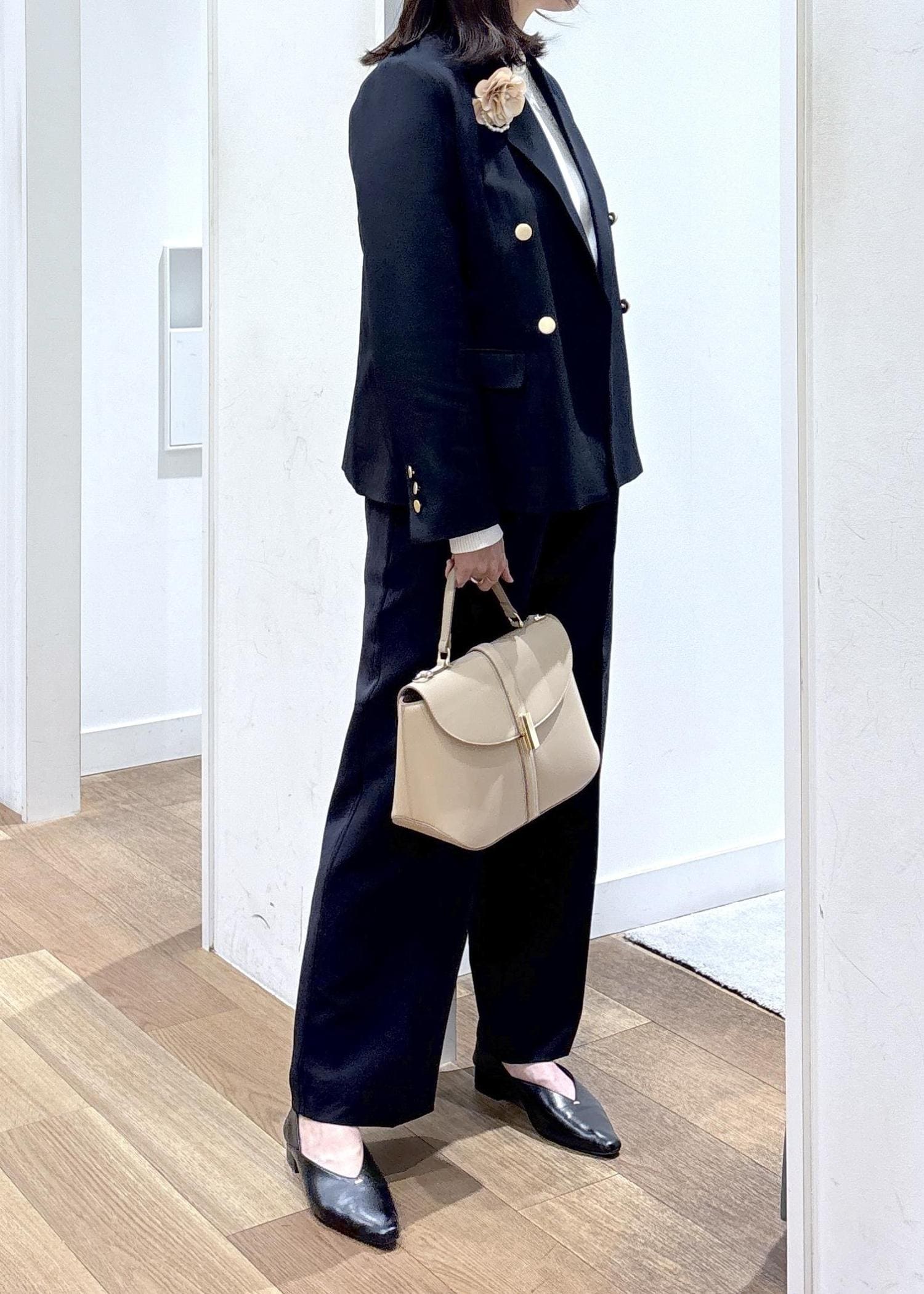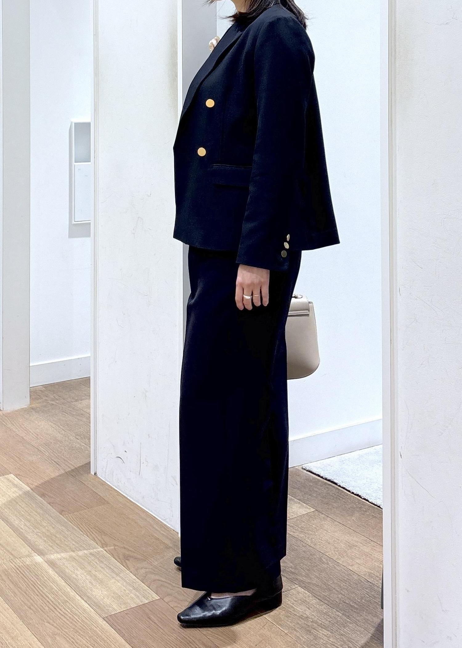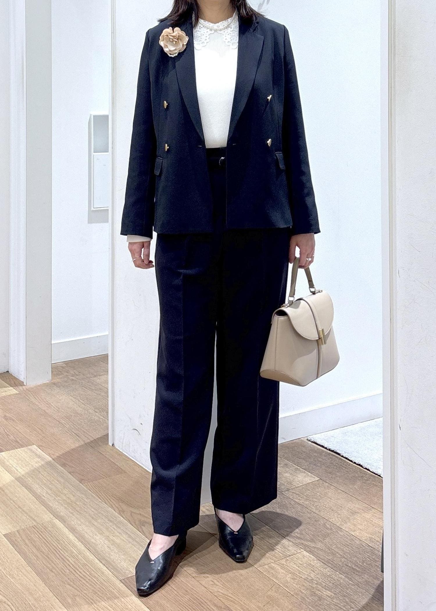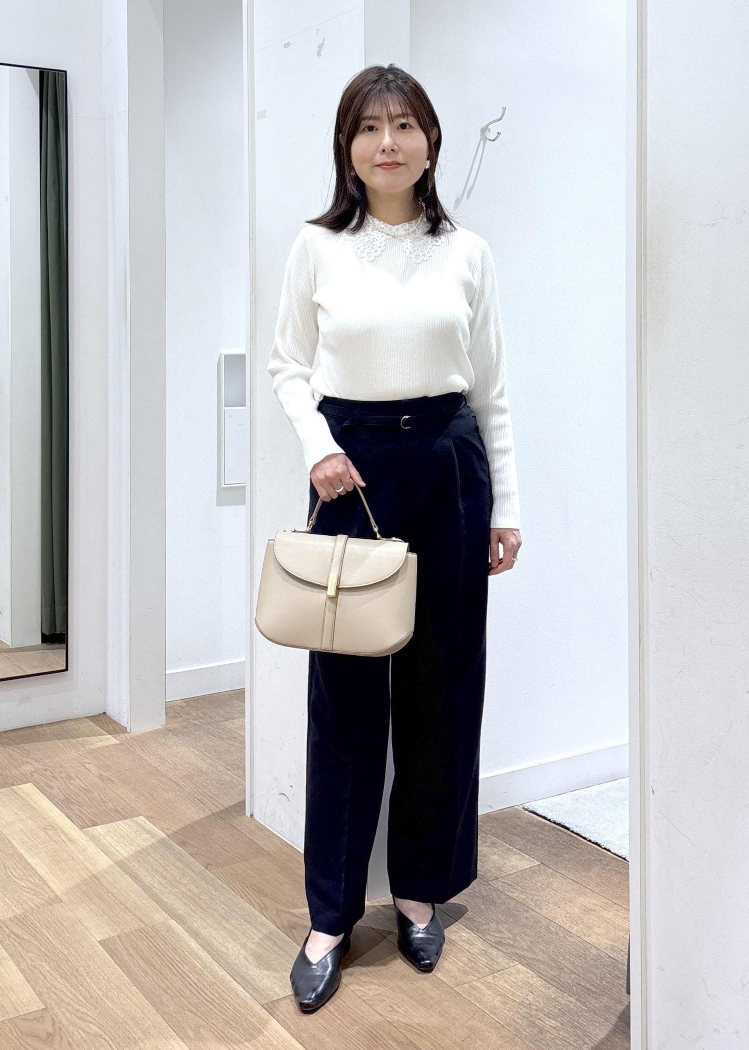身幅にゆとりのあるデザインなので、インナーに薄手のニットも着ていただけます。 -