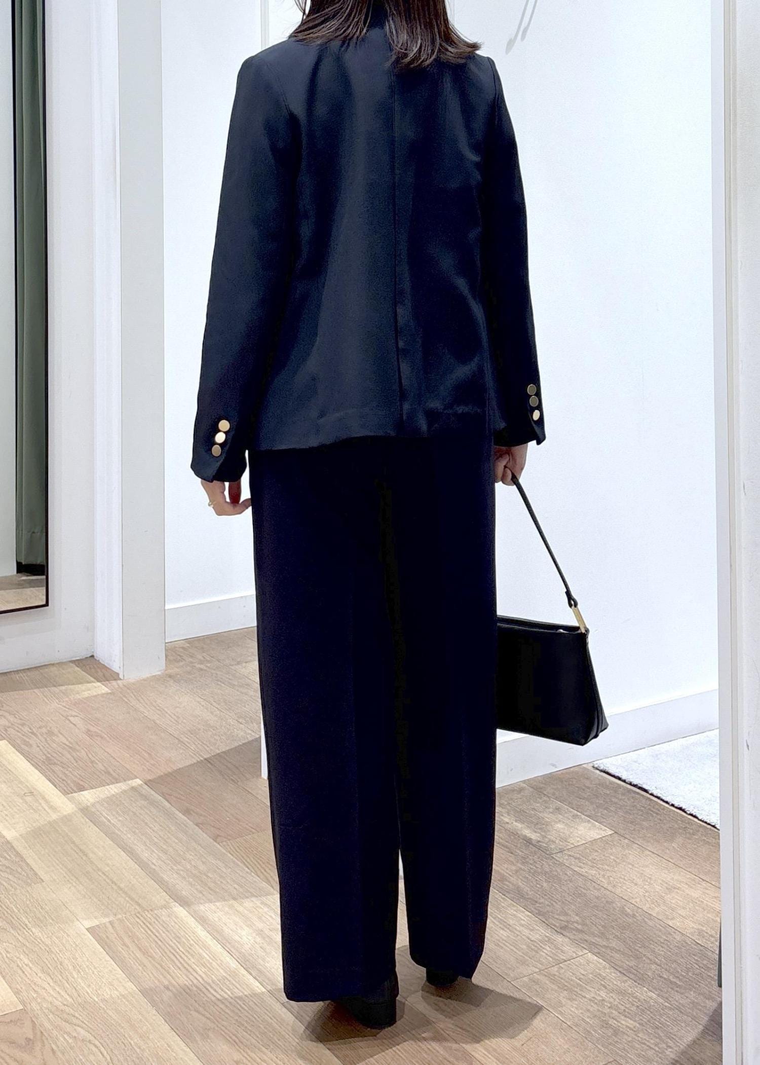 ROPÉ PICNIC【WEB限定カラー】360°ウルトラストレッチ ワイドパンツ/花粉ガード・セットアップ対応ネイビー / L¥5,995レビューストンと落ちる太すぎないワイドパンツなので、すっきりと履いていただけます。腰と太ももの張りが気になる体型ですが、同素材のテーパードより目立たず着用できました。