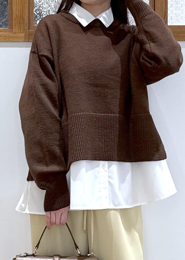 ROPÉ PICNIC【新色追加】着丈が選べるクルーネックサイドスリットニットプルオーバー/イージーケアダークブラウン / M¥2,699レビュー洗濯機で洗える、お手入れが簡単なニット。