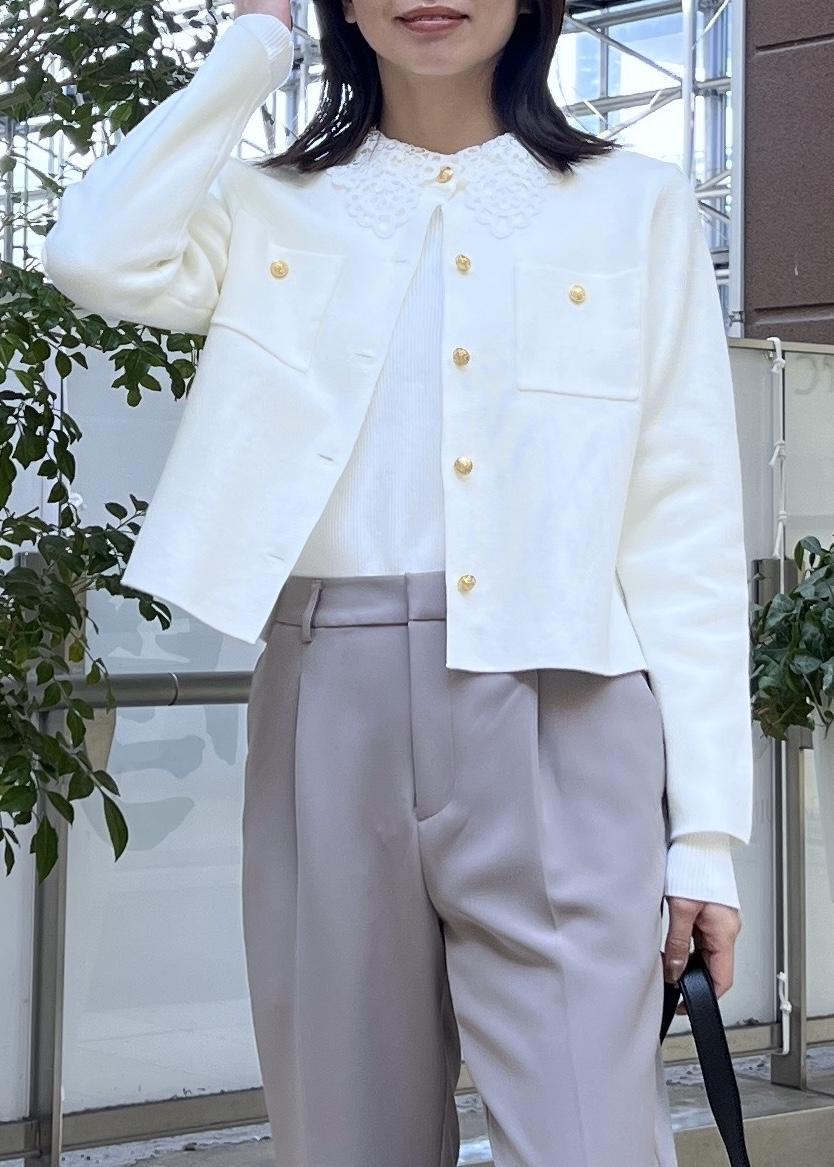 白ニットカーディガンで大人きれいめコーデ