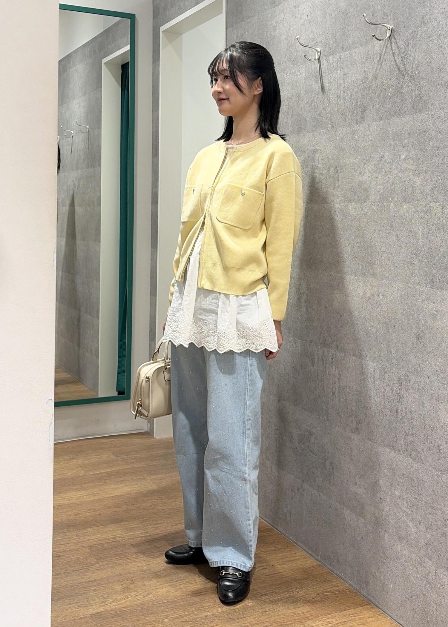 春のトレンドカラーのイエローを取り入れて、コーデも気分も明るくなります。