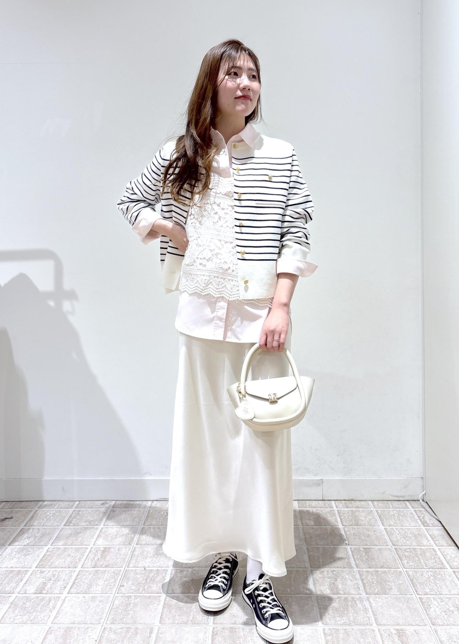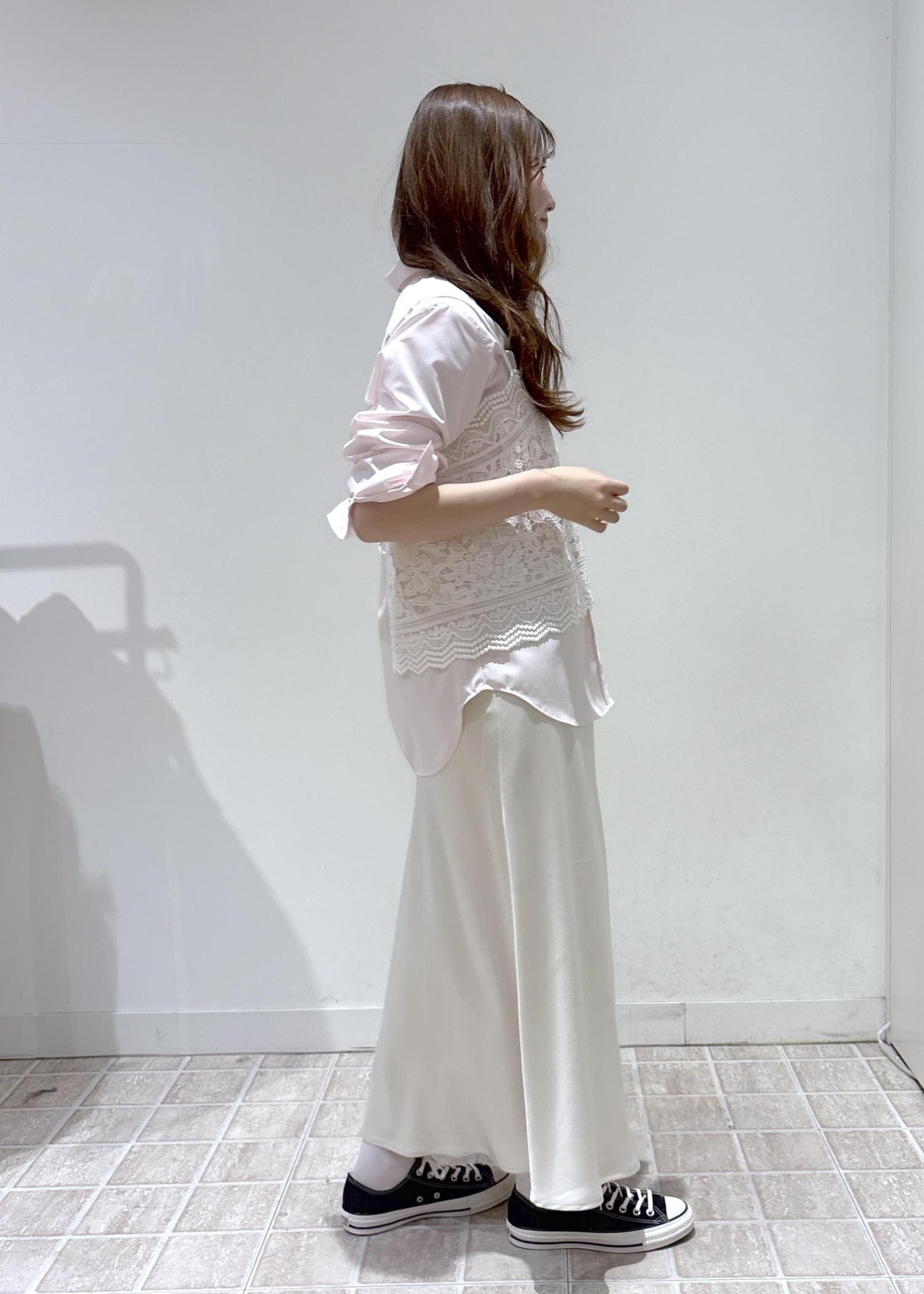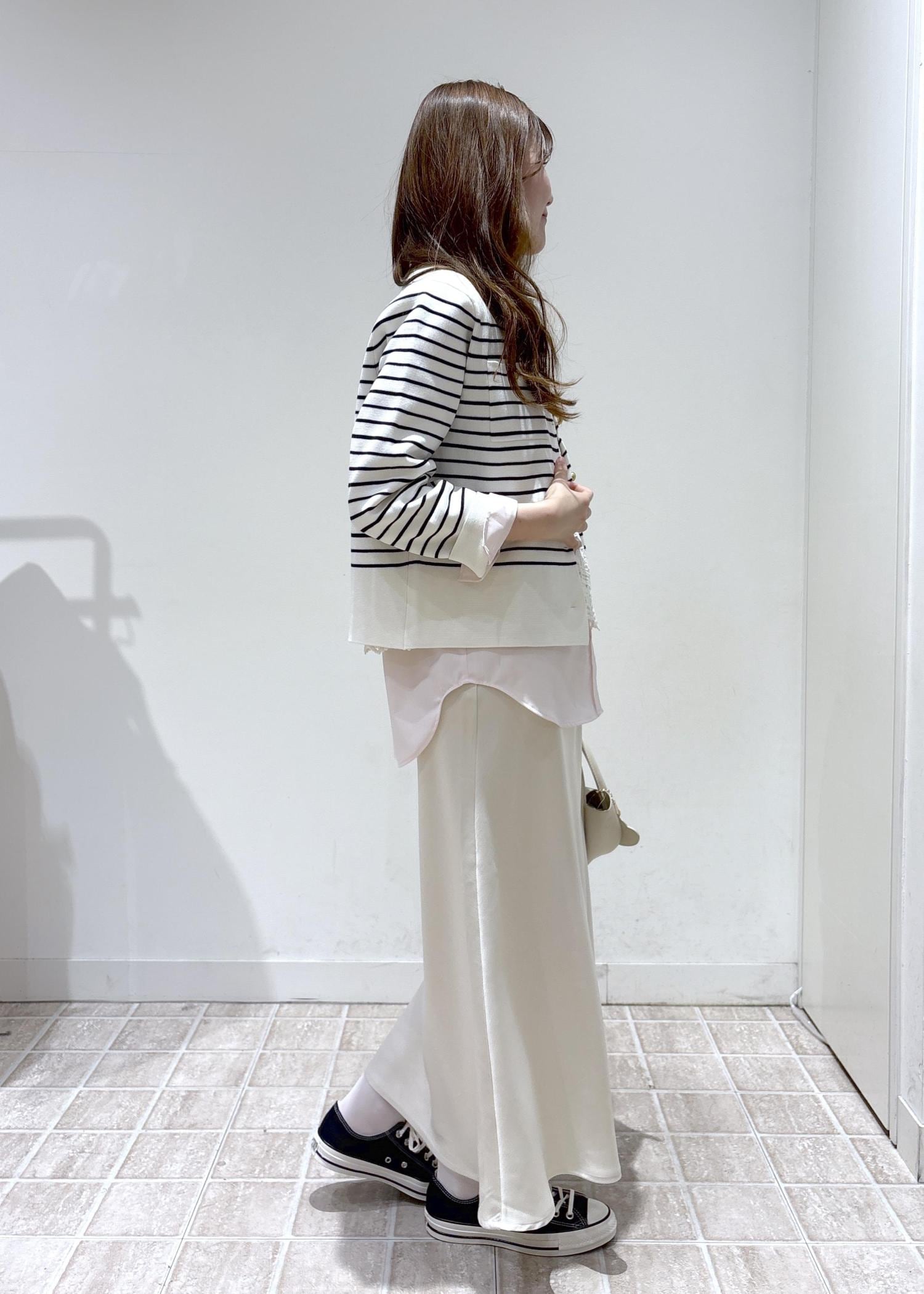 ROPÉ PICNIC細見えバイアスサテンスカート/イージーケアオフホワイト / F¥6,490レビューサテン生地で落ち感が良く、スッキリとしたシルエットです。着丈は長めでくるぶしが少し出るくらいでした。ウエストも総ゴムで締め付けもございません。