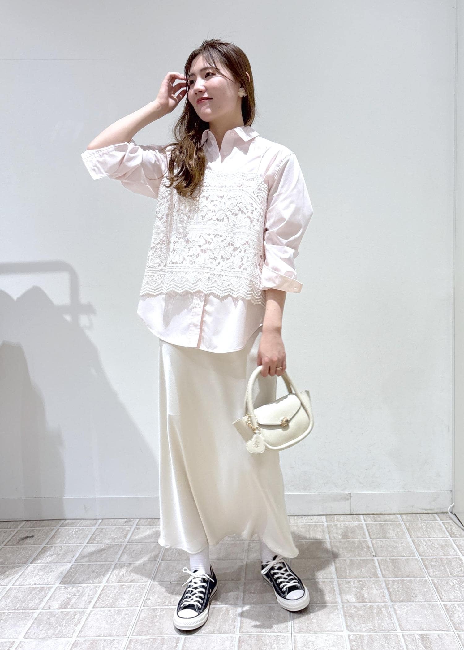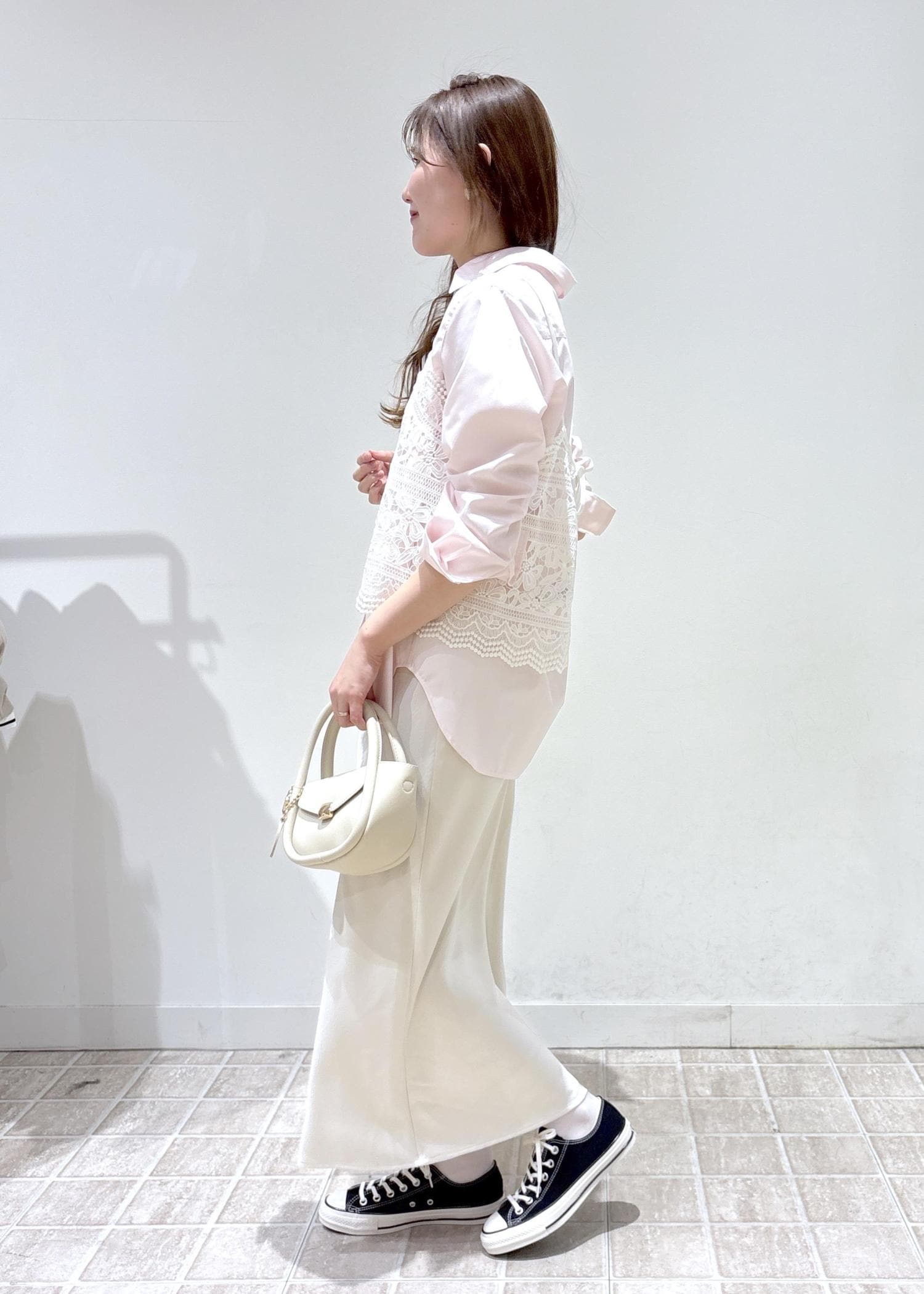 春らしいレース素材とピンク色を合わせたコーディネートです◎カーディガンはお仕事にもおすすめですし、コンバースでカジュアルダウンしてお出かけコーデにもおすすめです◎