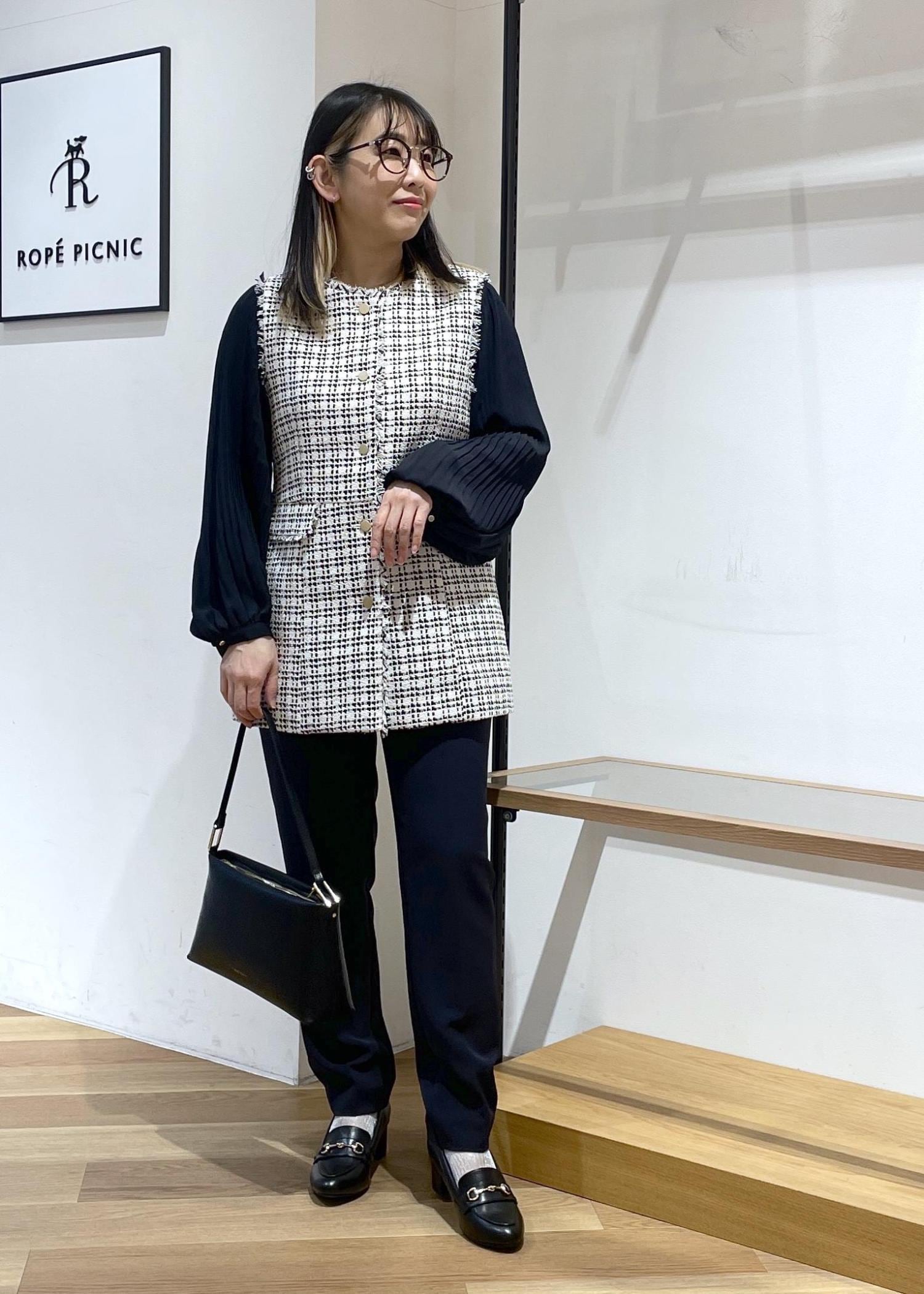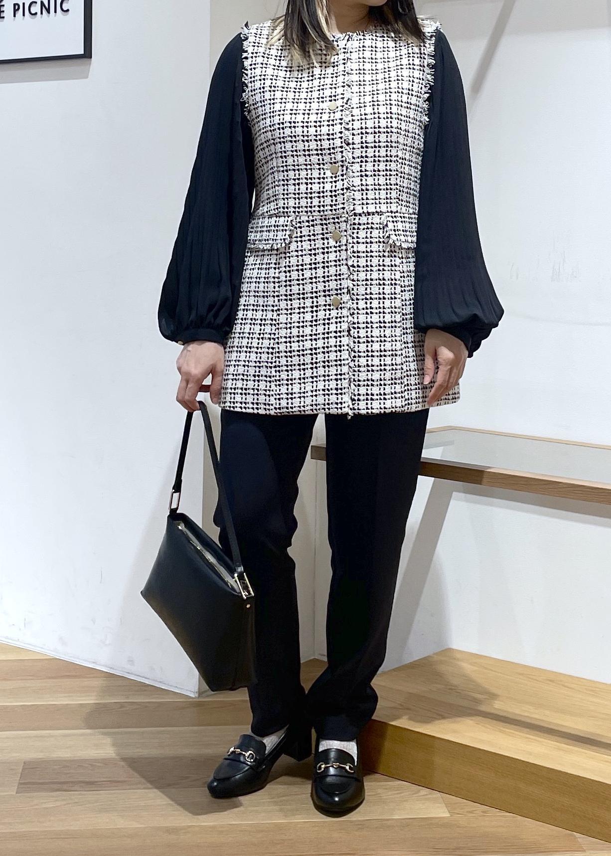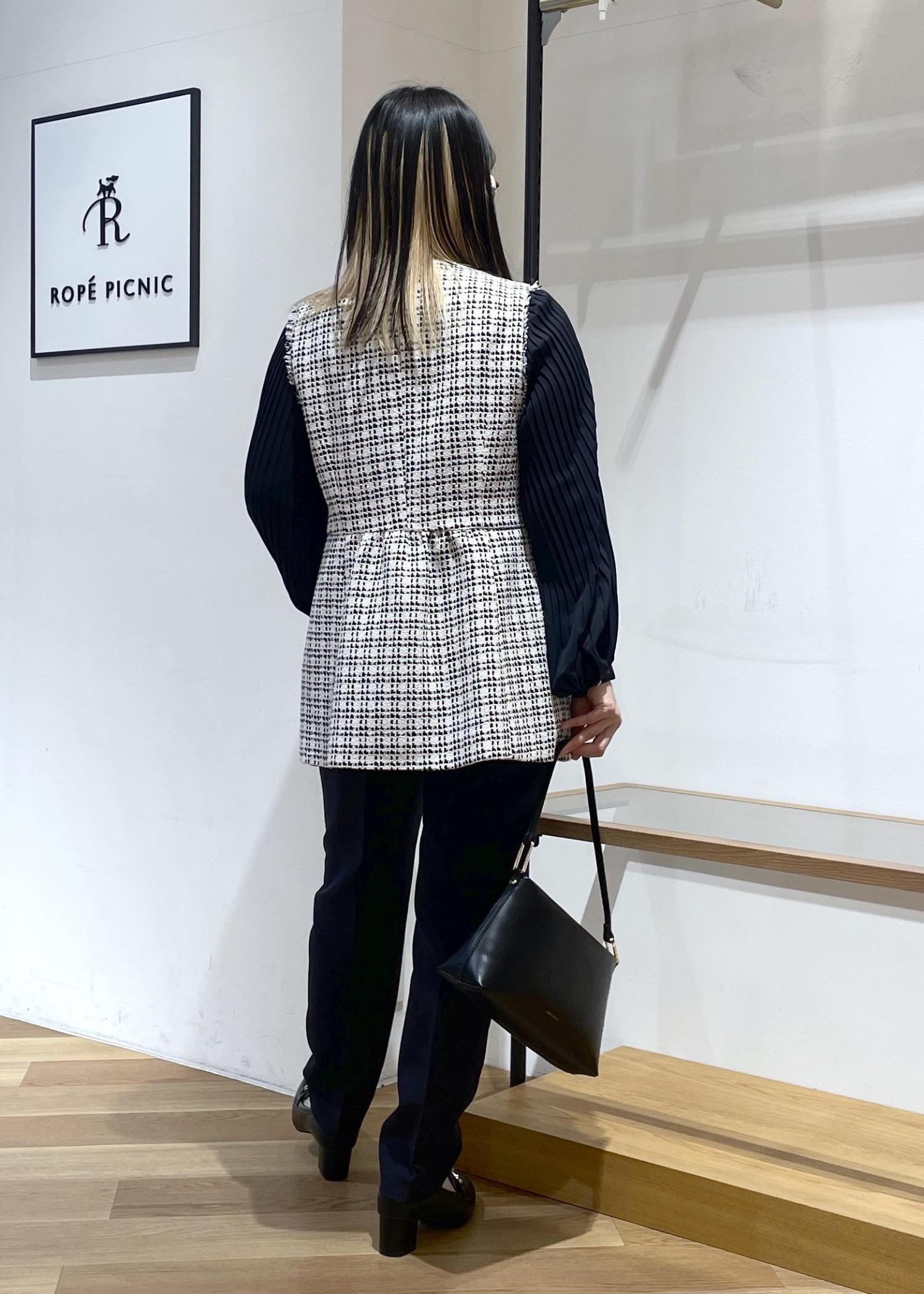 2BUY10%OFFROPÉ PICNIC【WEB限定カラー】ツイード金ボタンジレベスト/セレモニー対応・リンクコーデブラック系 / F¥8,998レビューセレモニーにも普段にも着用していただける万能ツイードジレベストです。ウエストのギャザーの切り返しがふわりとしていて、お腹とお尻のカバーができちゃいます○