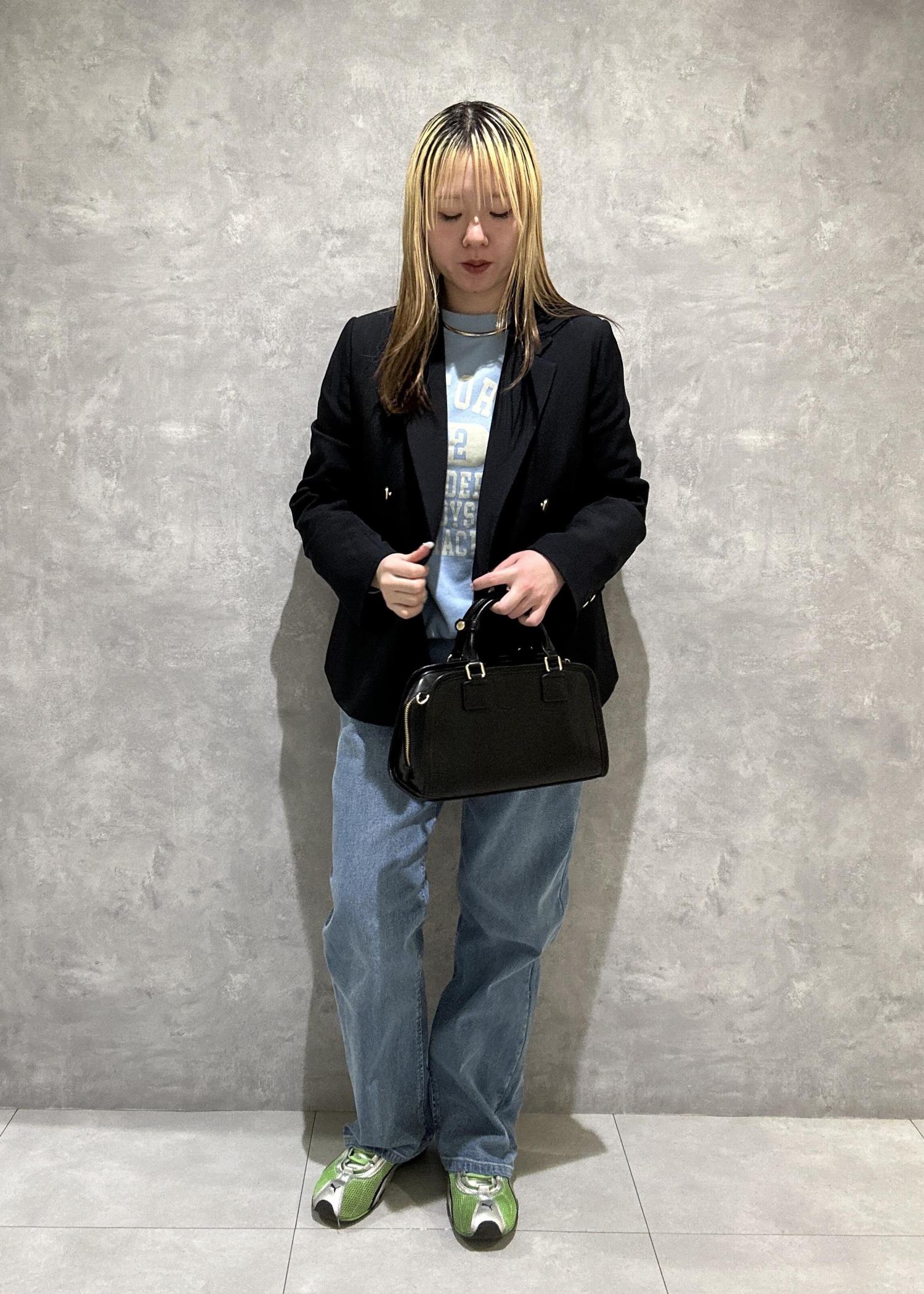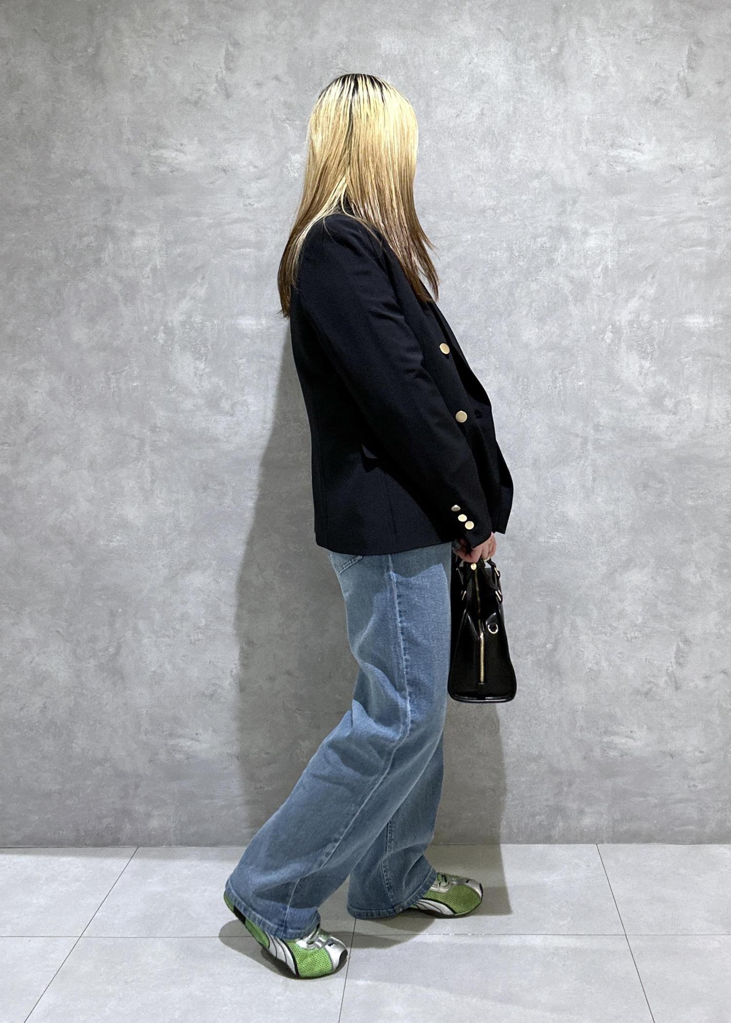 春っぽいカラーのジャケットデニムコーデ。