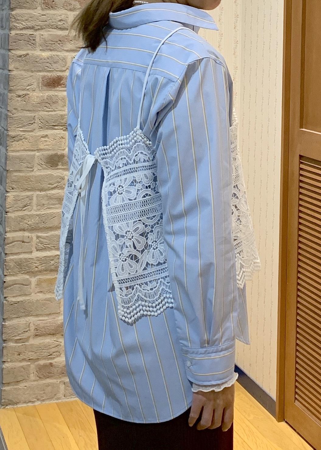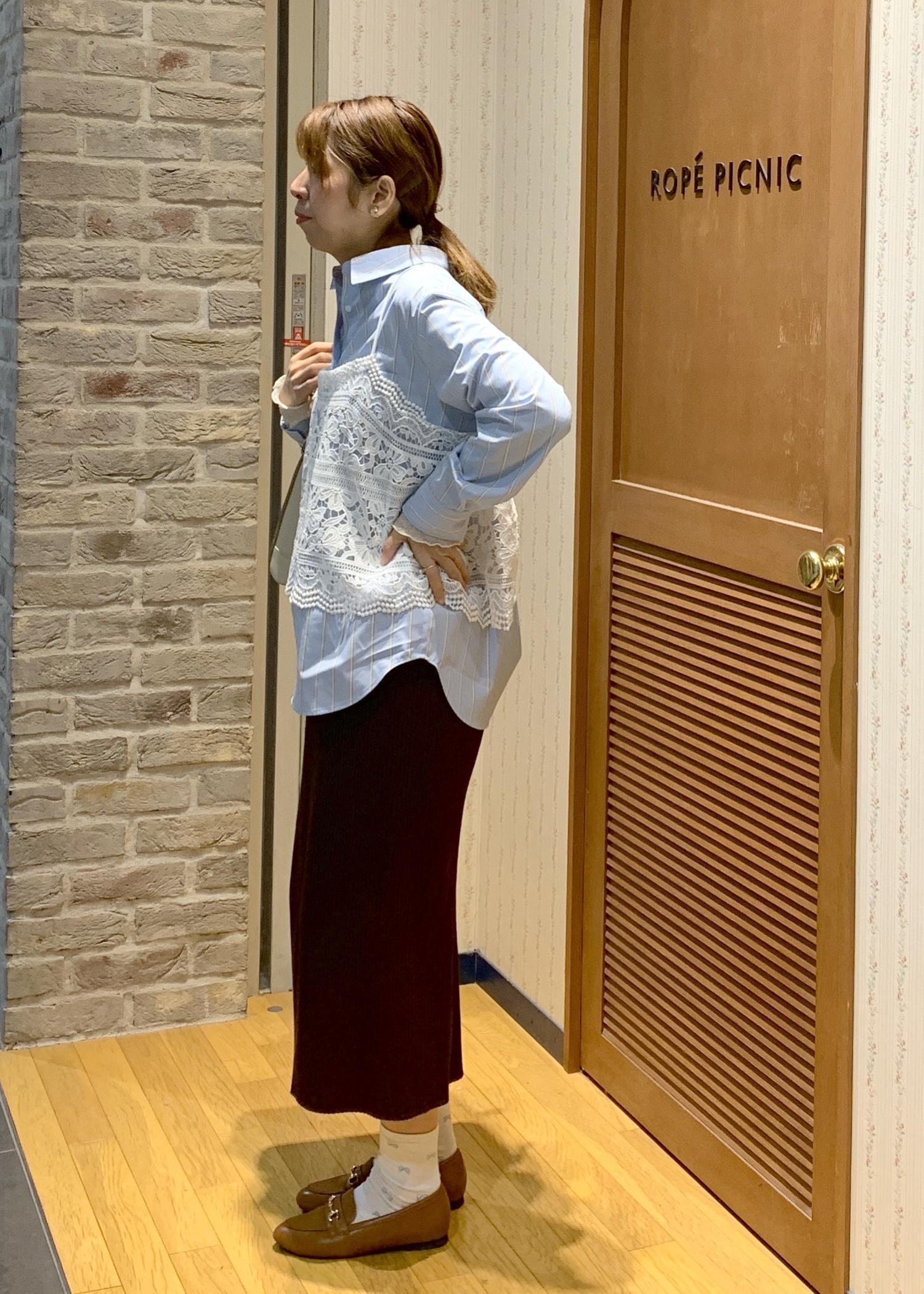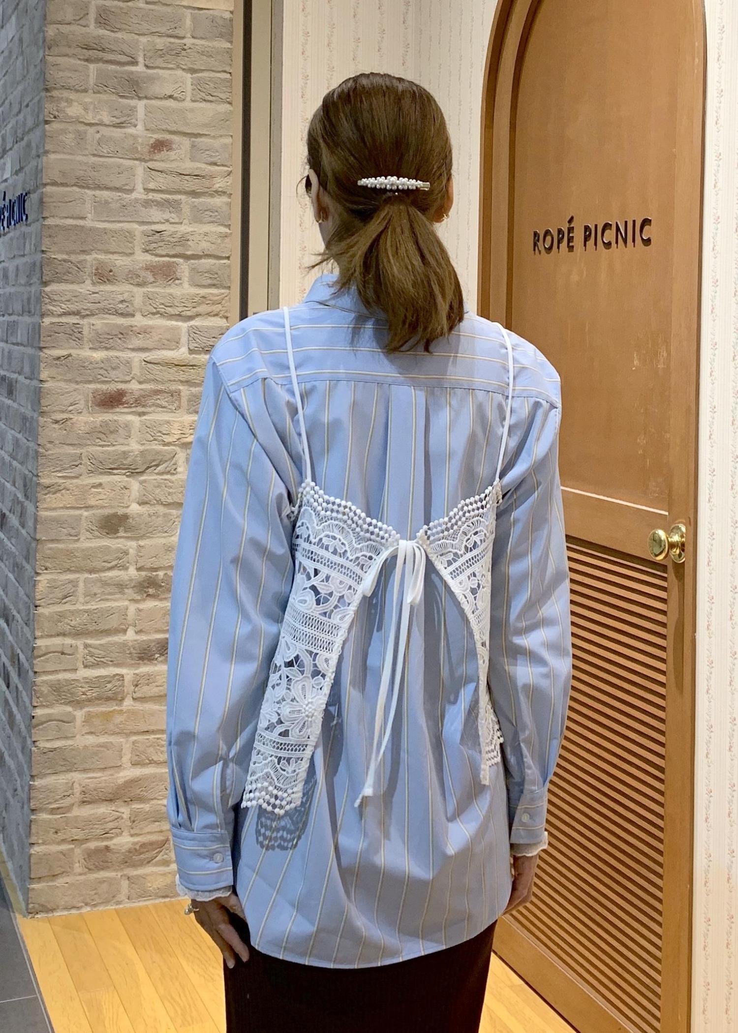 春アイテムで気になっていたシャツとケミカルレースビスチェをレイヤードさせたコーディネートです。