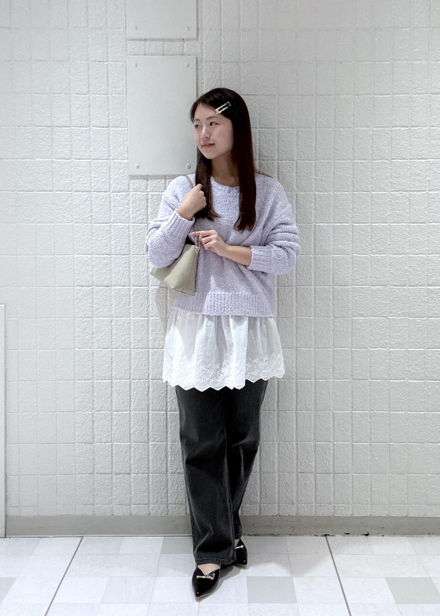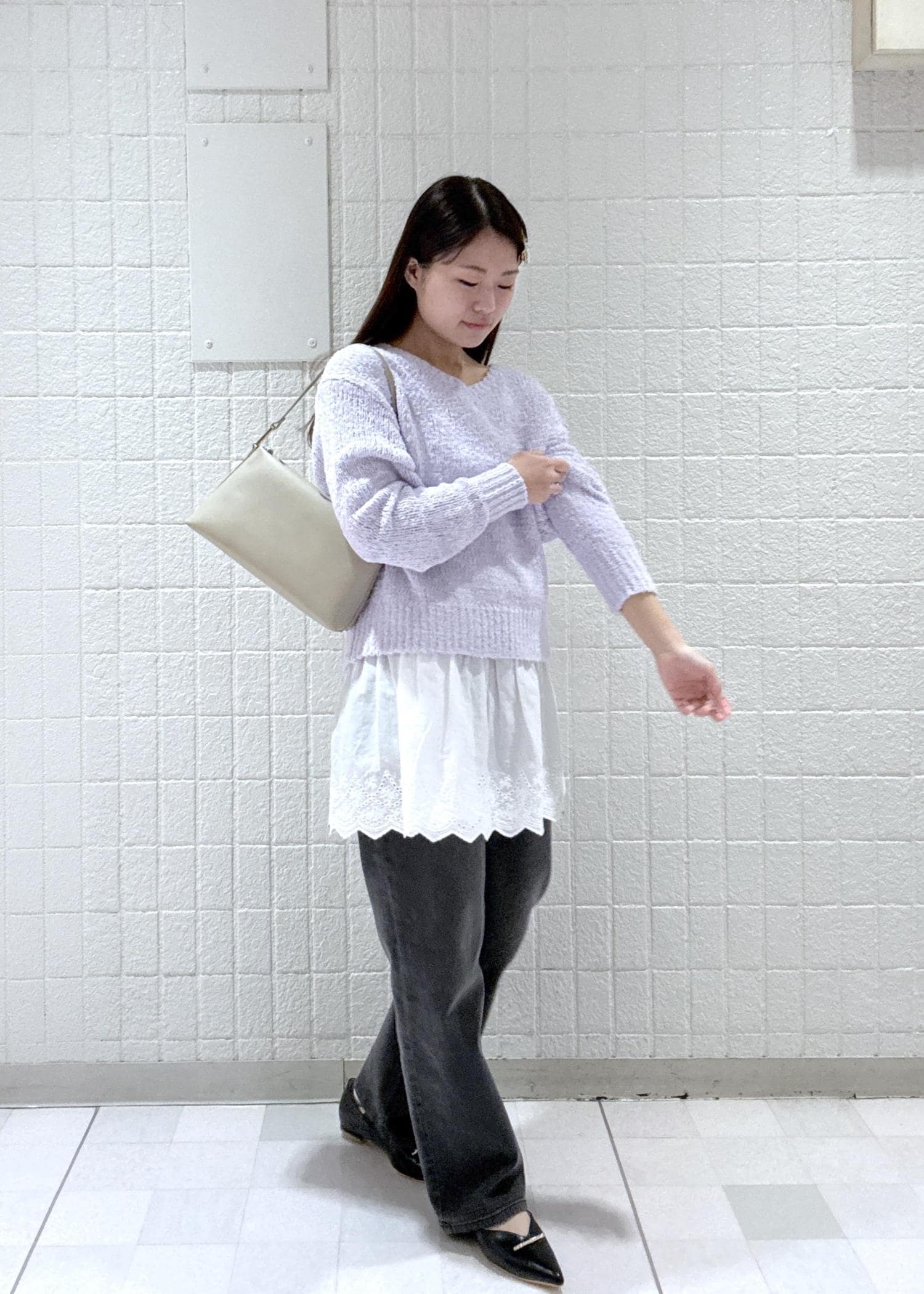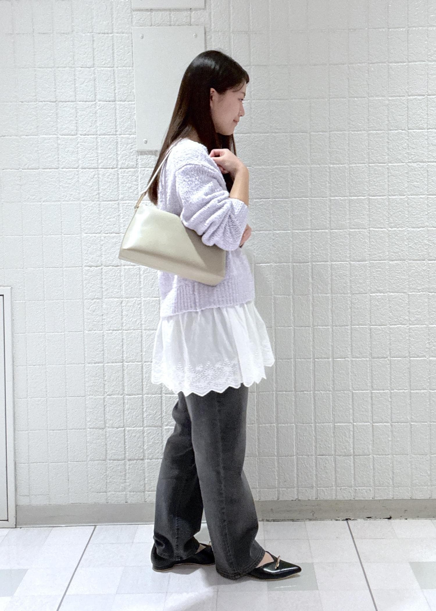 今回はラベンダーでデニム合わせと落ち着いた色味の