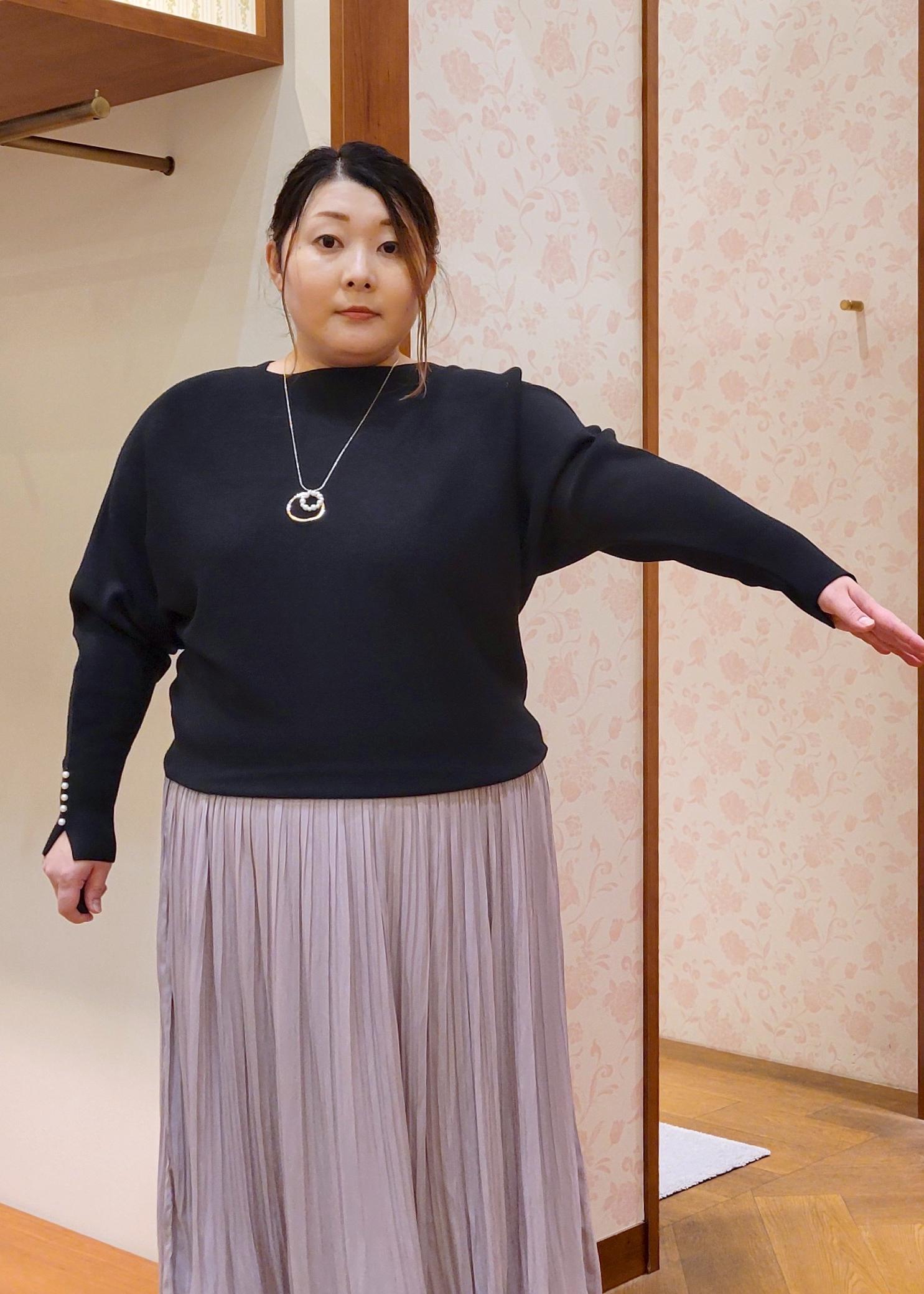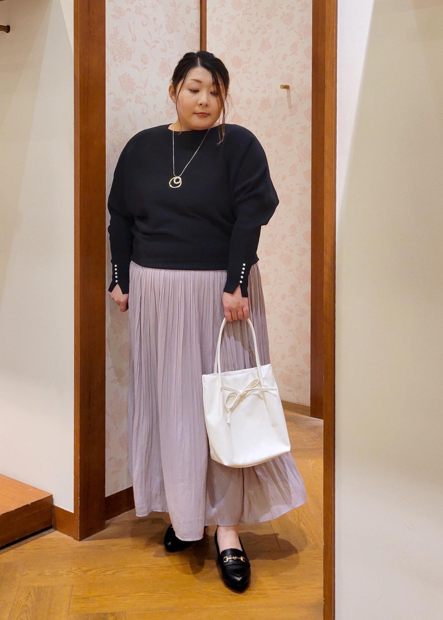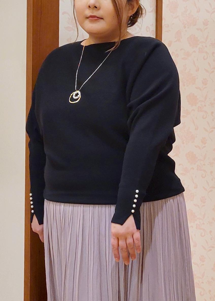 ROPÉ PICNICマシュマロ袖パールドルマンニット/イージーケア・リンクコーデブラック / F¥5,489レビュー全体的にゆったりシルエットで体型カバーしてくれます。また肌触りも柔らかいので着心地もよいです。