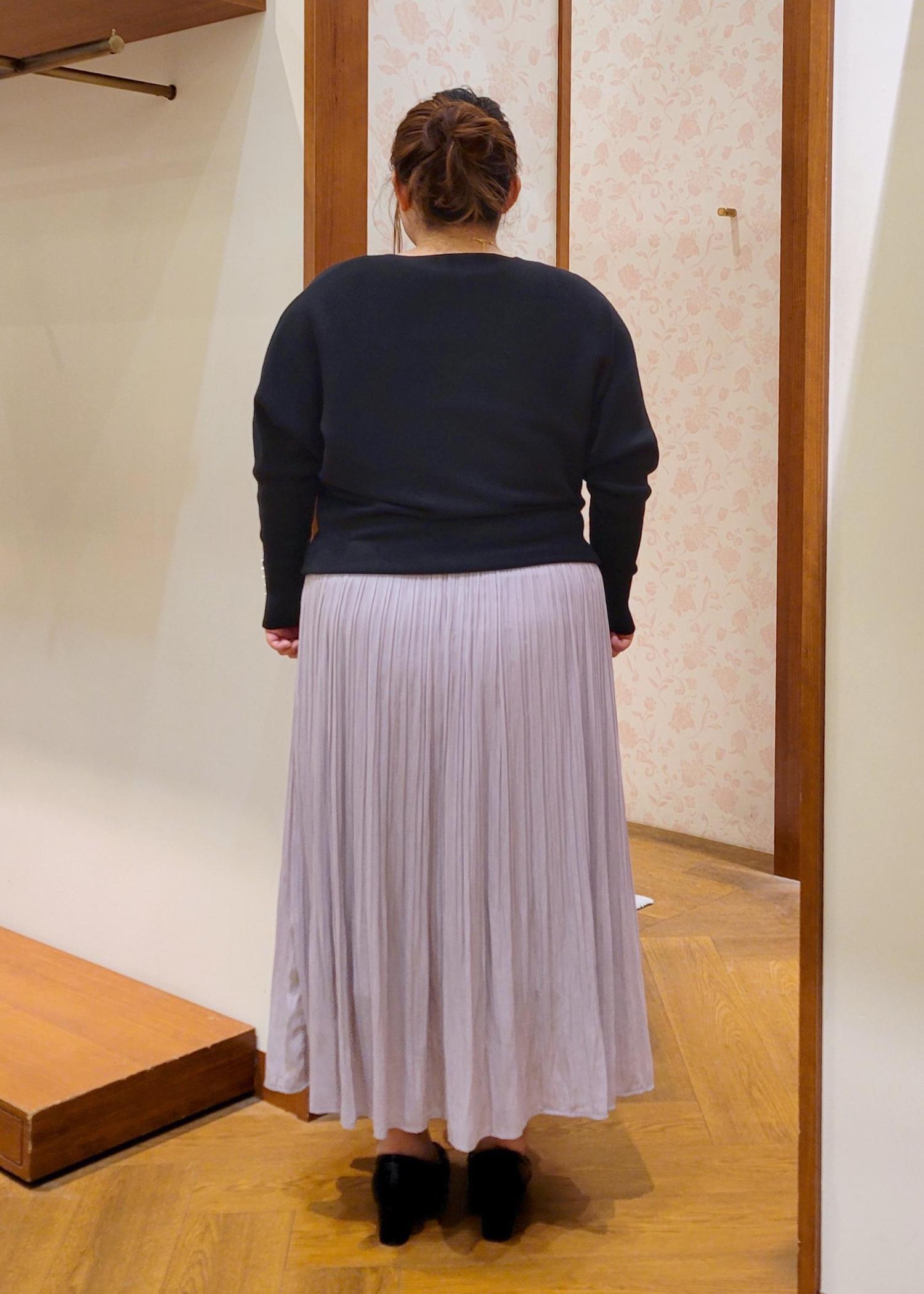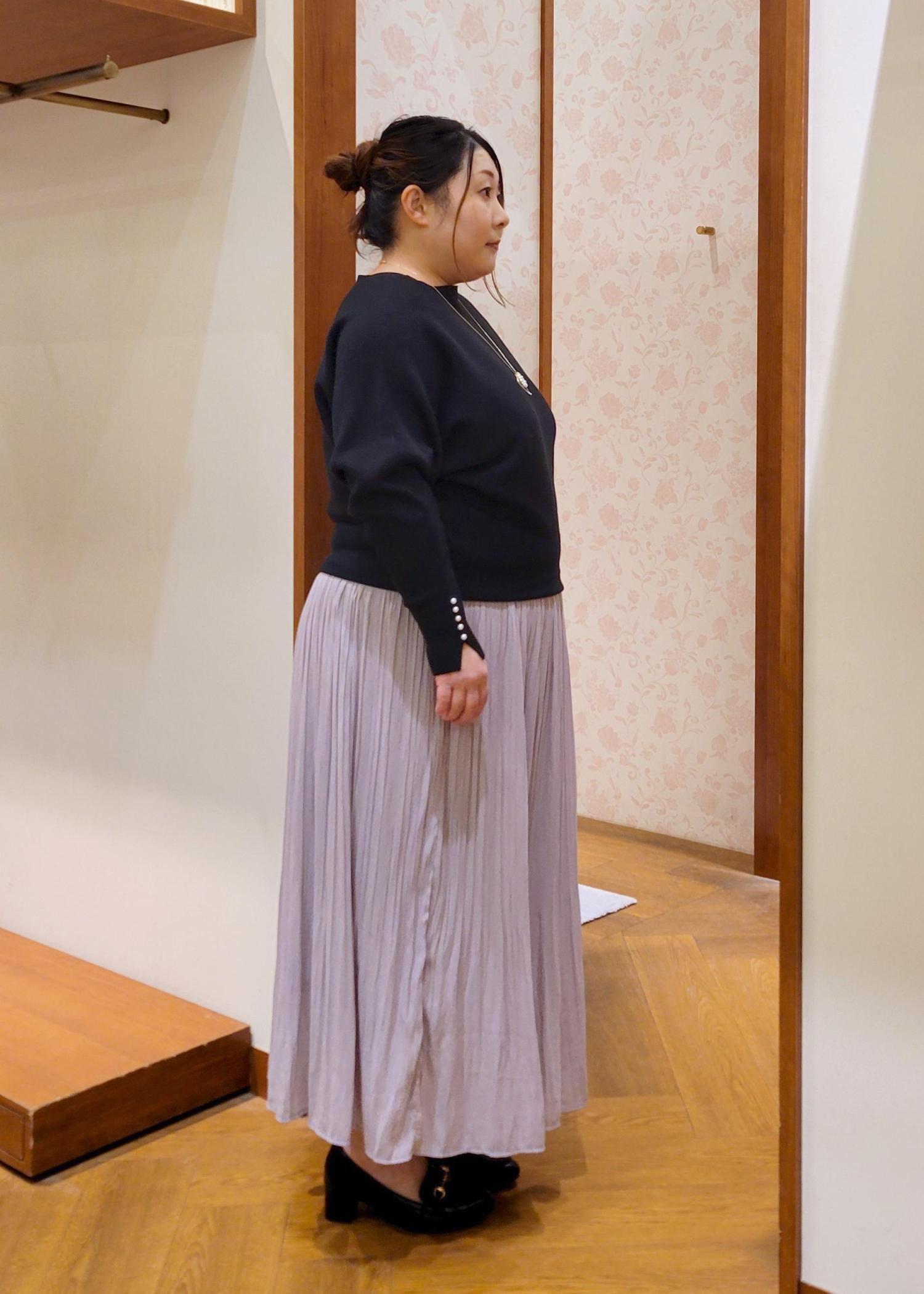 ROPÉ PICNIC着丈が選べるエアリープリーツスカートピンク / MT¥5,489レビューウエストがゴム仕様になってるので締め付け感がなく着れます。低身長でも38Tサイズでも足首あたりの丈感なので引きずることはありません。裏地も付いてるので安心して着用できますよ。