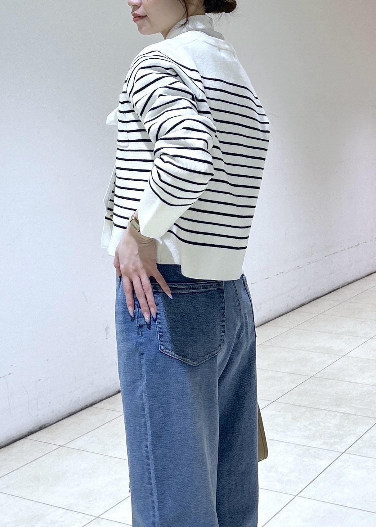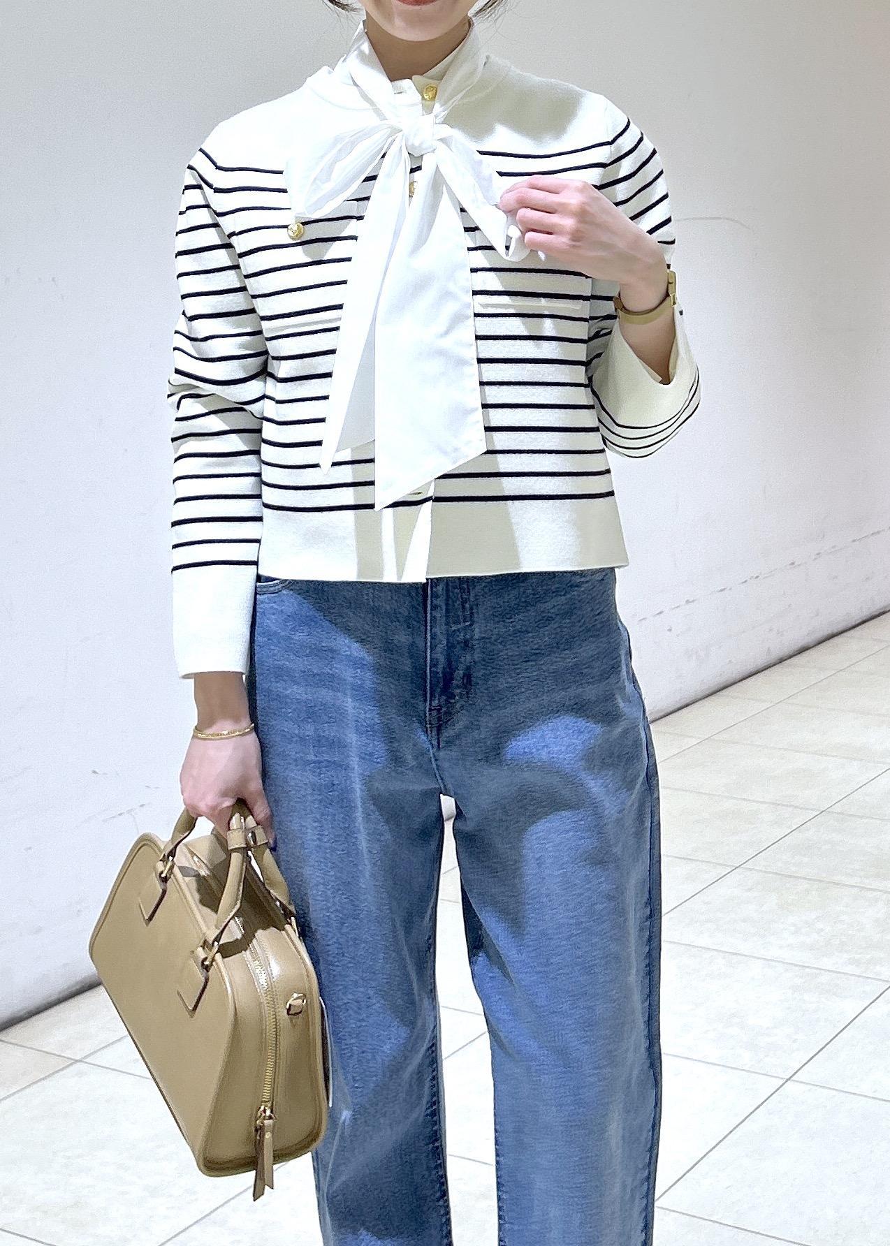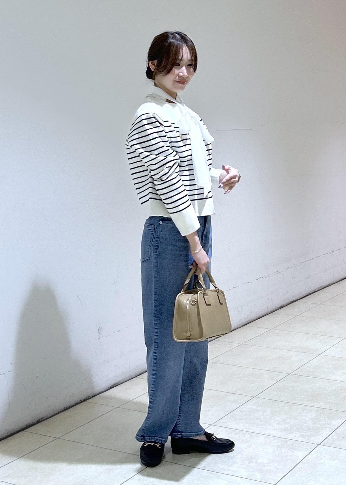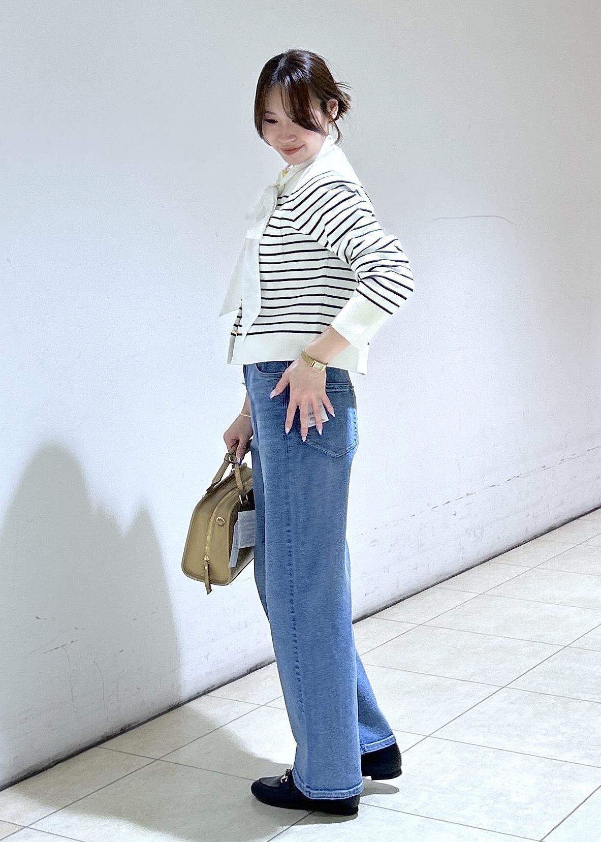 大きめのリボンとデニムでカジュアルとキレイめをMIXしたスタイリングにしました。
