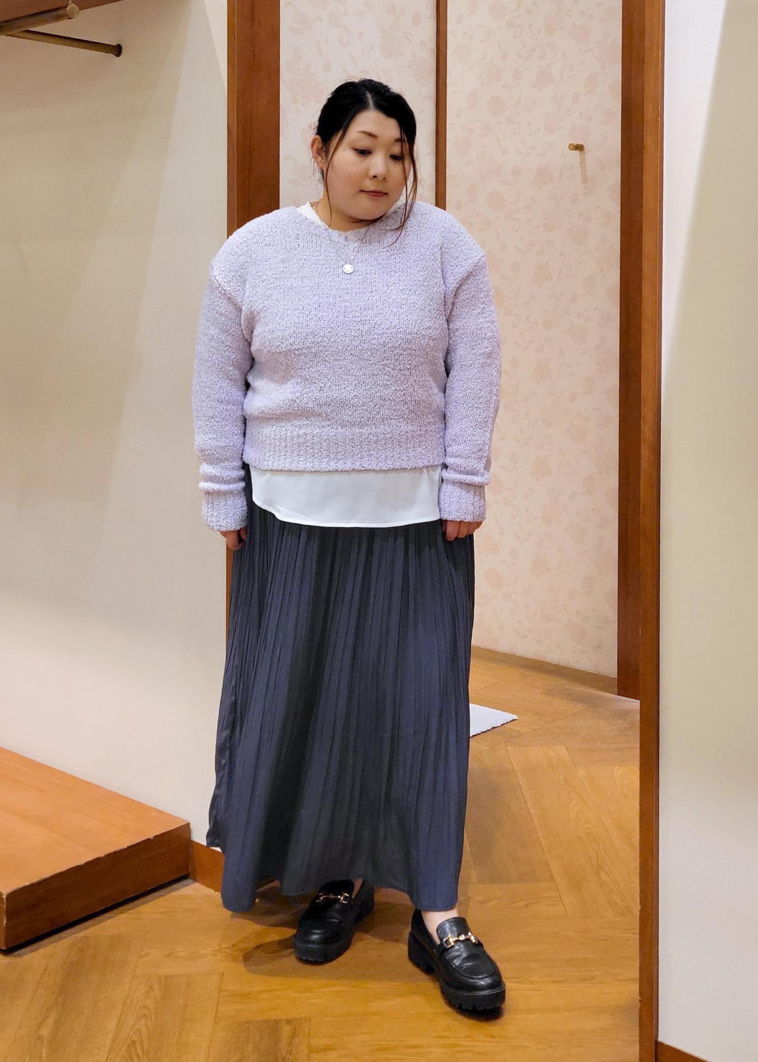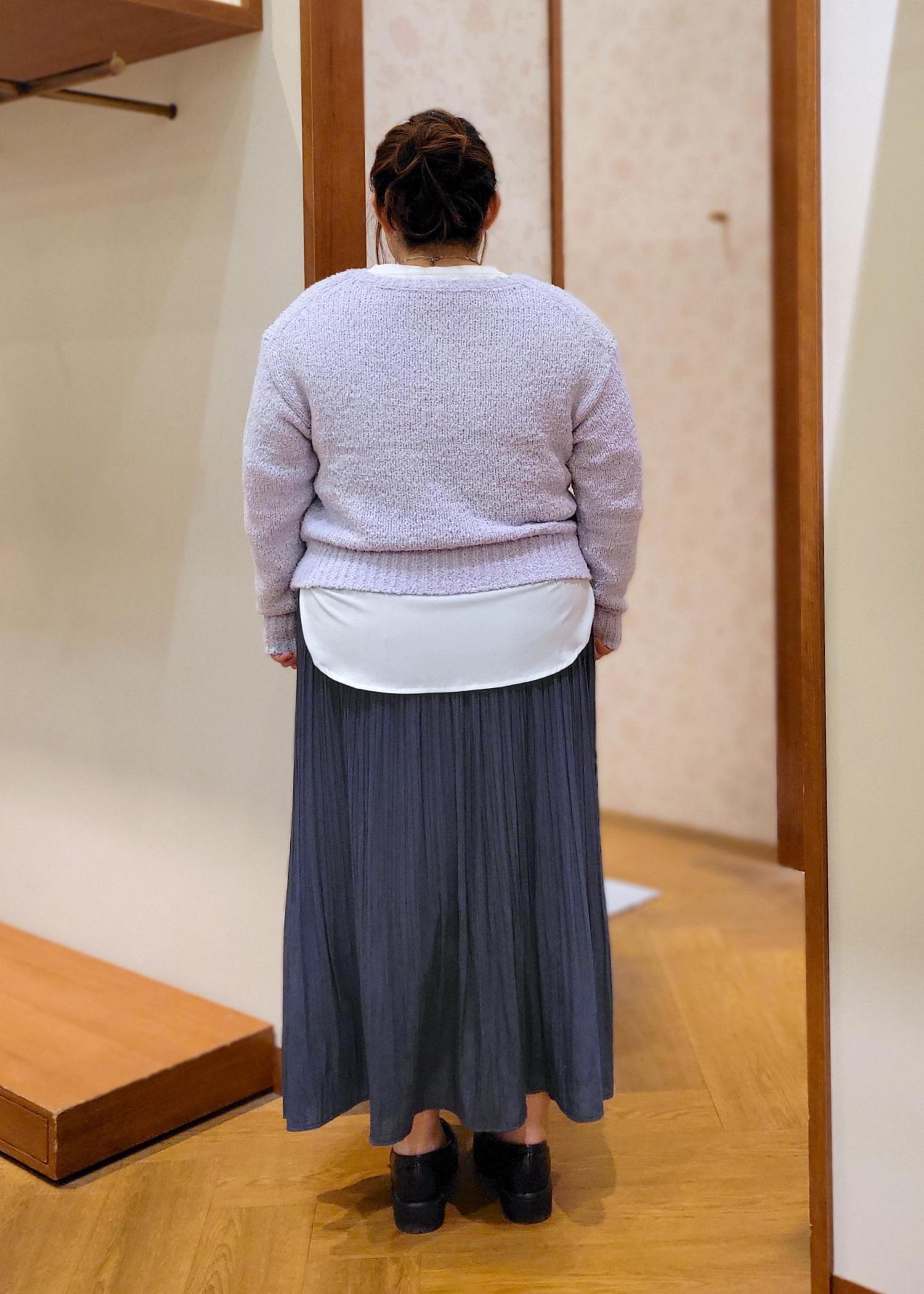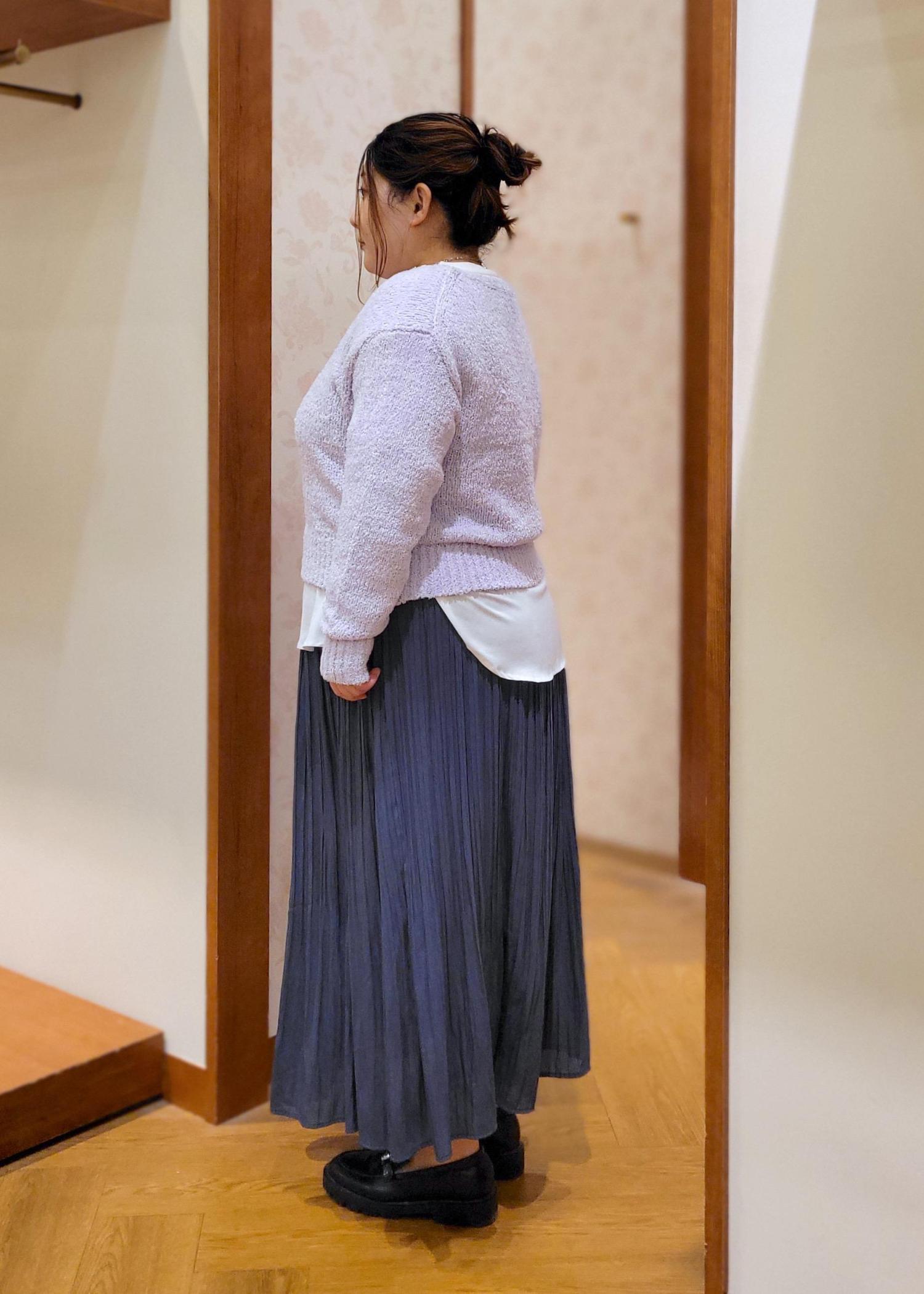 ROPÉ PICNIC着丈が選べるエアリープリーツスカートネイビー / MT¥5,489レビューウエストがゴム仕様になってるので締め付け感がなく着れます。低身長でも38Tサイズでも足首あたりの丈感なので引きずることはありません。裏地も付いてるので安心して着用できますよ。
