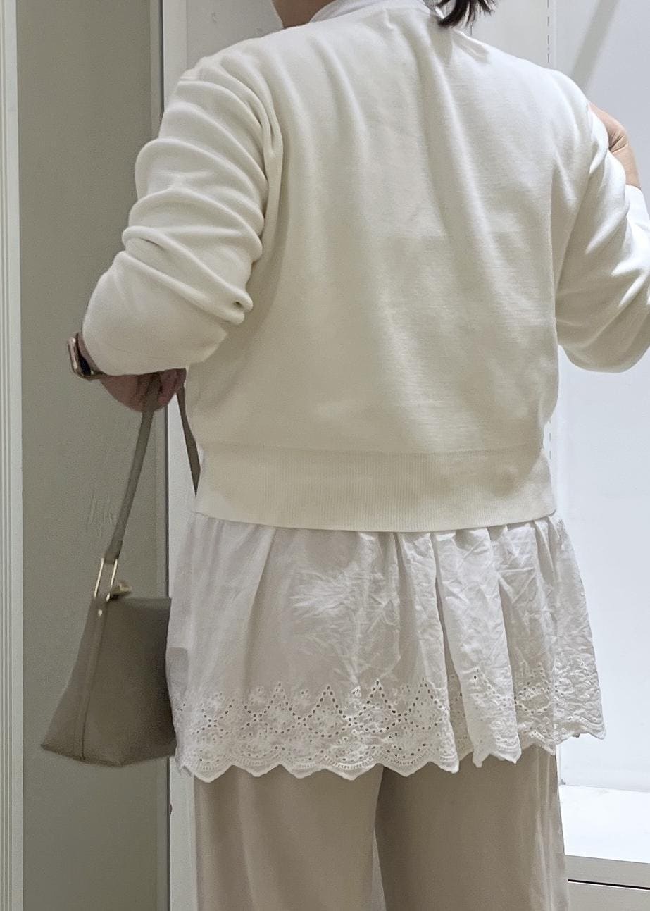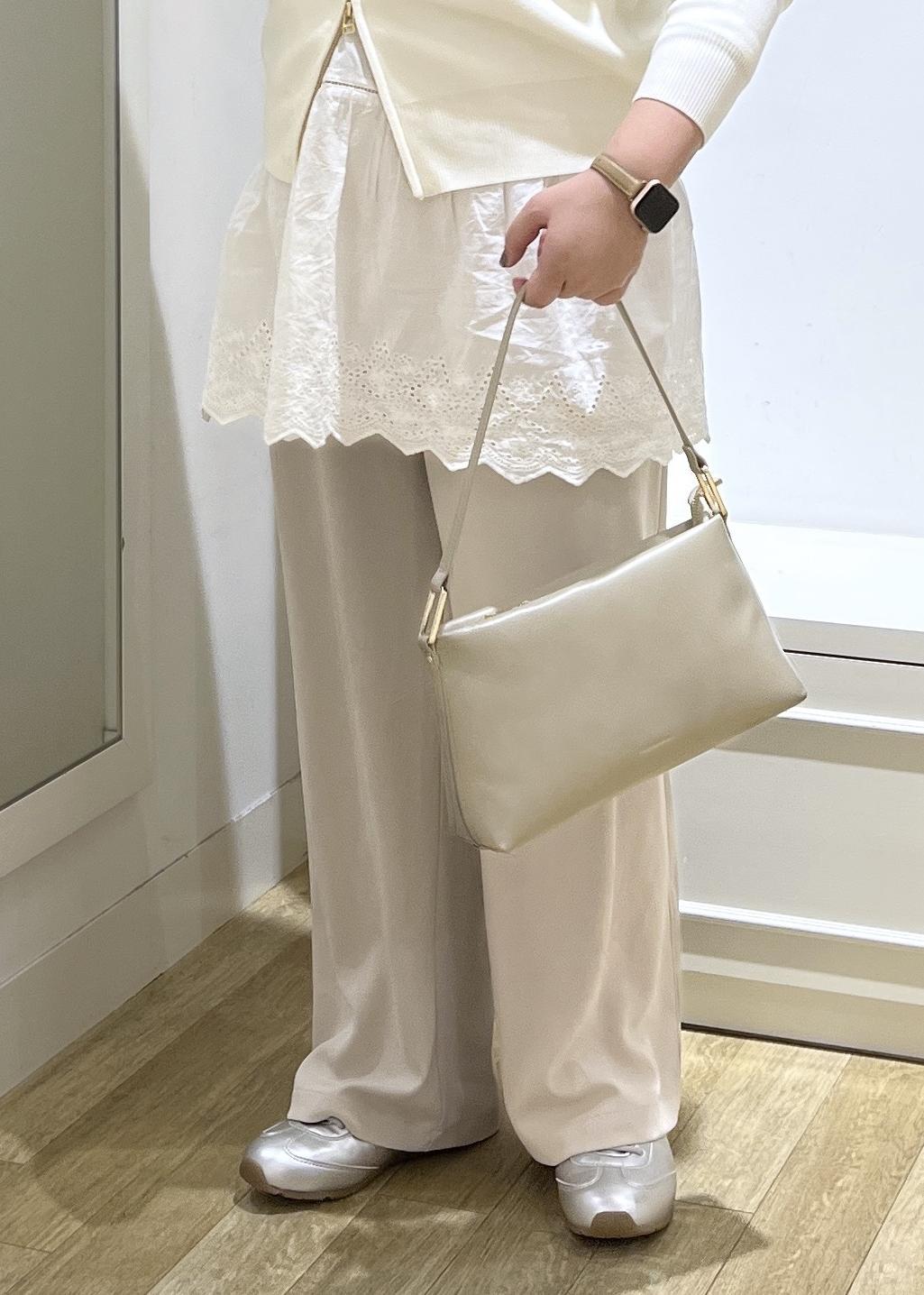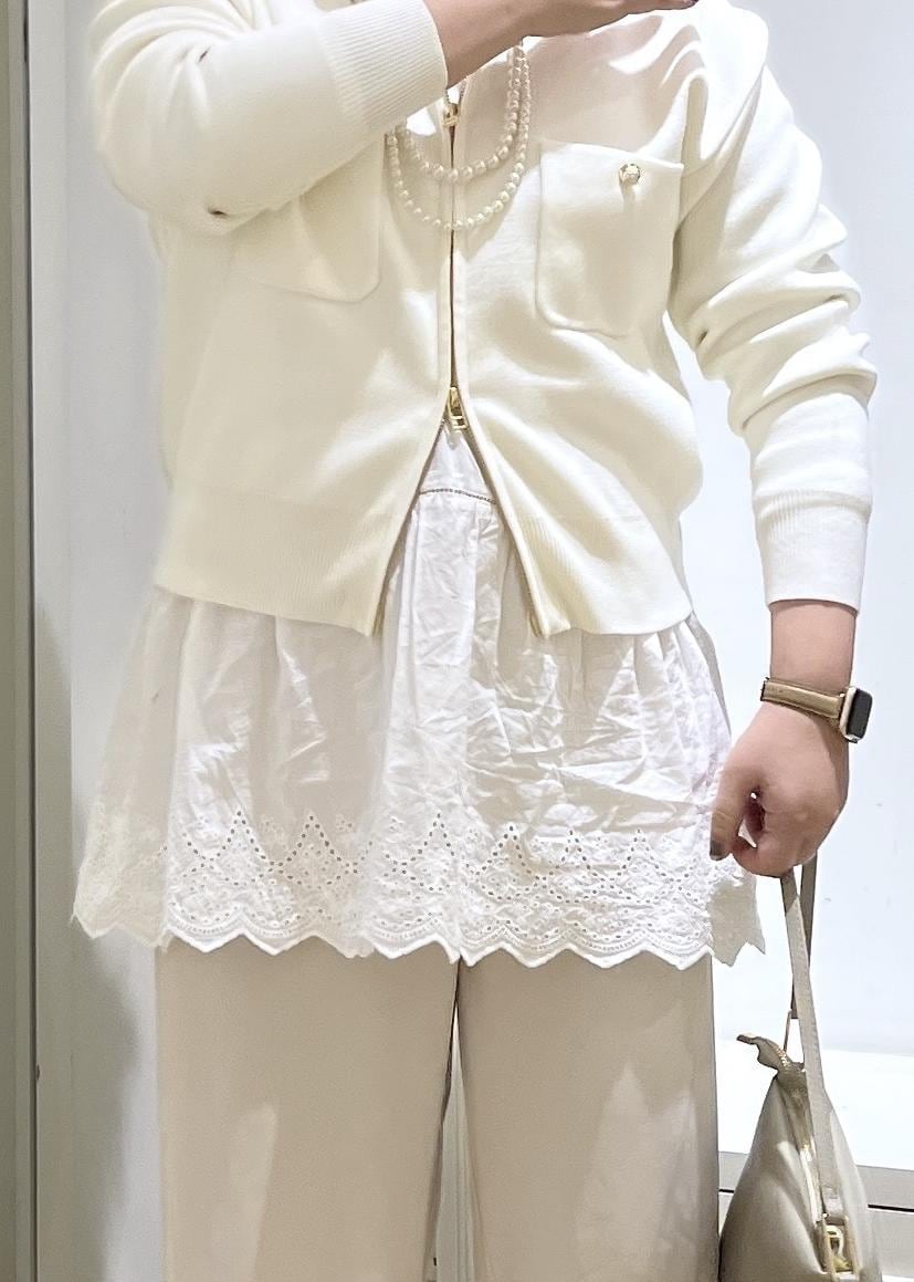 ホワイト系で合わせたワントーンレイヤードスタイル♪パールとスニーカーなど、カジュアルときちんと感のバランスを意識しました♡
