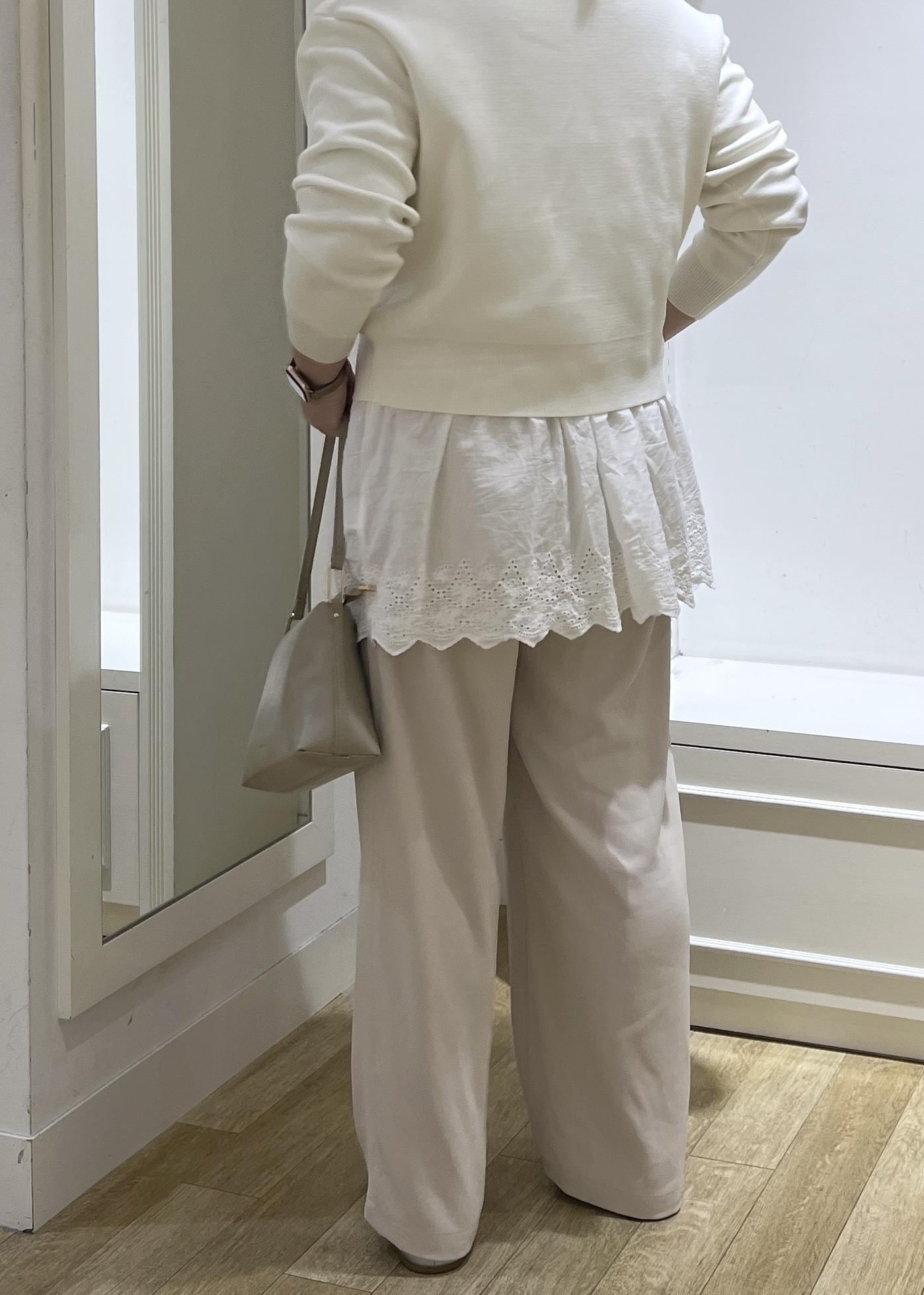 NEW!ROPÉ PICNICステファニージョグイージーワイドパンツベージュ / M¥5,489レビューさらっとした質感が気持ち良いリラックスパンツ。総ゴムで楽ちんですが、生地感が特徴的で綺麗めアイテムとも合わせやすいです。
