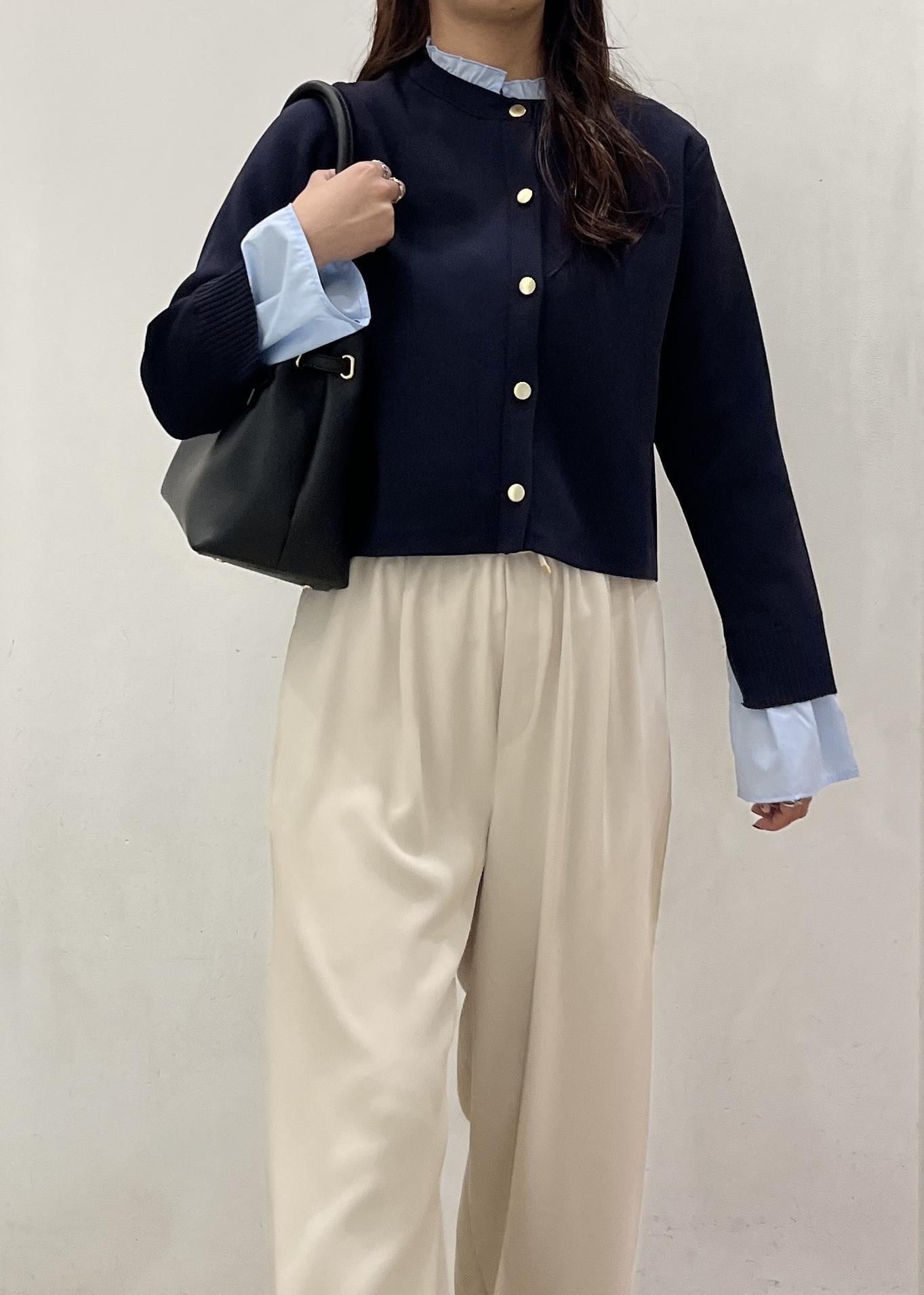 ROPÉ PICNIC襟フリルドッキングカーディガンネイビー / F¥5,995レビュー襟元とお袖口のシャツ部分は取り外し可能なので、雰囲気が変えらてオススメです。カーディガンの生地はしっかりしているのでオススメです。