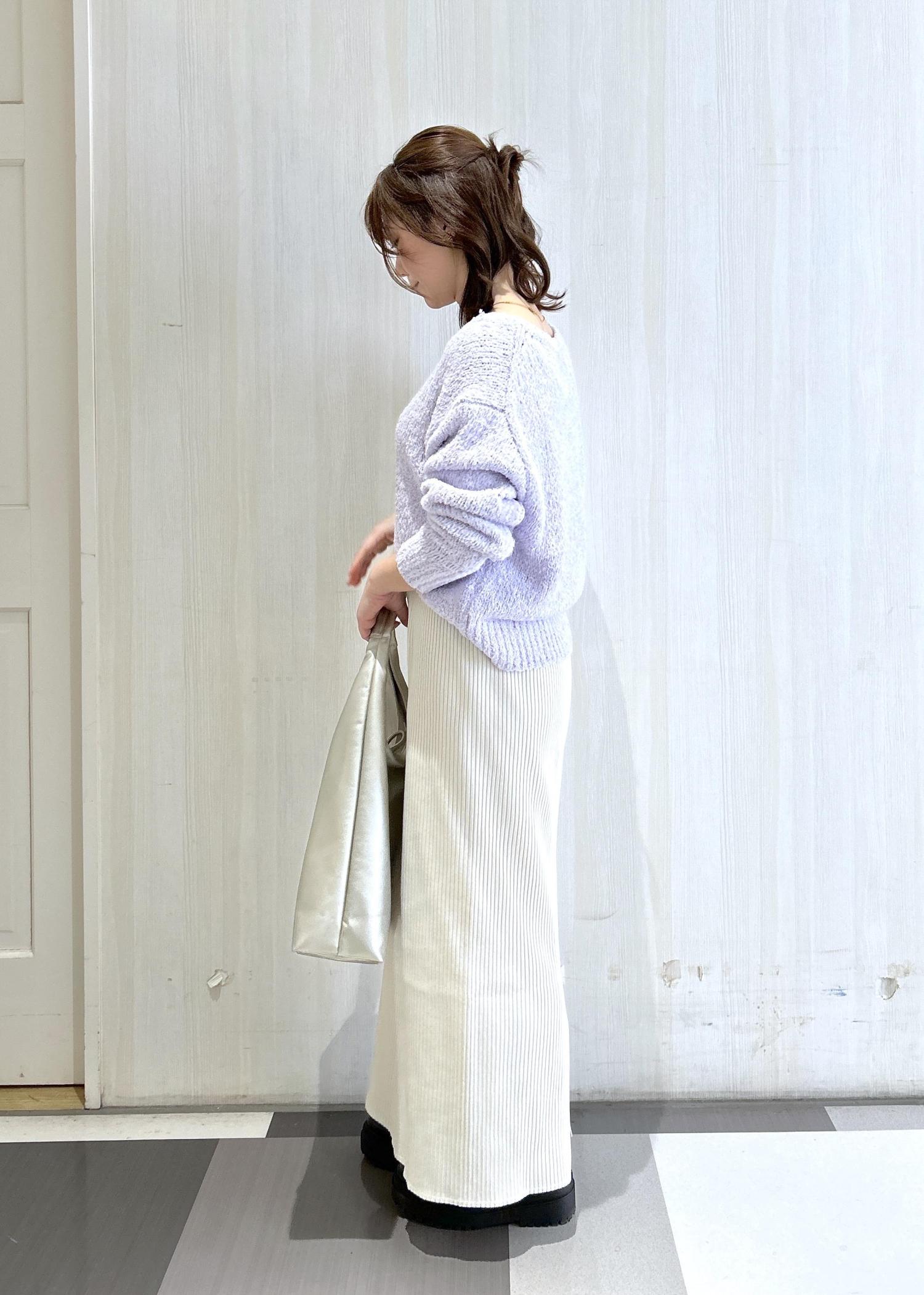 少し甘めカラーに、Iラインスカートを合わせると