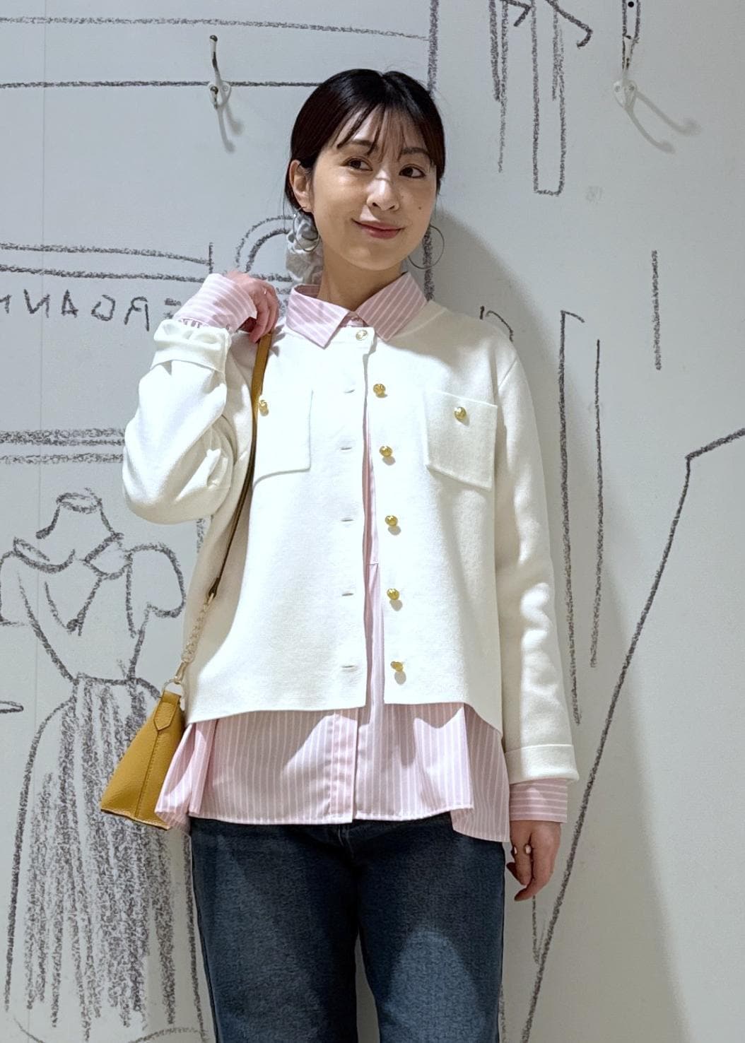 ROPÉ PICNICミラノリブ金ボタンニットカーディガンキナリ / L¥5,489レビュー程よい厚みがあるのでインナーやボディラインが響きづらいです。デザイン性があるのでジャケットのような上品な雰囲気に仕上げてくれます。LサイズはMサイズに比べ、ボタン1個分着丈が長く、腰がしっかりと隠れる着丈。袖は手の甲に掛かる長さです。