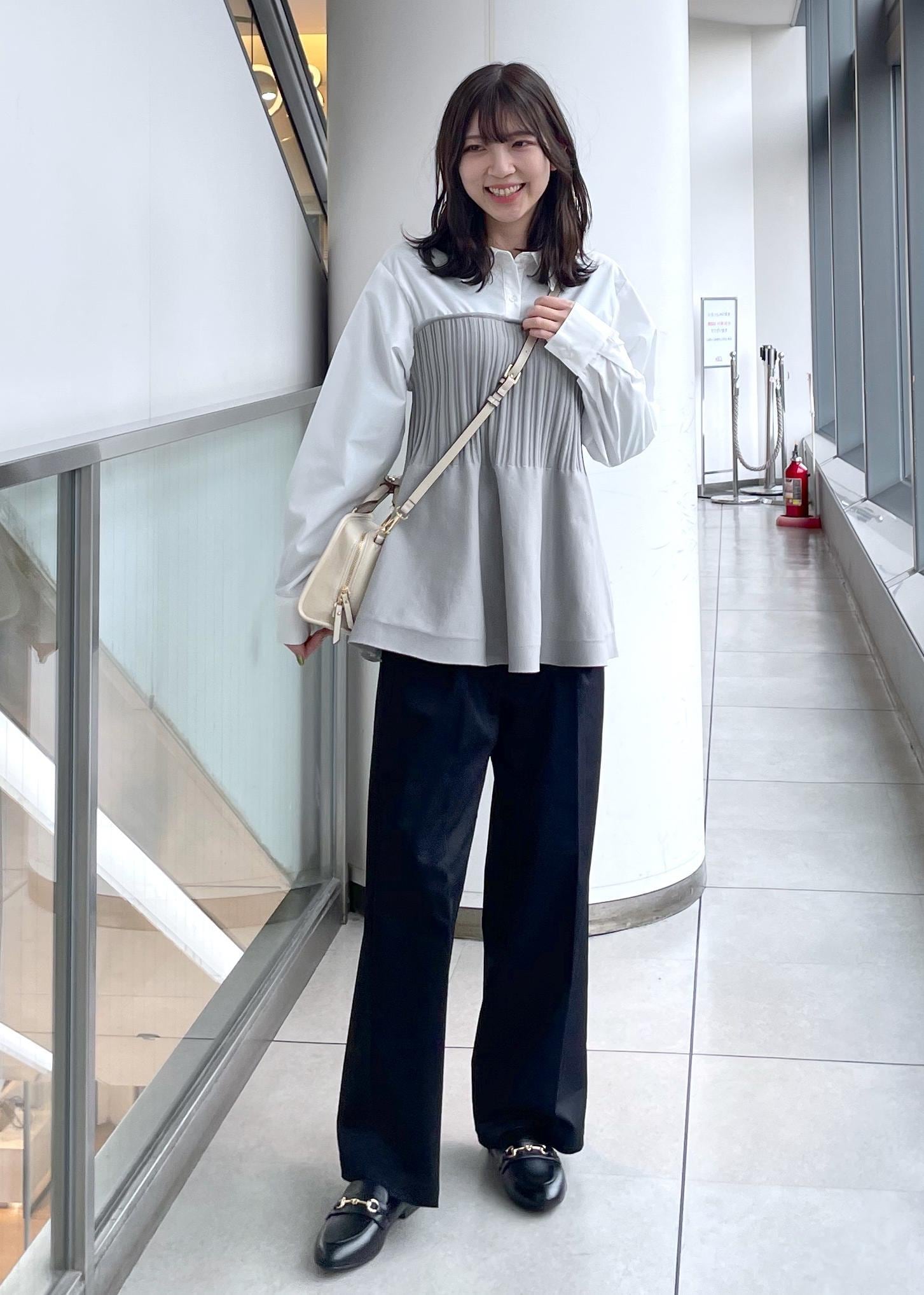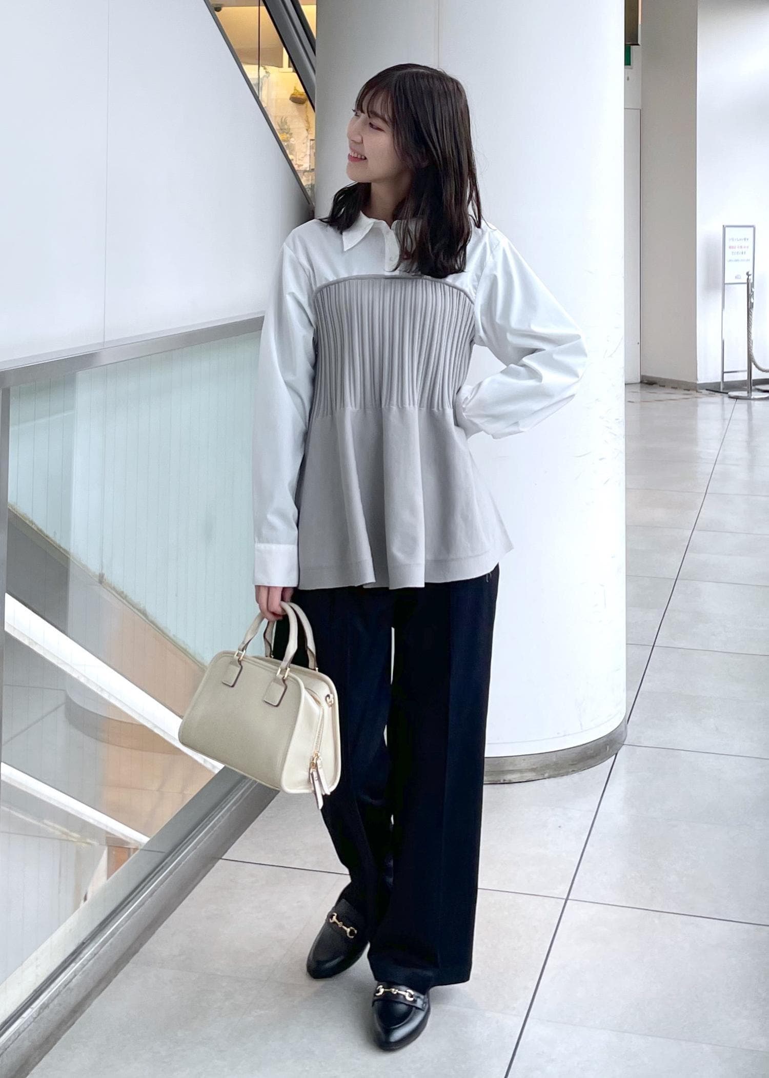 ROPÉ PICNICシャツドッキングペプラムニットライトグレー / F¥5,995レビューペプラム部分の生地感はスポンジニットっぽく伸縮性があり、厚くなく軽い着心地。袖周りは少しボリューム感が出ます。