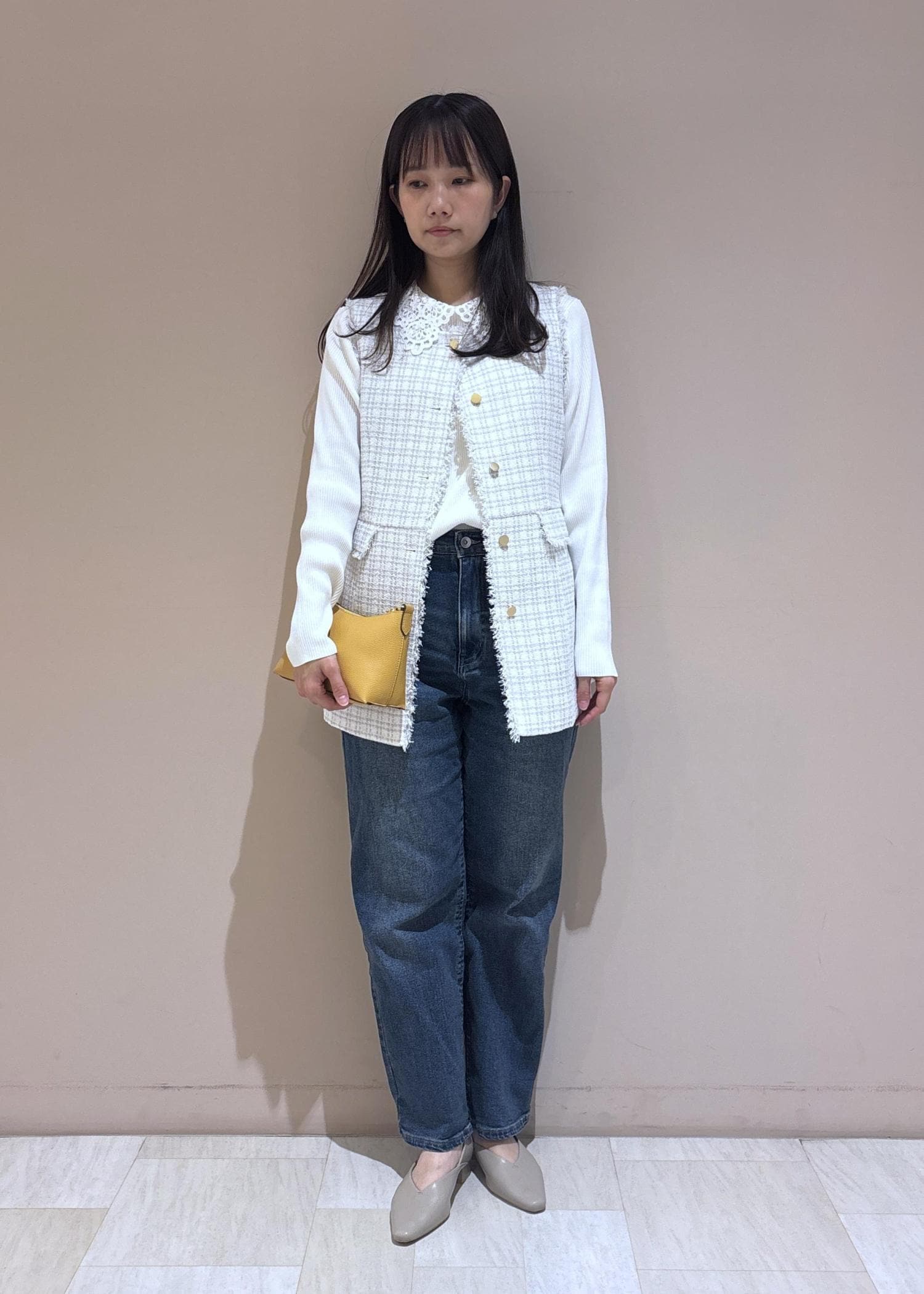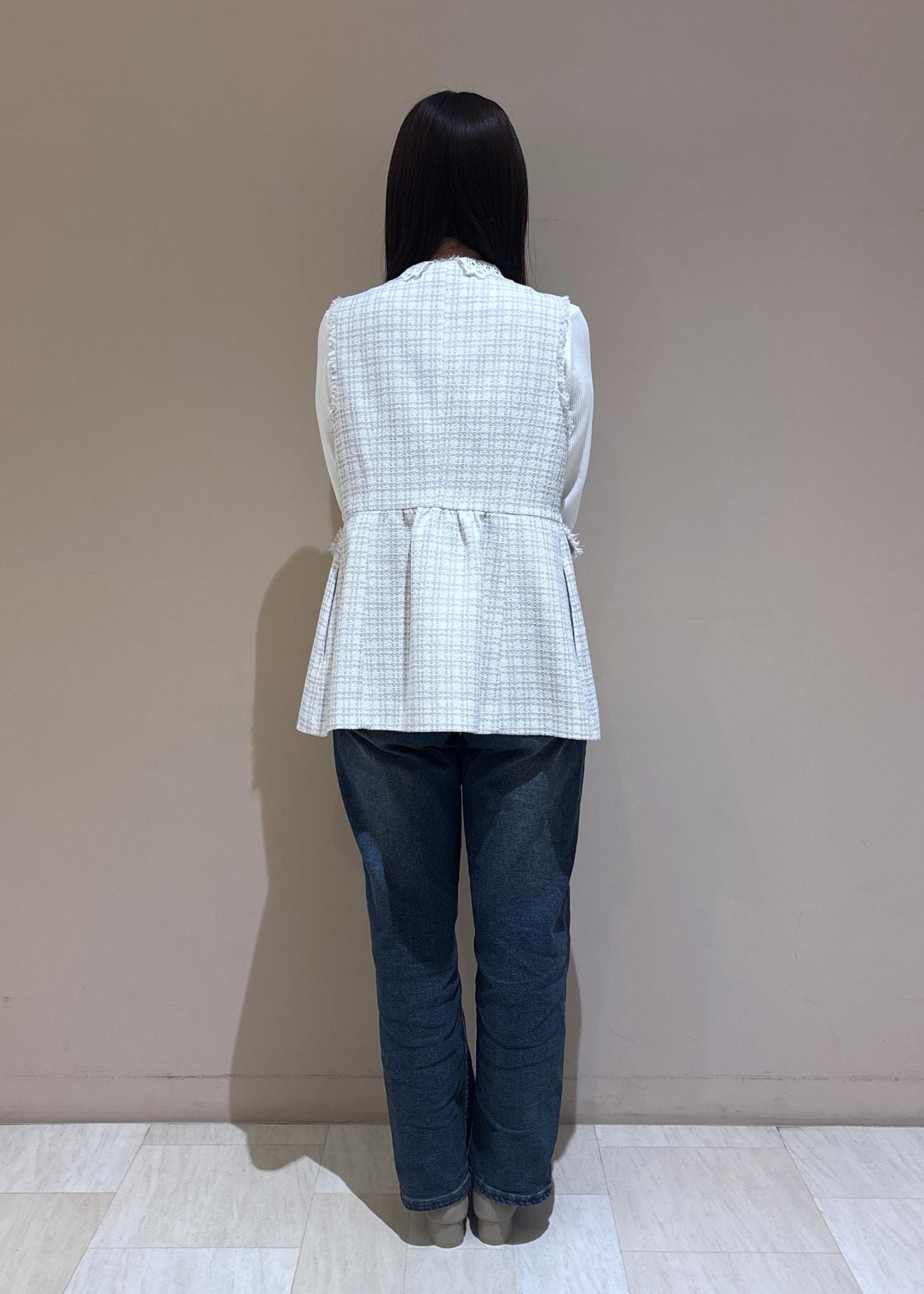 ROPÉ PICNIC【WEB限定カラー】ツイード金ボタンジレベスト/セレモニー対応・リンクコーデライトグレー / F¥8,998レビューヒップや腰まわりをしっかりカバーできる着丈が長めのツイードジレです。