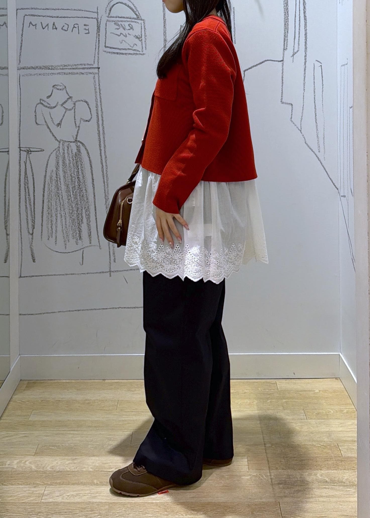今期トレンドのレース生地をインナーを入れトレンド感を出しました。