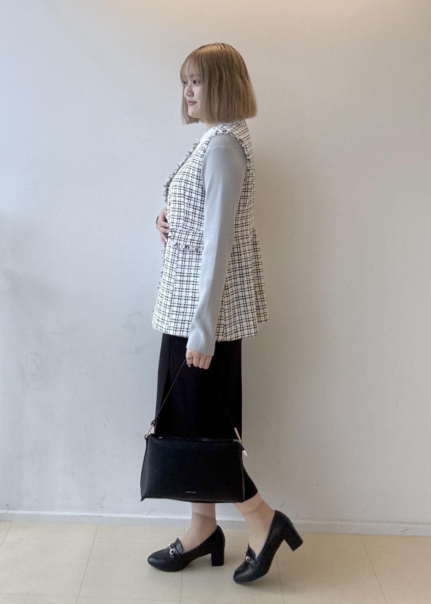 今回は卒業式のイメージで組んだので小物が黒系ですが、インナーや小物を白やベージュなど明るいカラーに変更すれば入学式にもおすすめです◎