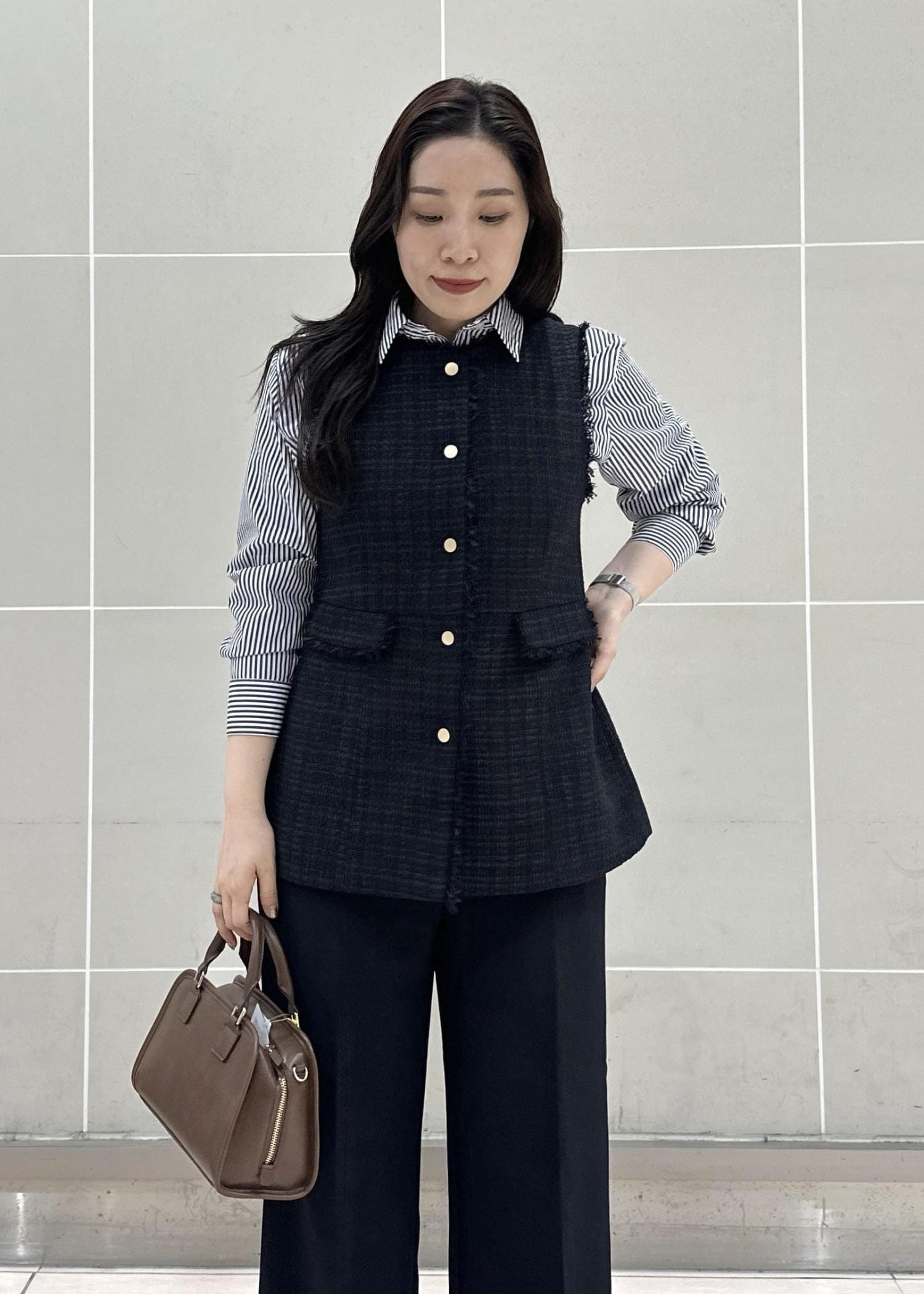 【WEB限定カラー】ツイード金ボタンジレベスト/セレモニー対応・リンクコーデ